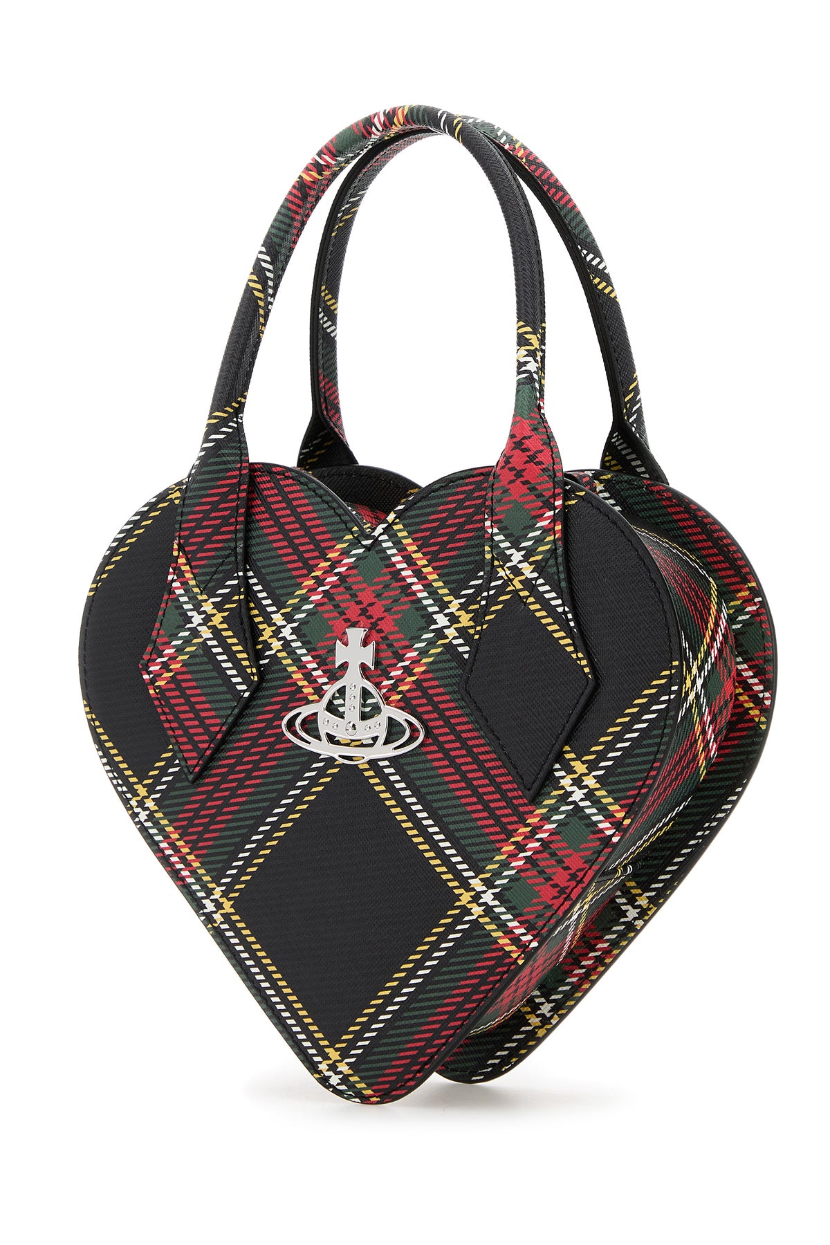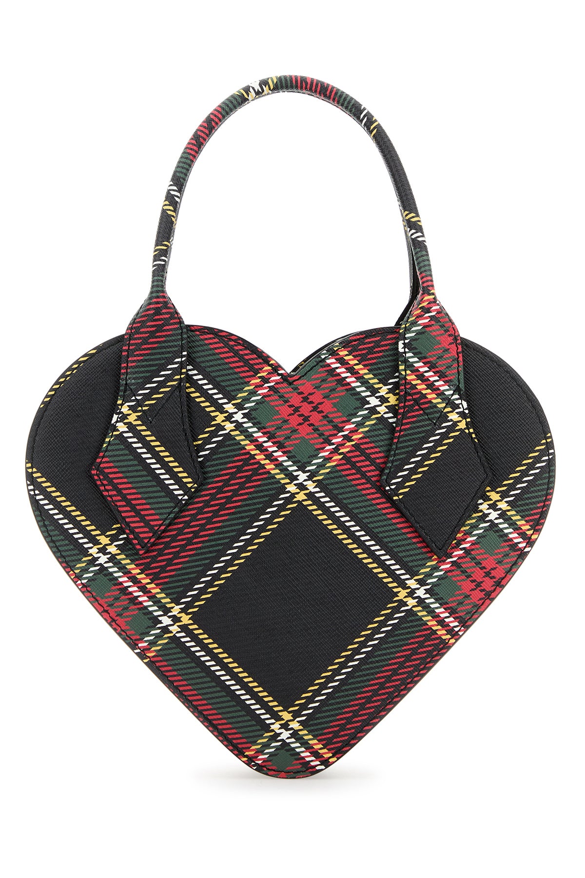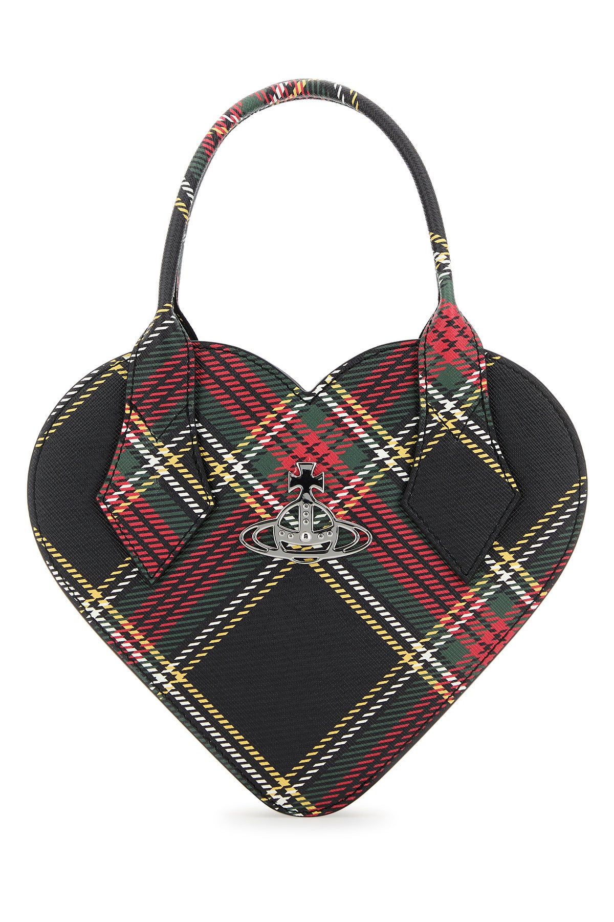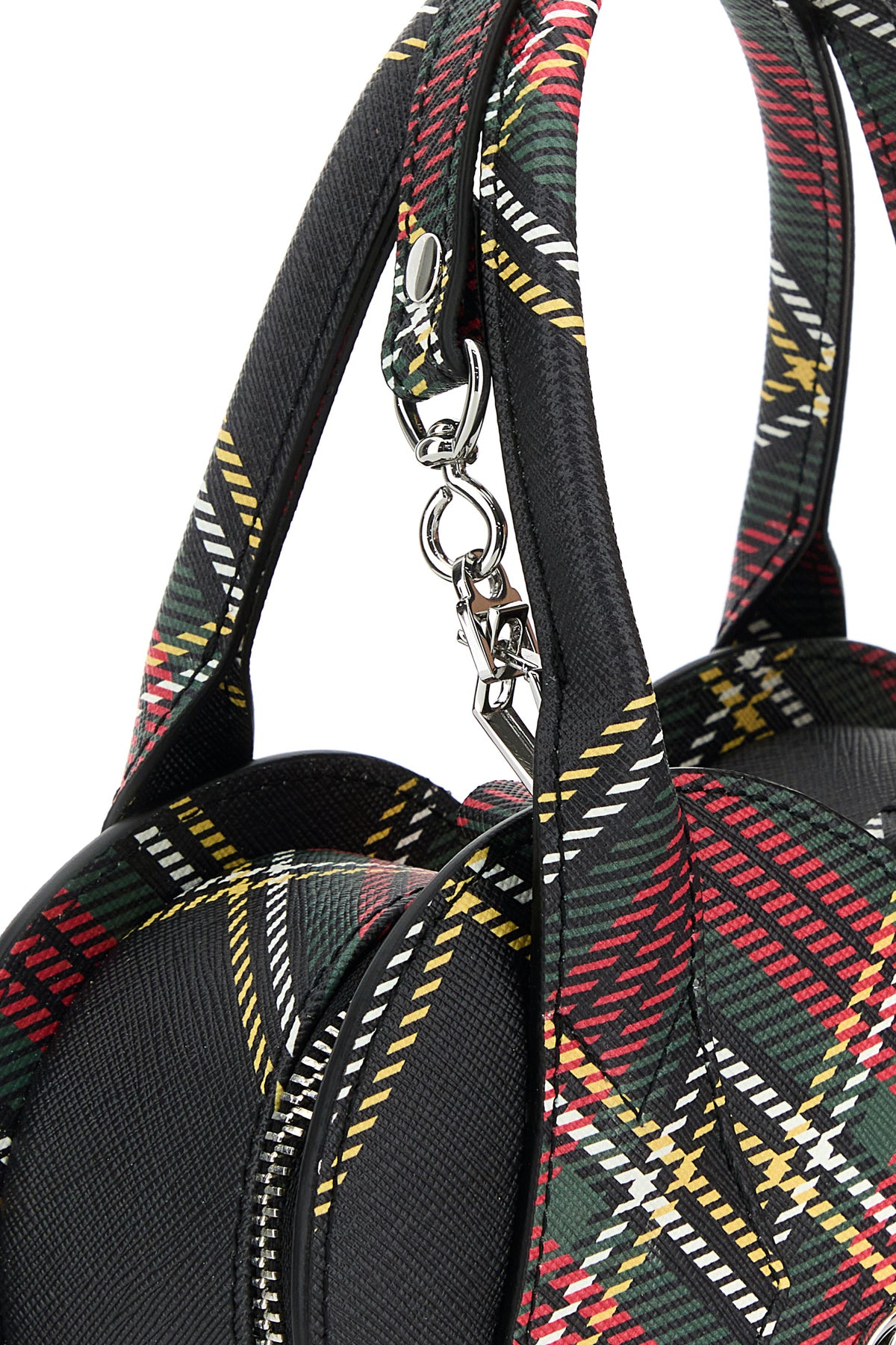 Handbag realized in grained synthetic leather characterized by tartan motif print on the entire surface enriched by metal Orb detail at the front.