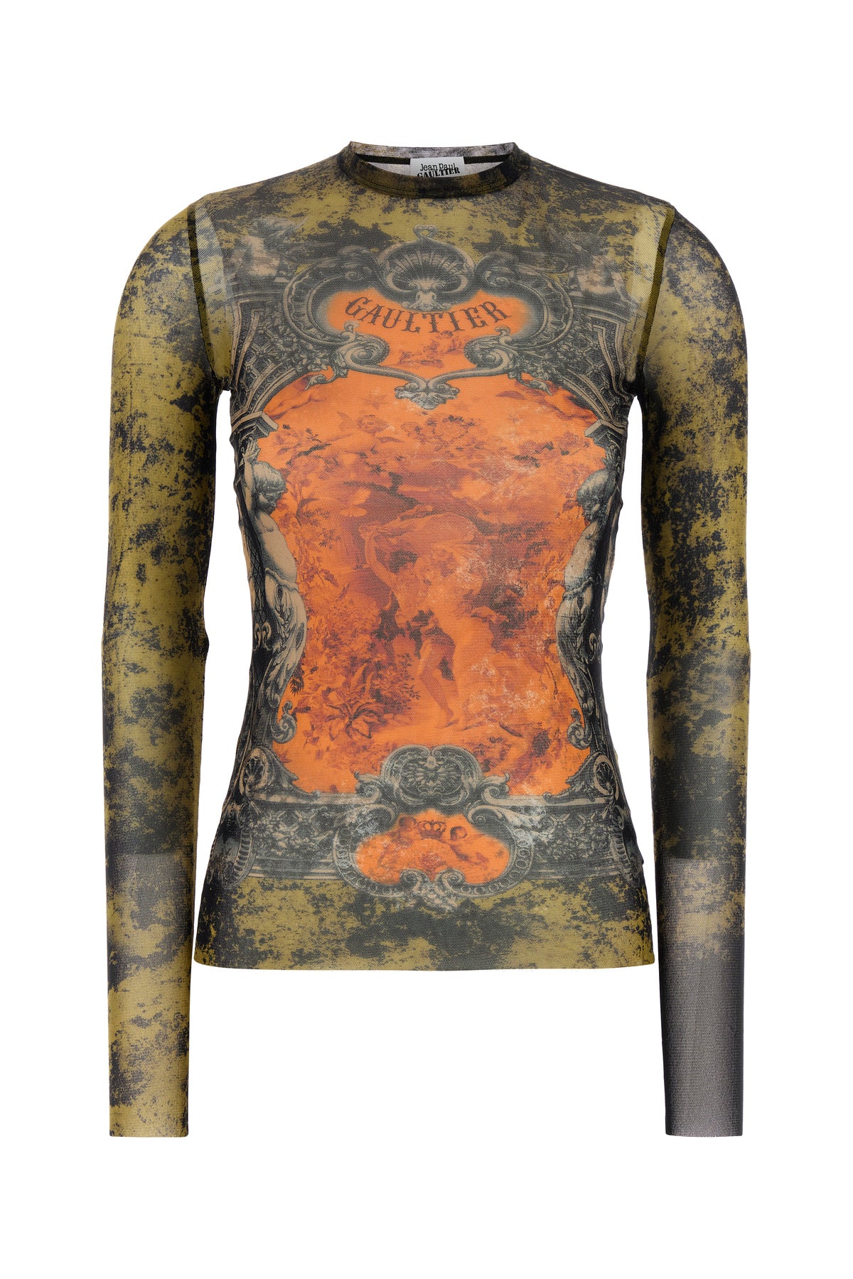 Tank top realized in tulle characterized by peculiar logoed print on the entire surface.