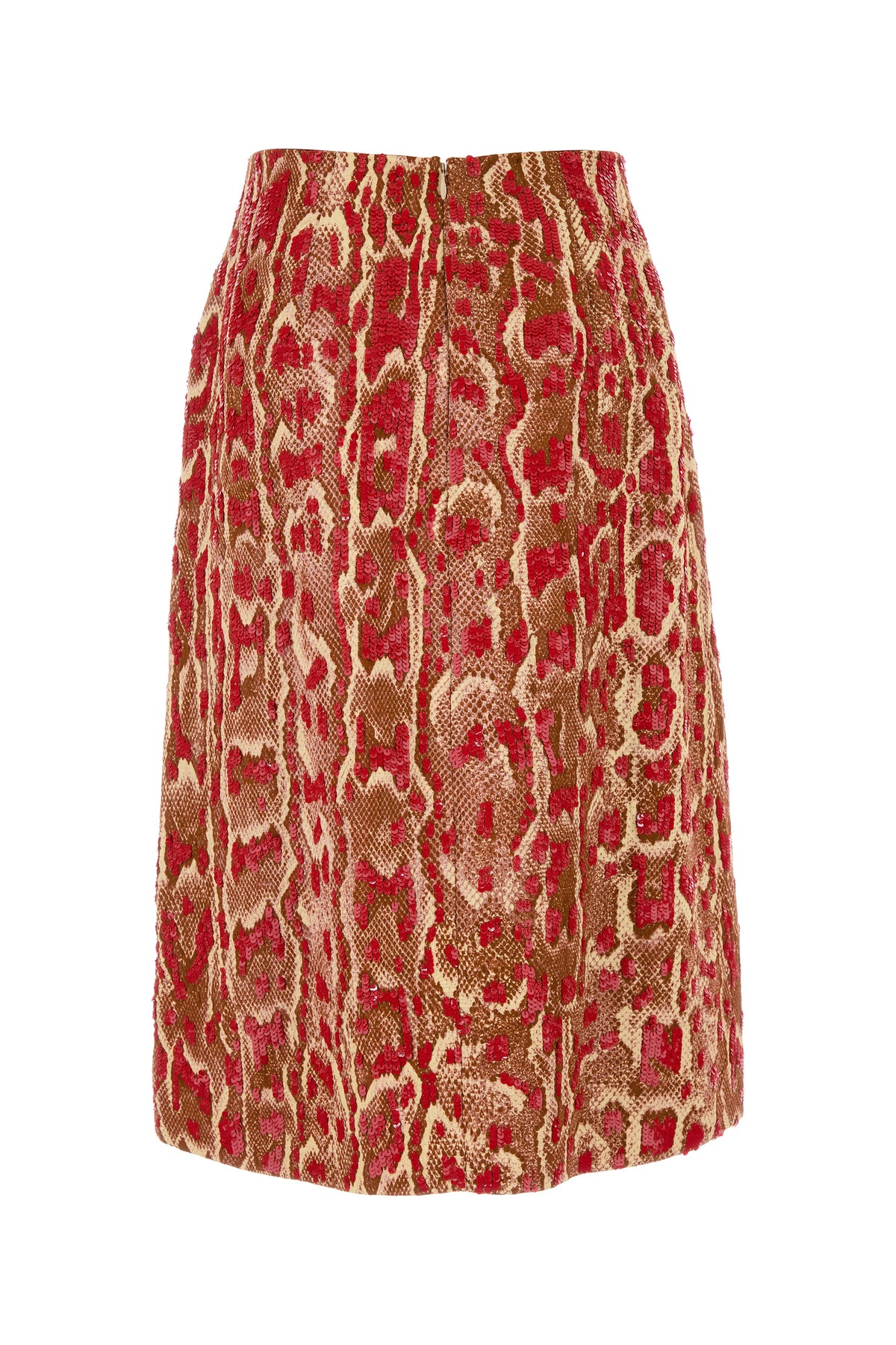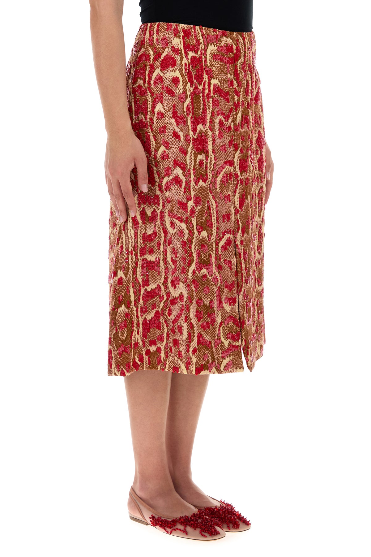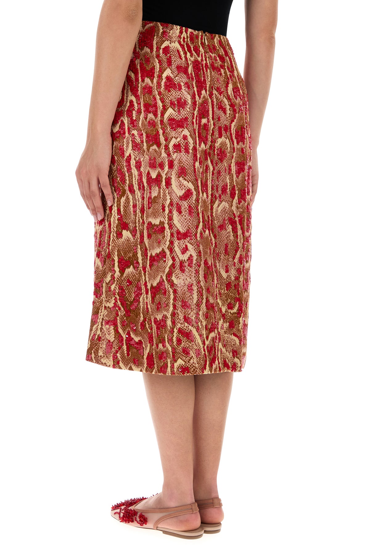 Skirt realized in viscose blend characterized by animal print on the entire surface enriched by sequins.
