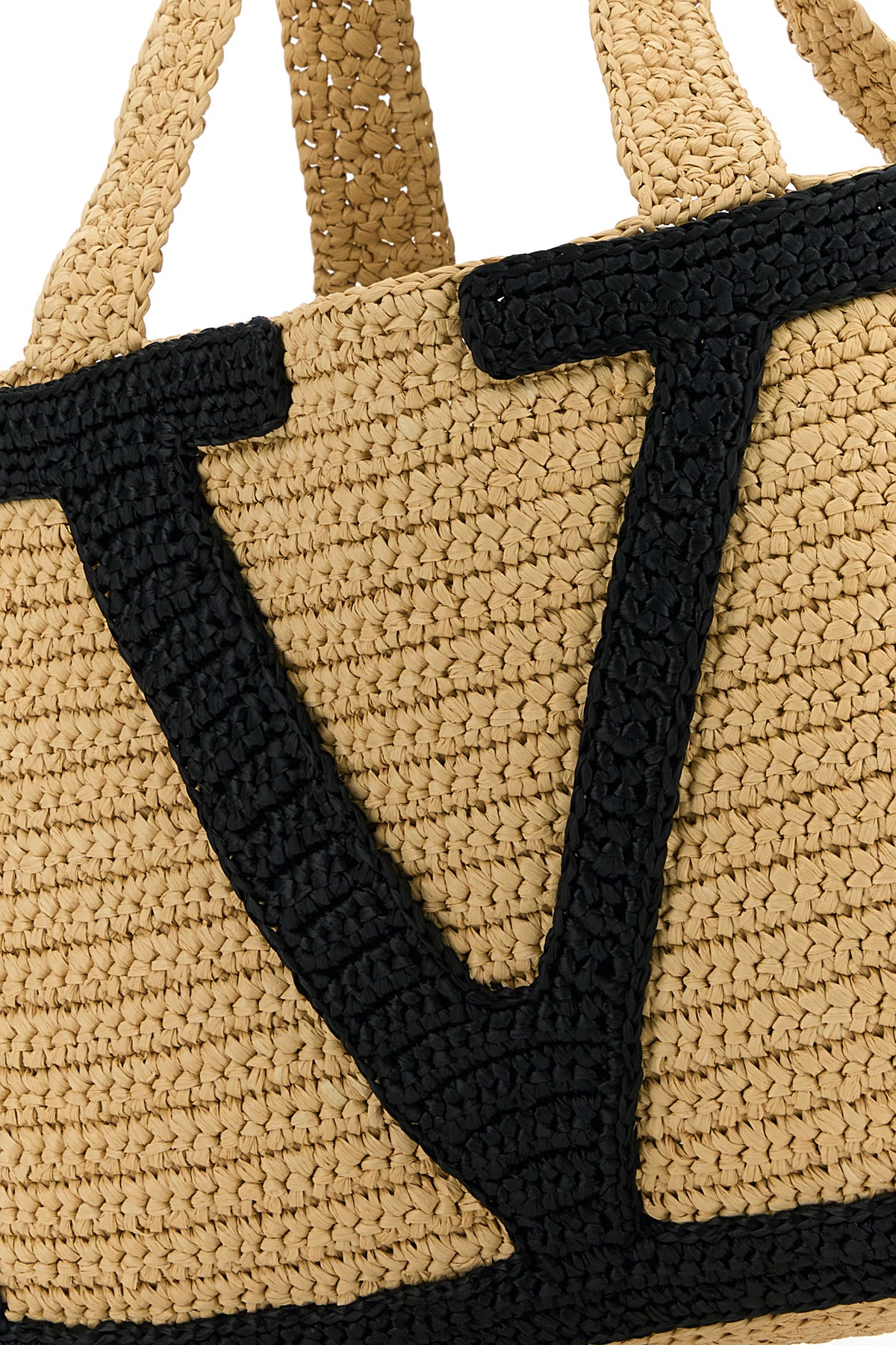 Shopping bag realized in raffia characterized by maxi VLogo motif at the front.