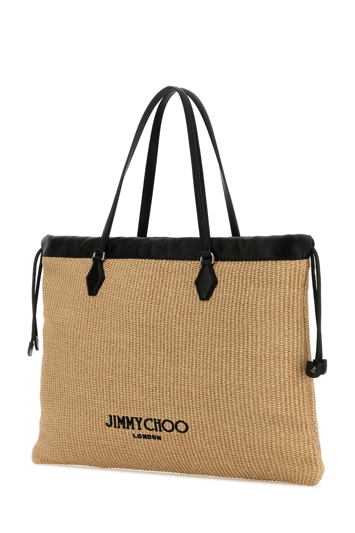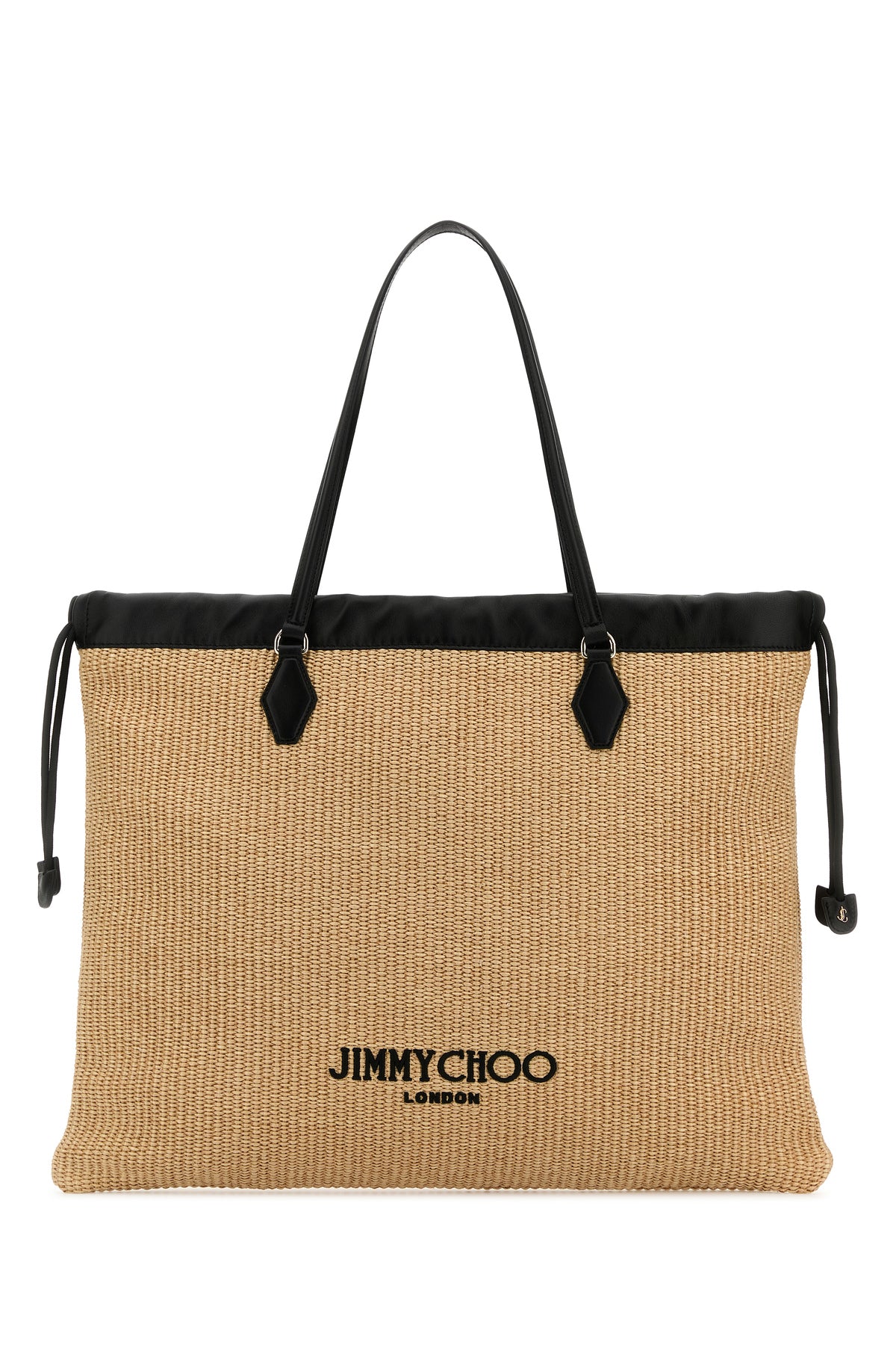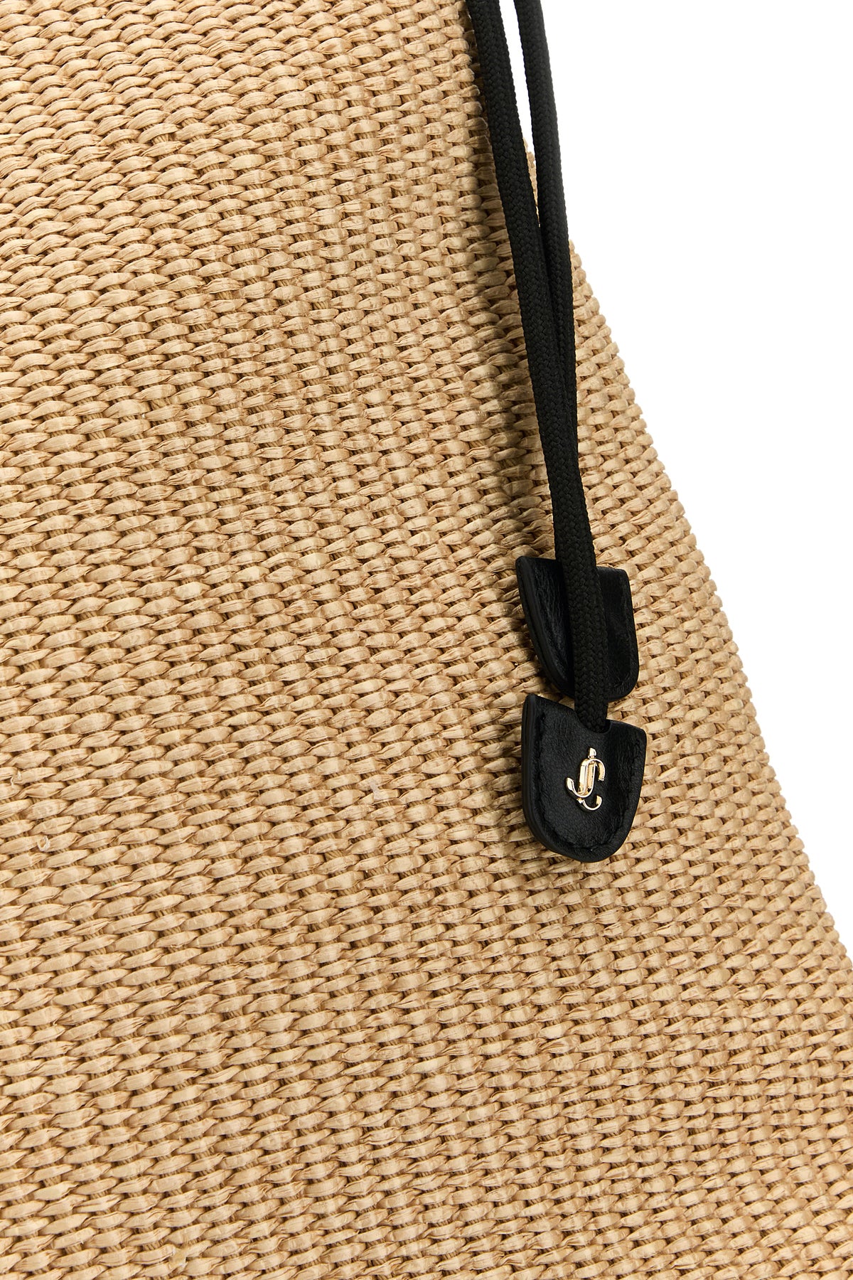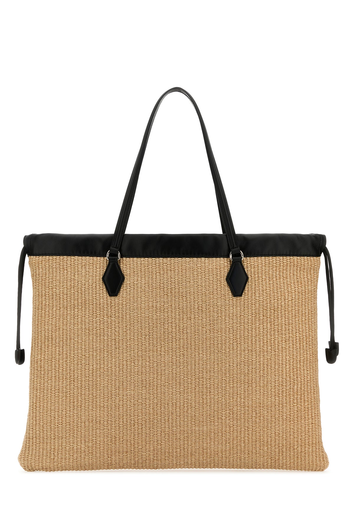 Shopping bag realized in raffia characterized by contrasting embroidered logo at the front.