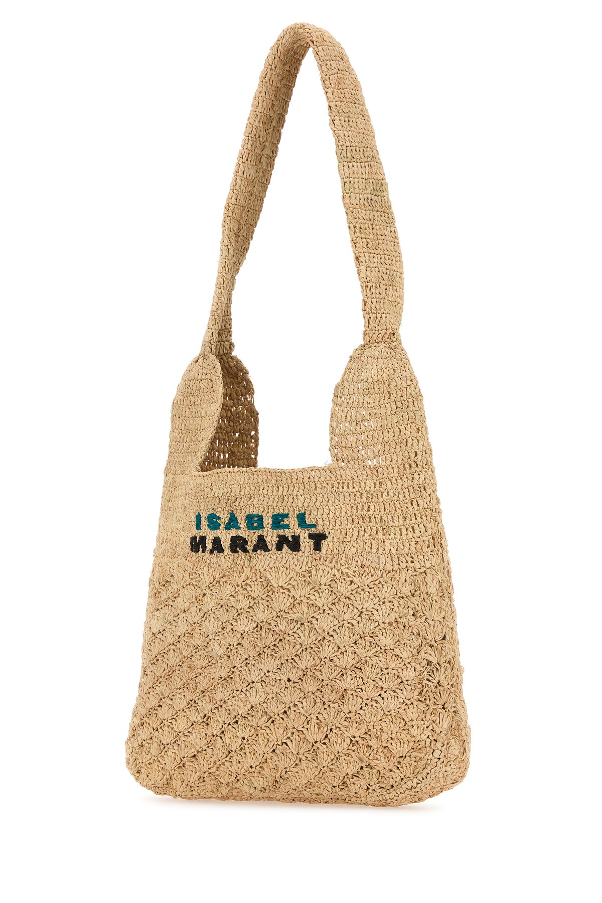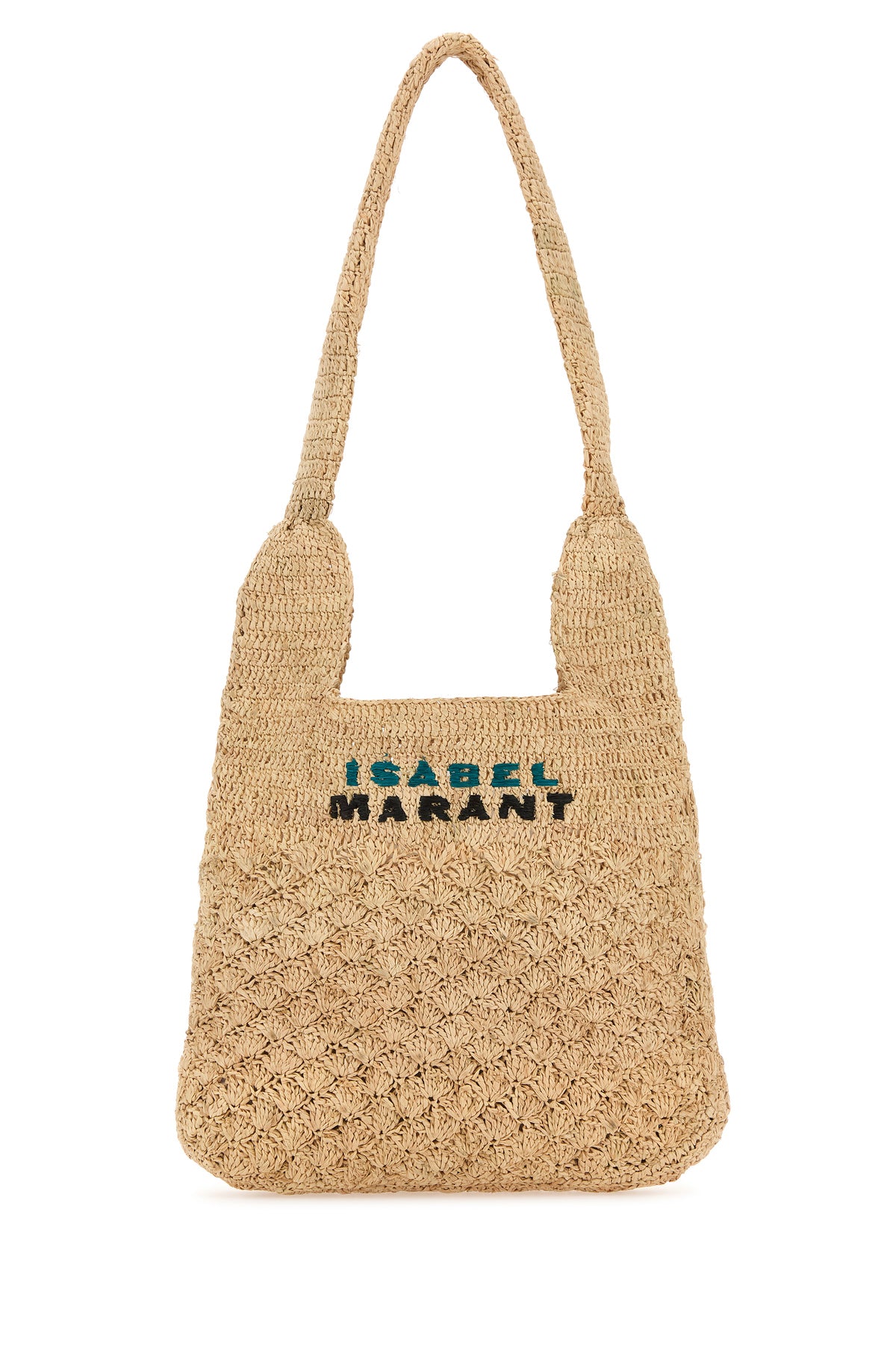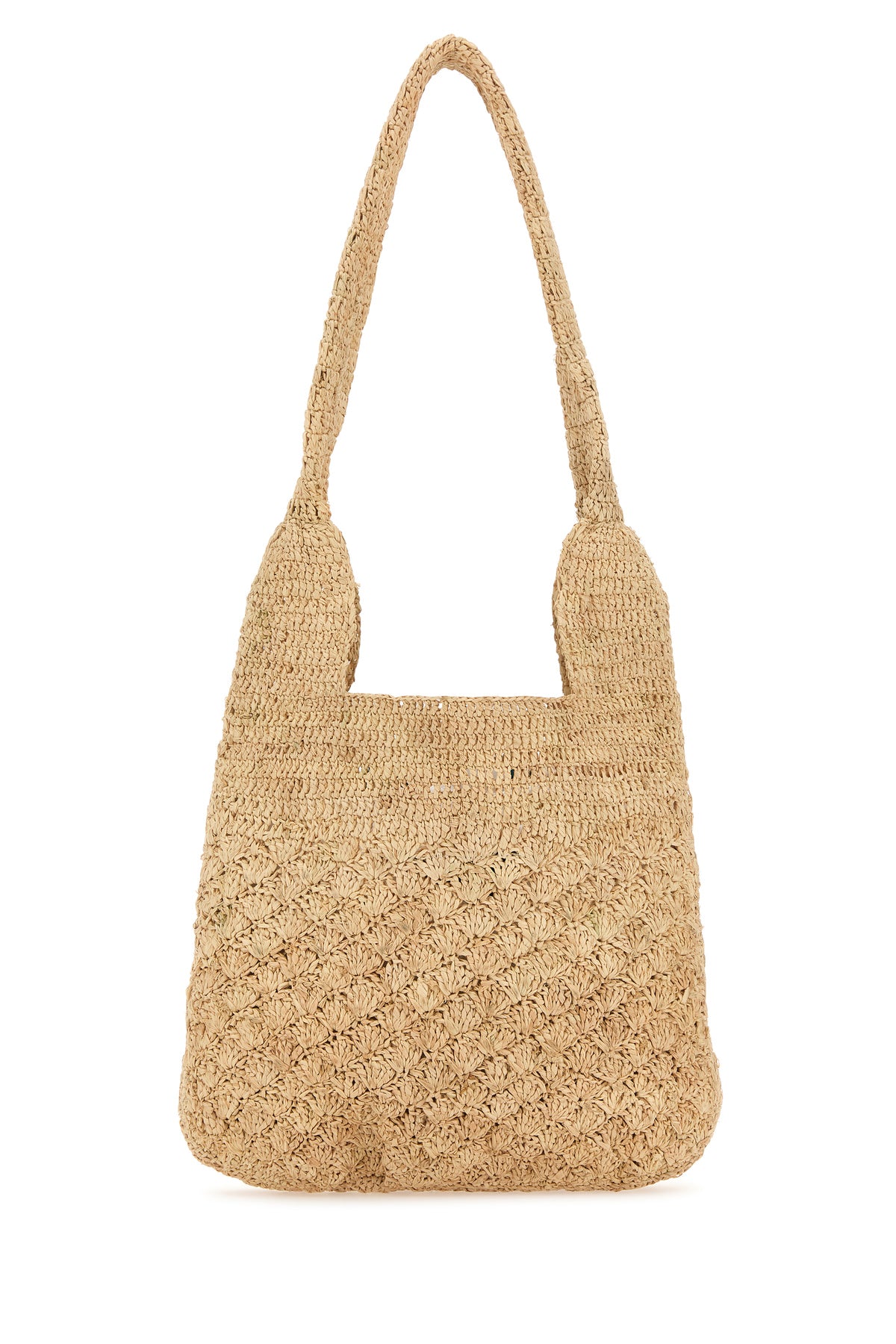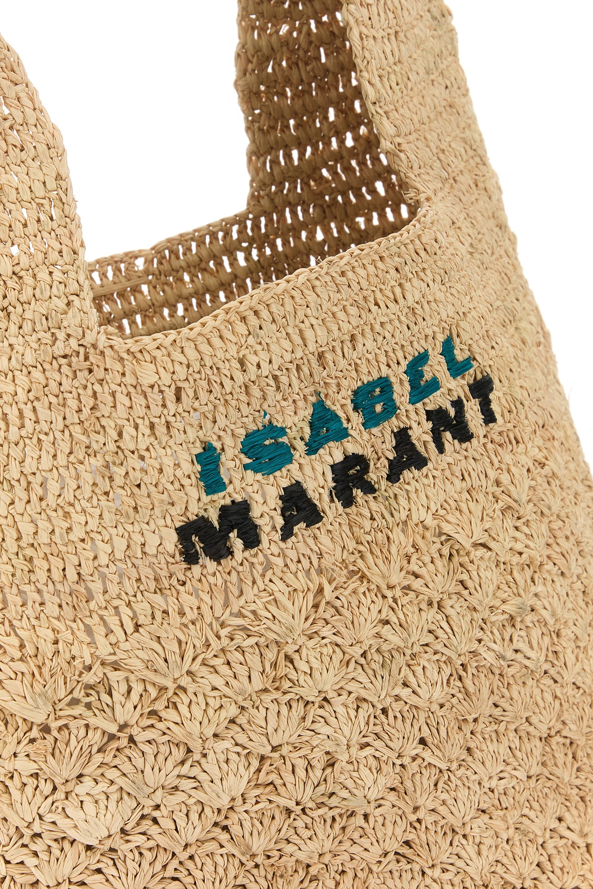 Shoulder bag realized in raffia characterized by contrasting logoed embroidery at the front.