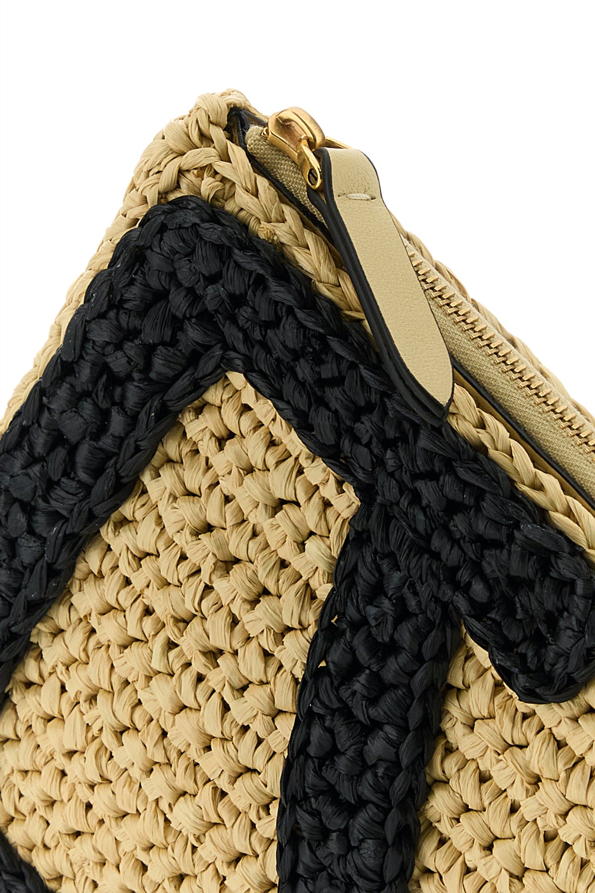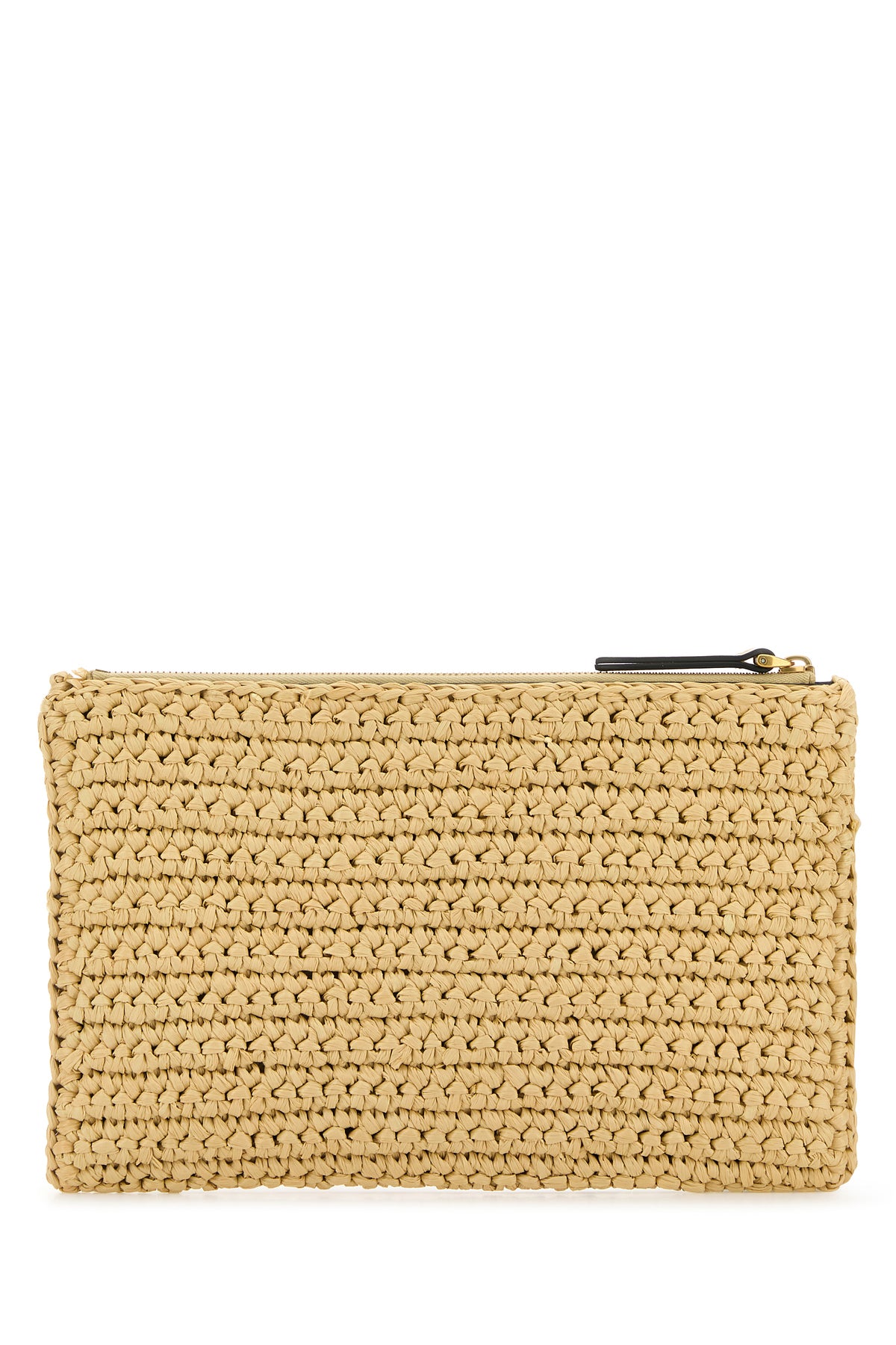 Clutch realized in raffia enriched by contrasting VLogo Signature patch at the front.