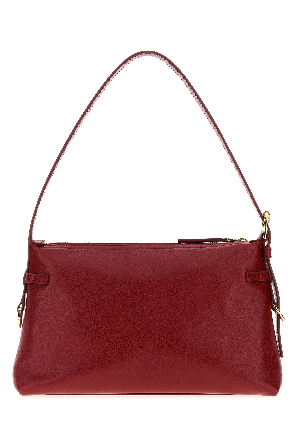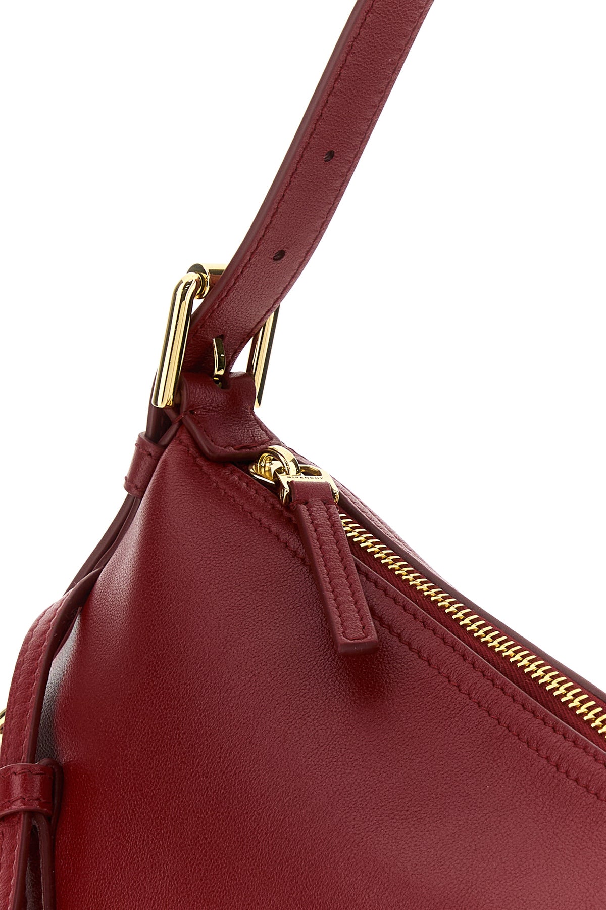 Shoulder bag realized in pebble calf leather characterized by laminated printed logo enriched by straps at the front.