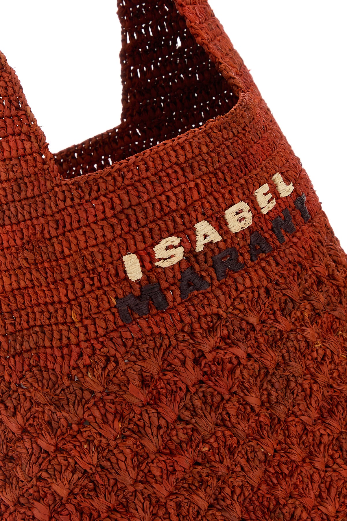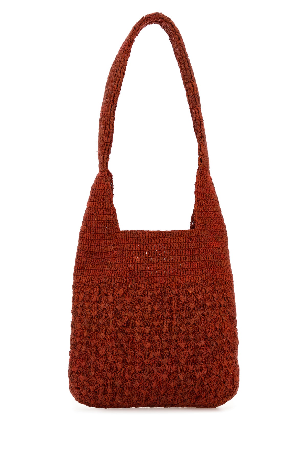 Shoulder bag realized in raffia characterized by contrasting logoed embroidery at the front.