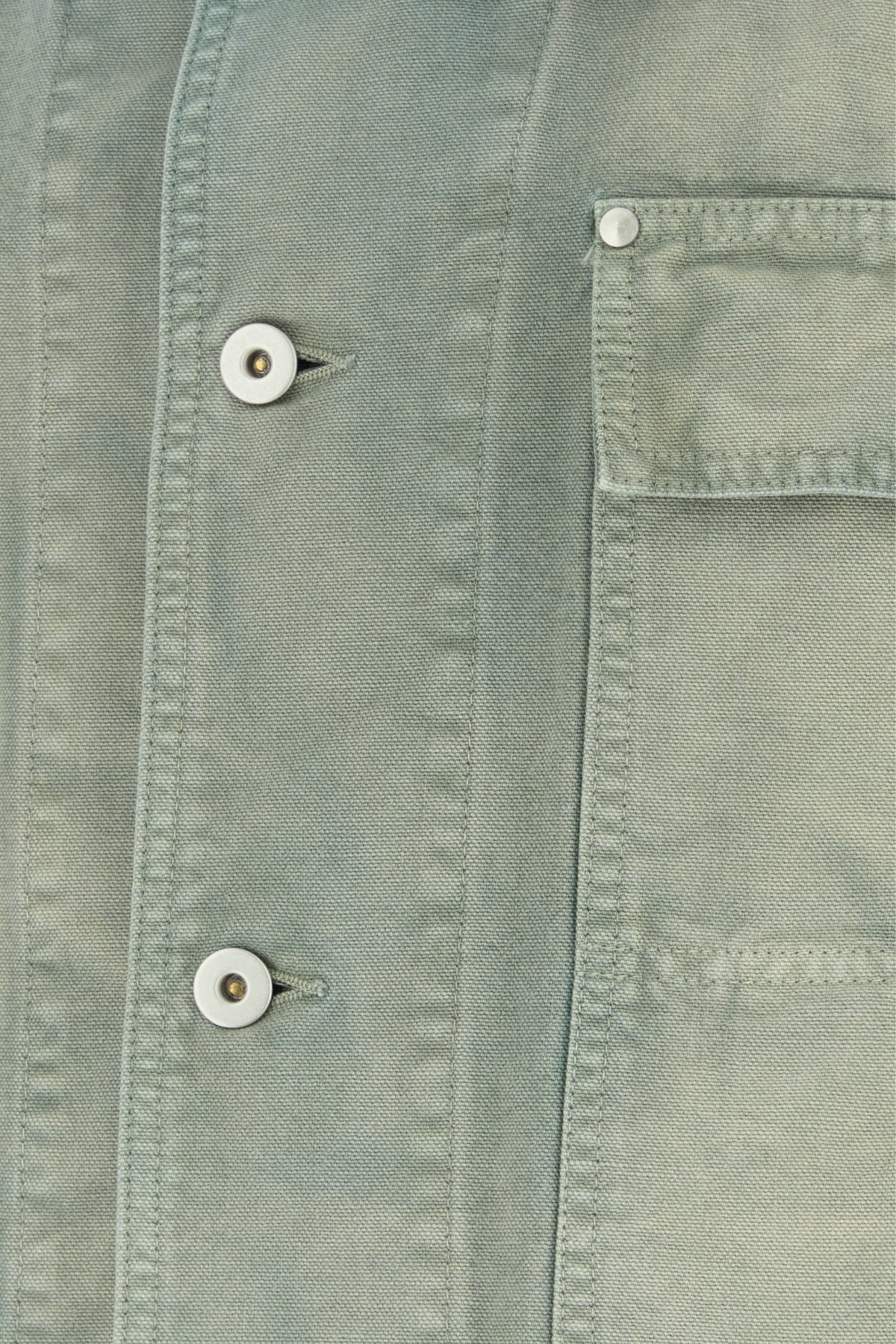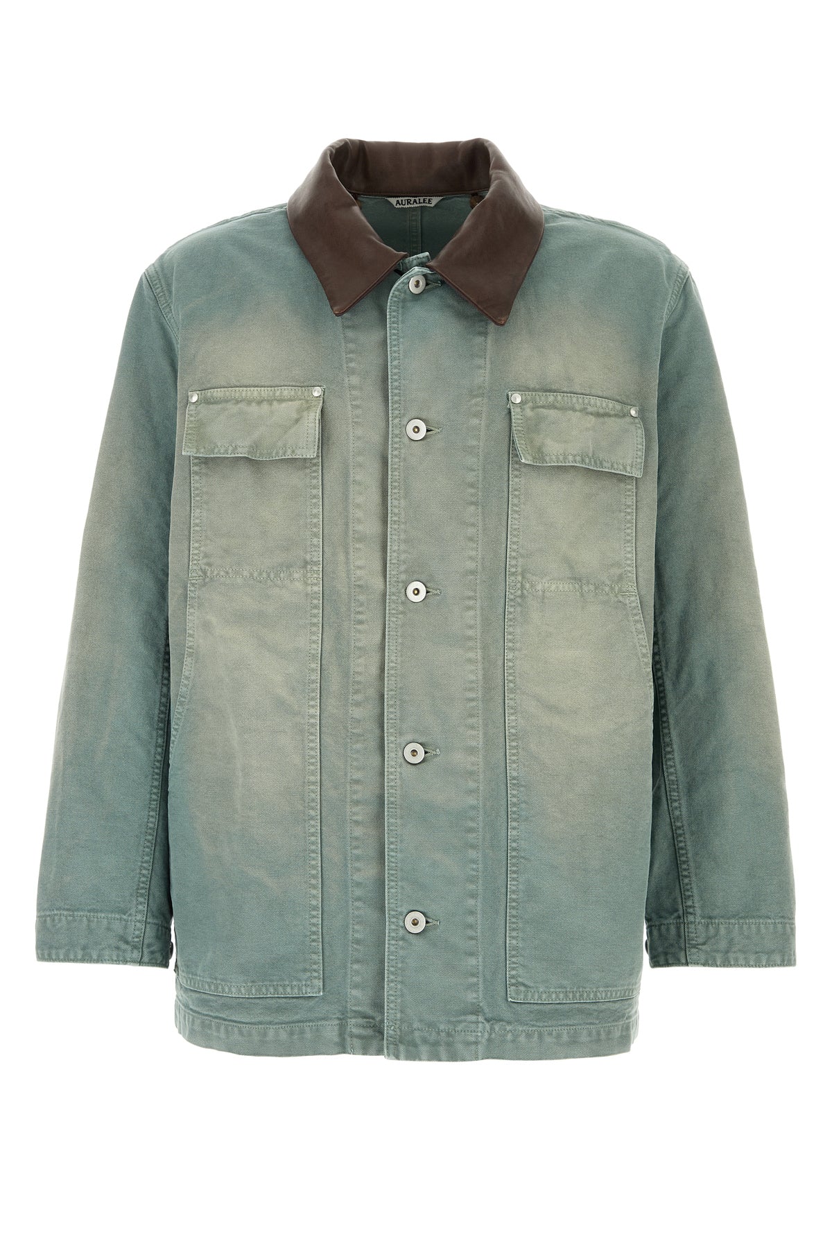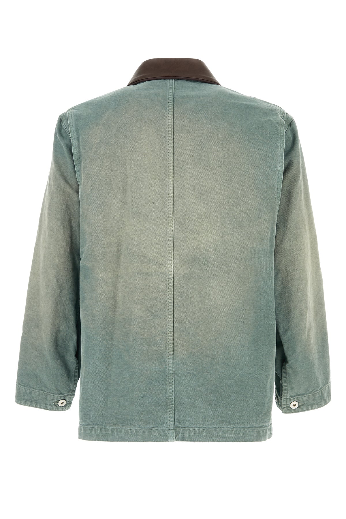 Jacket realized in stonewashed pure cotton denim characterized by leather collar.