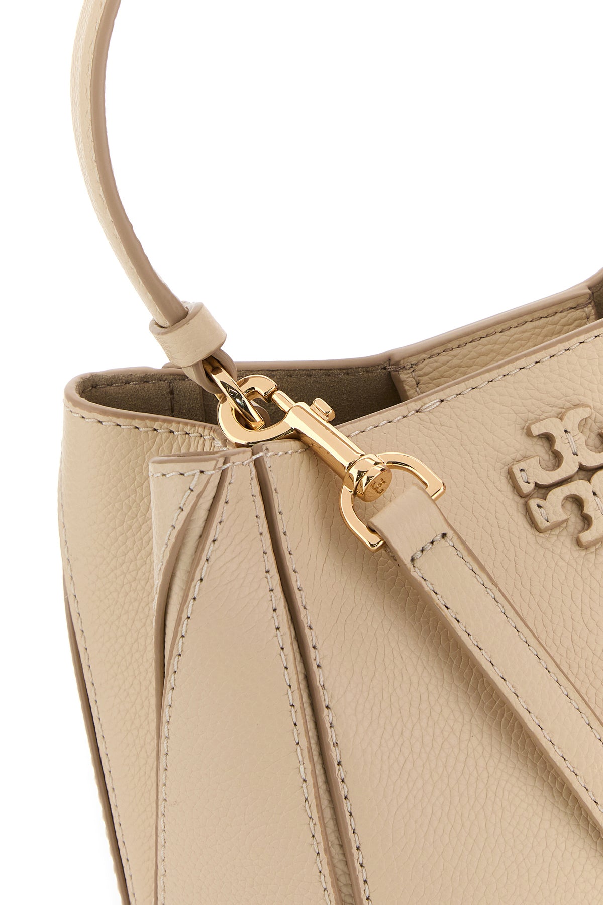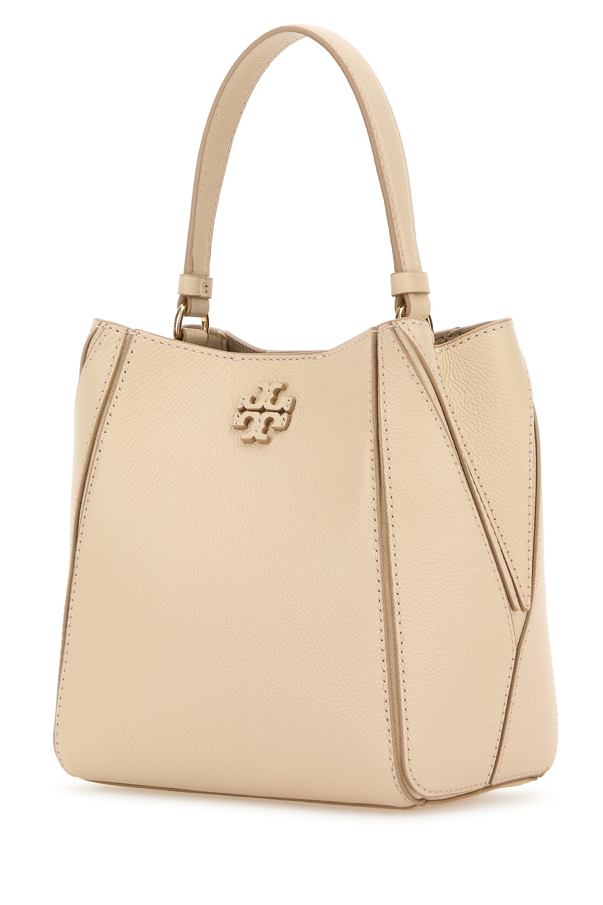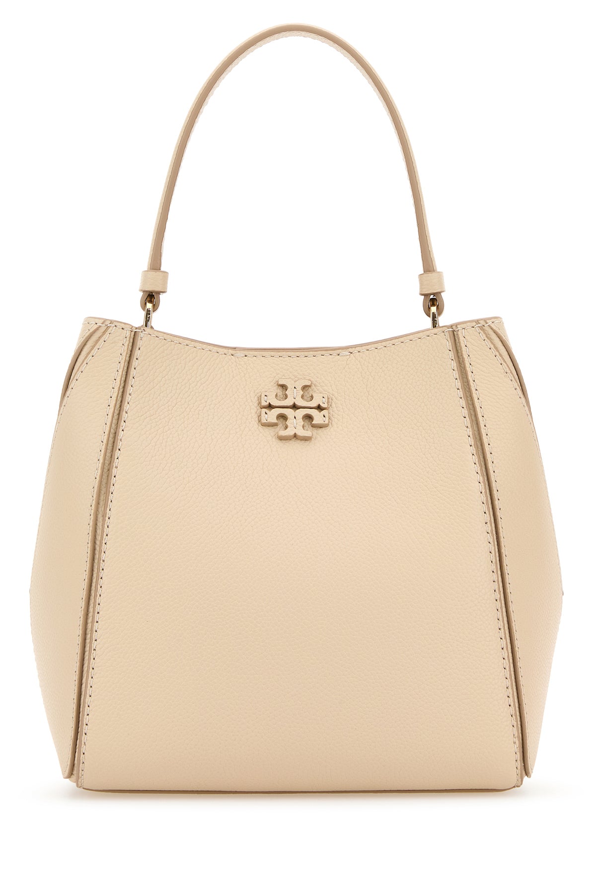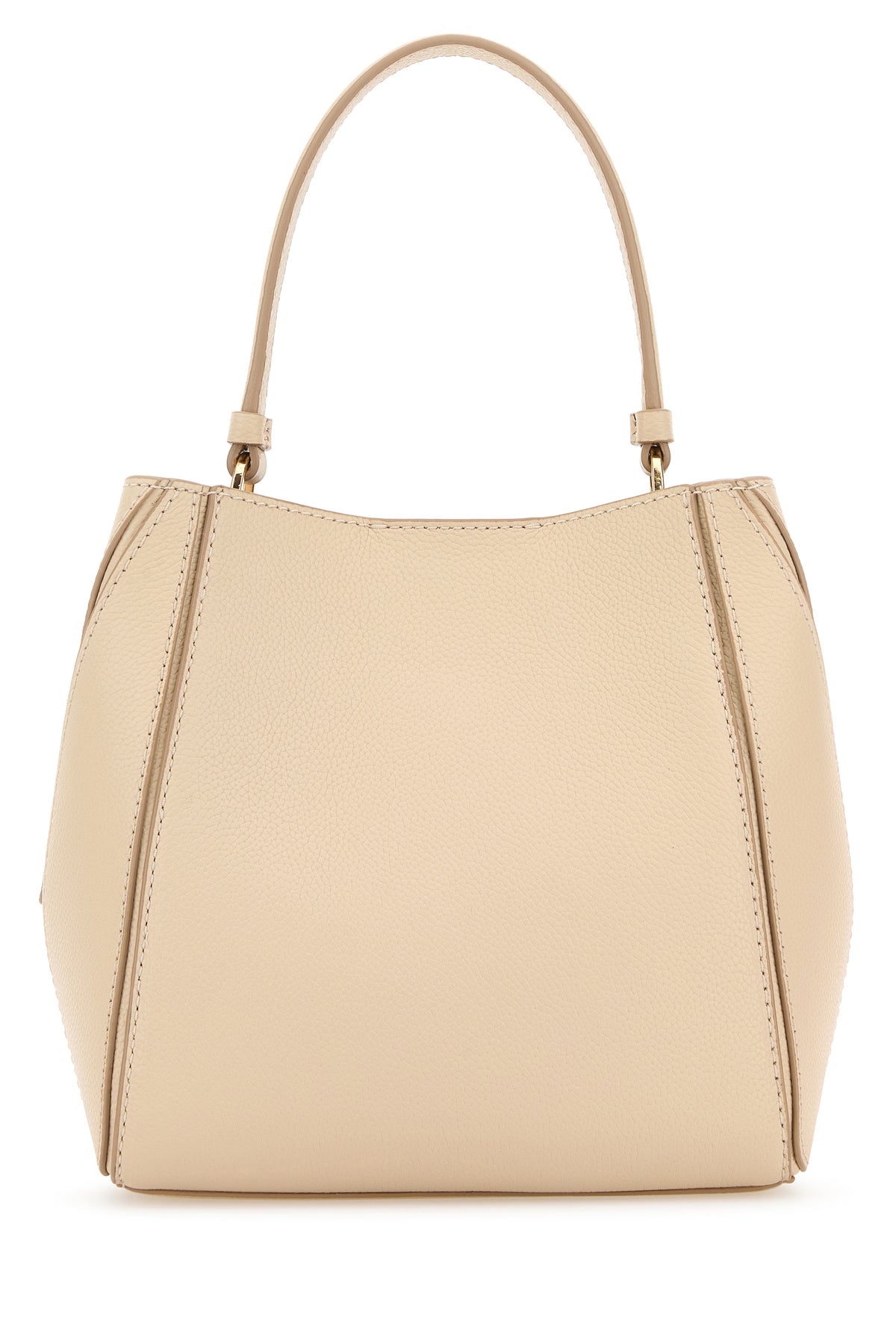 Handbag realized in pebble leather enriched by tonal logoed patch at the front.