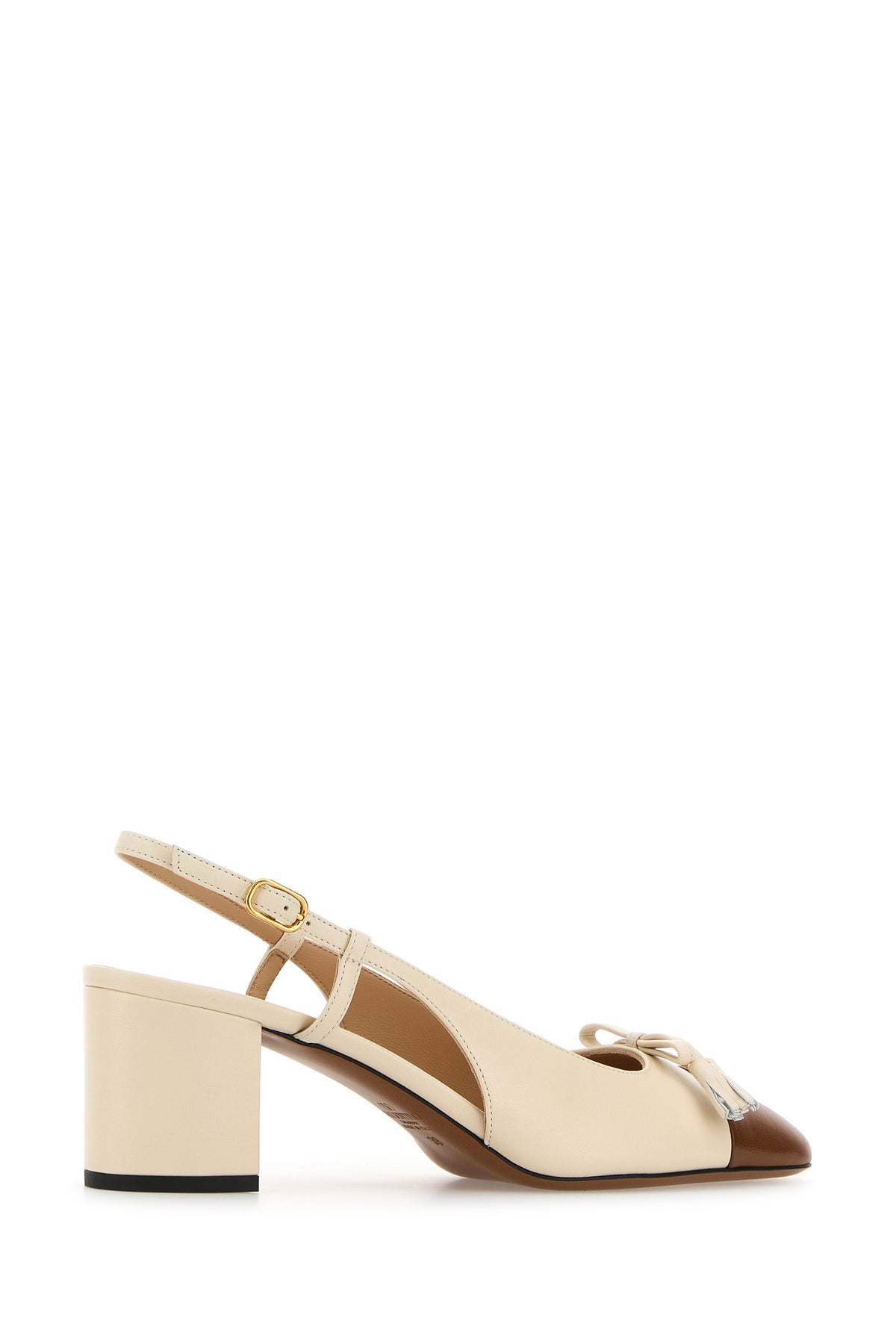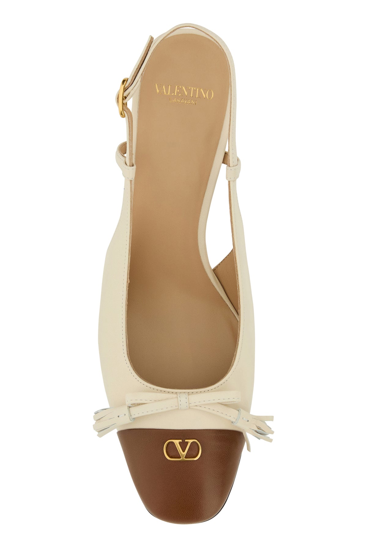 Slingback realized in leather enrich day VLogo Signature metal detail on the contrasting toe.
