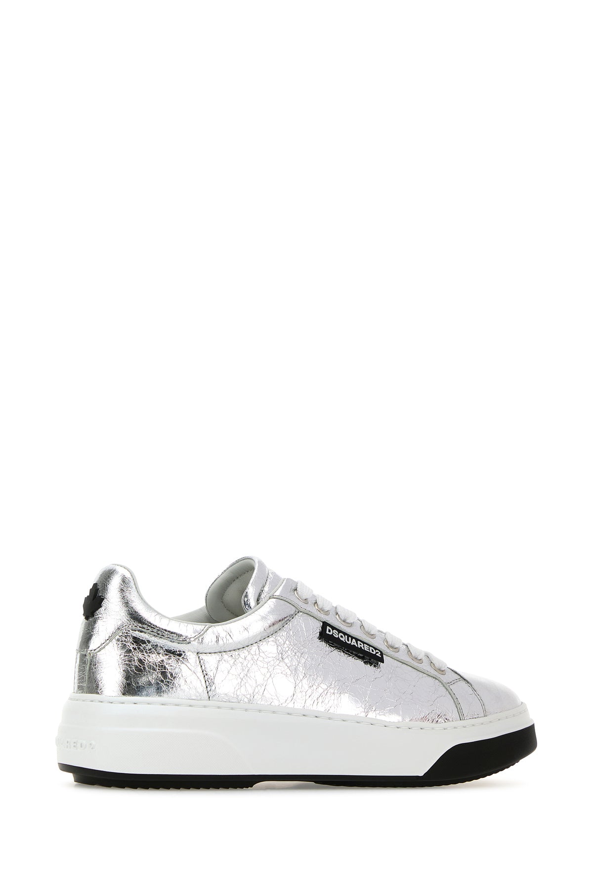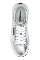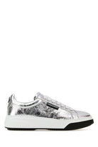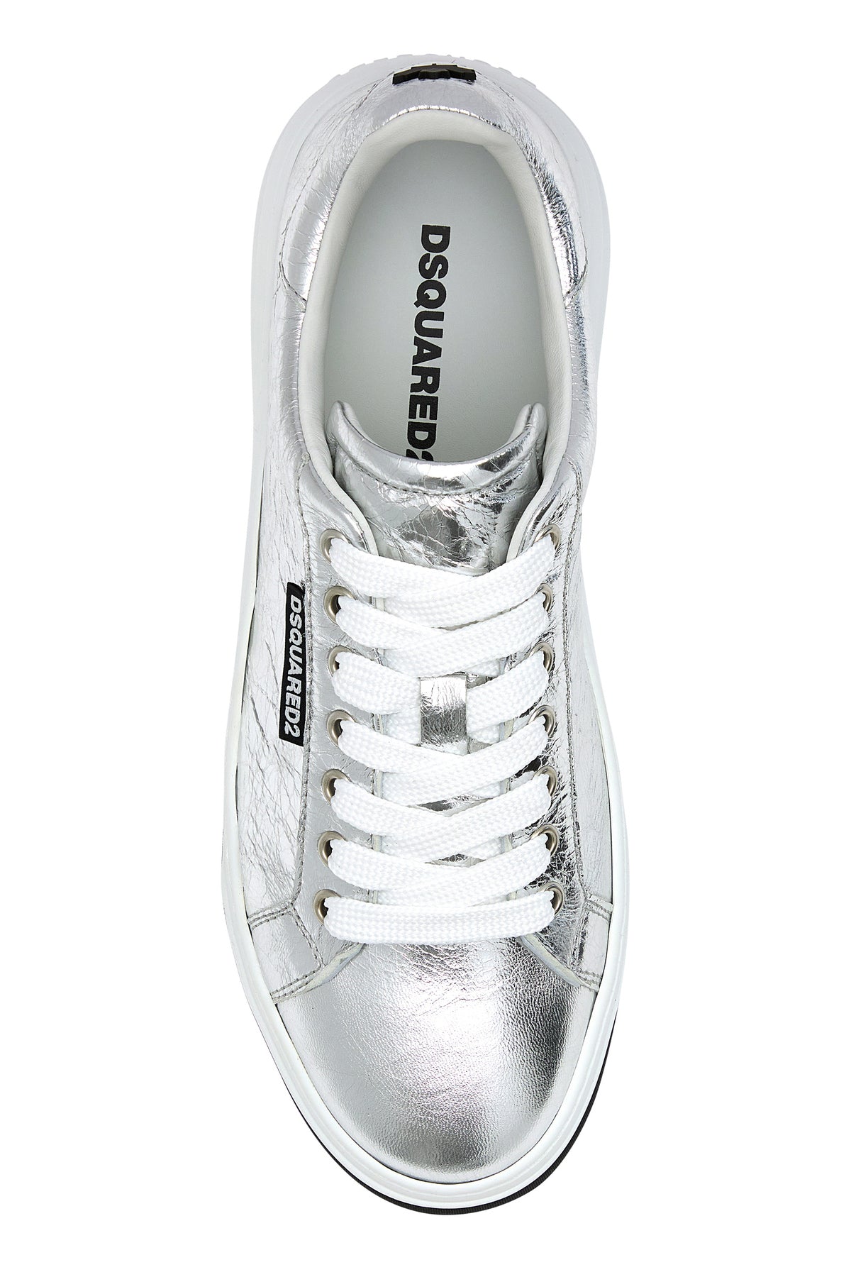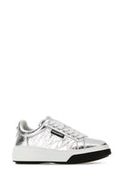 Sneakers realized in pebble leather characterized by in relief logo at the back enriched by contrasting logoed label on the side.