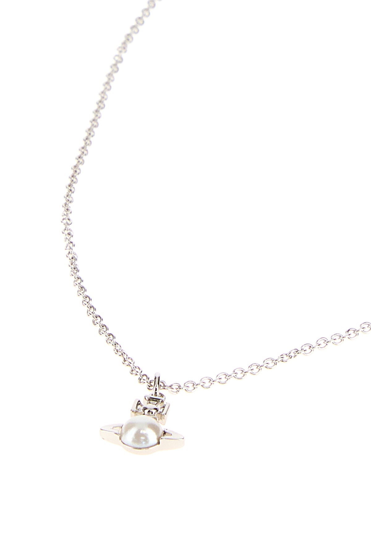 Necklace realized in metal enriched by Orb charm with rhinestones and pearl.