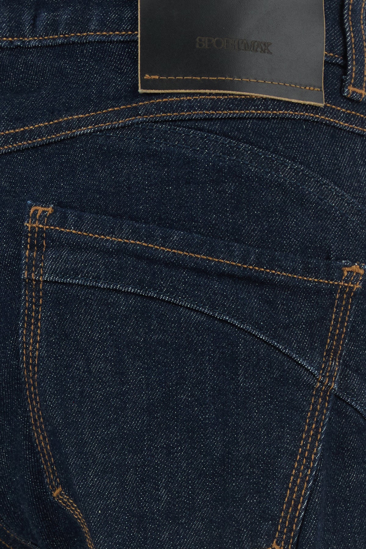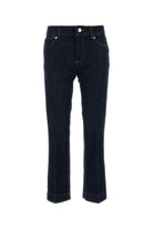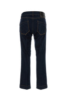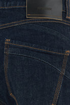 Jeans realized in stretch cotton denim enriched by contrasting logoed label at the back.