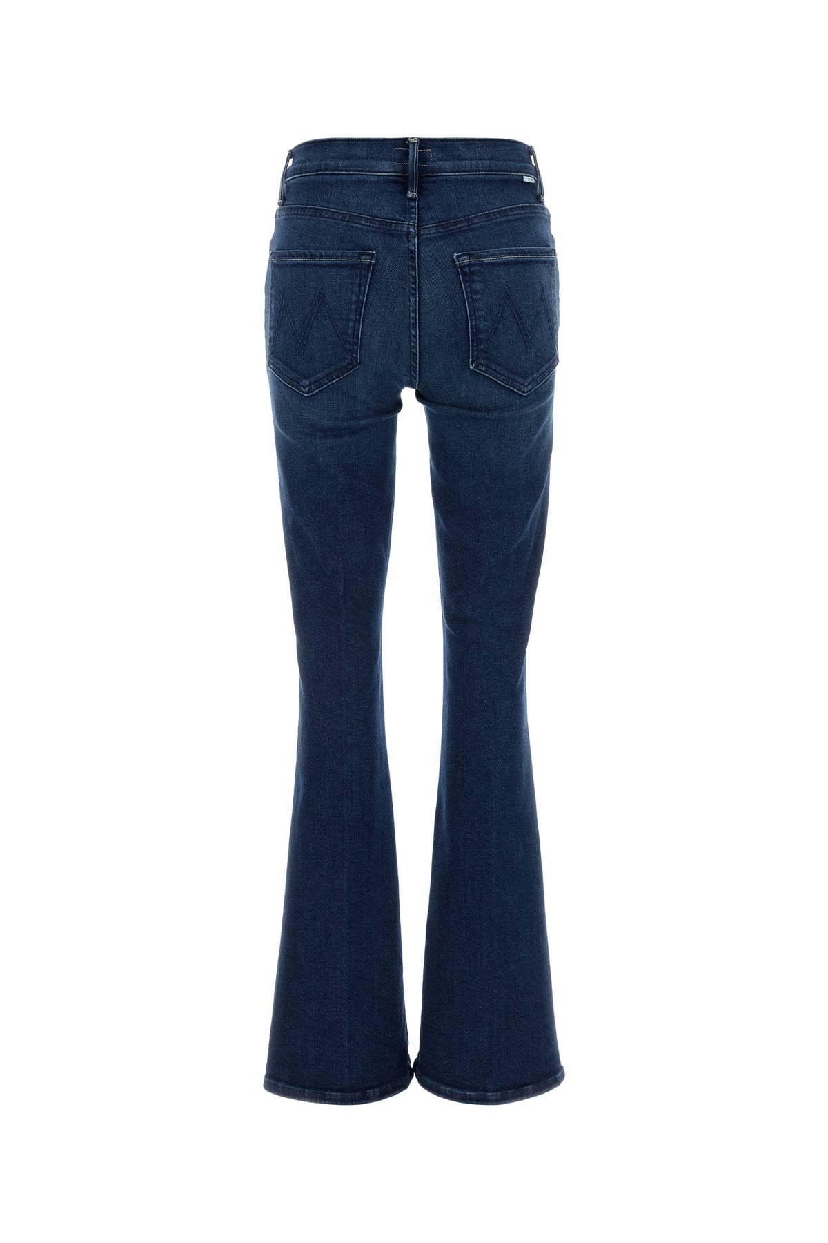 Flared jeans realized in slightly stonewashed stretch cotton blend denim enriched by logoed label at the back.