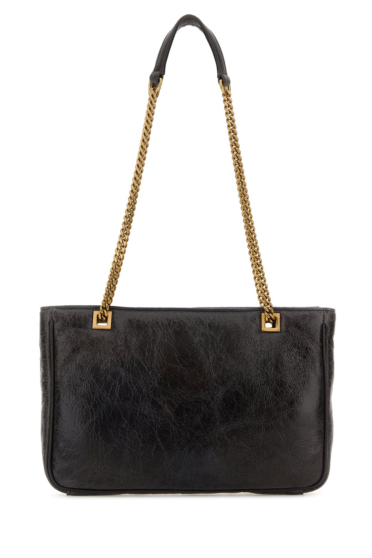 - Metal chain shoulder strap with leather shoulder pad that can be worn single or double