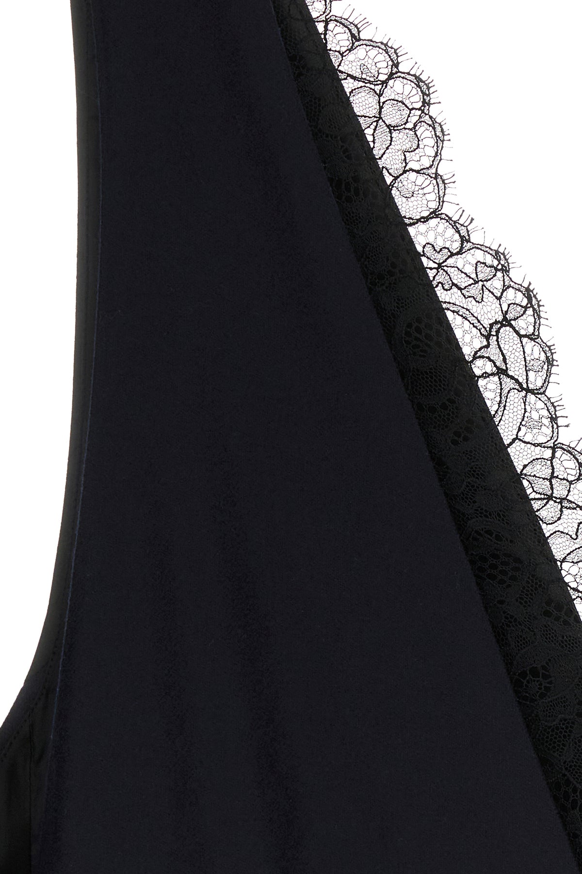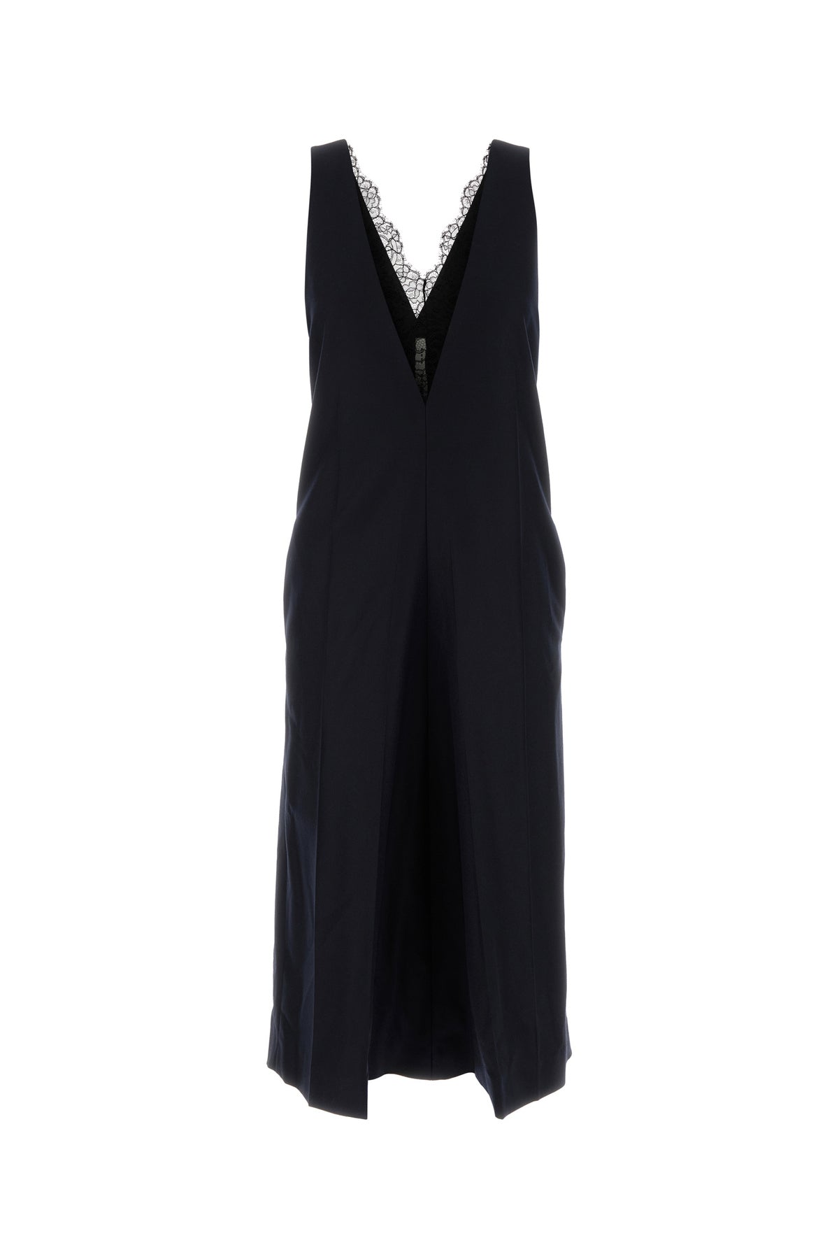 Dress realized in wool and polyester with lace insert on the V neckline.