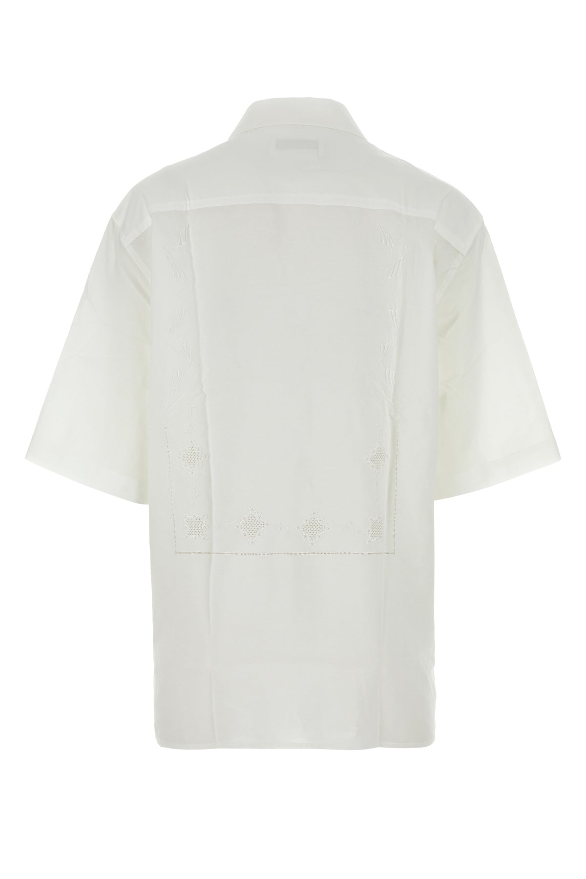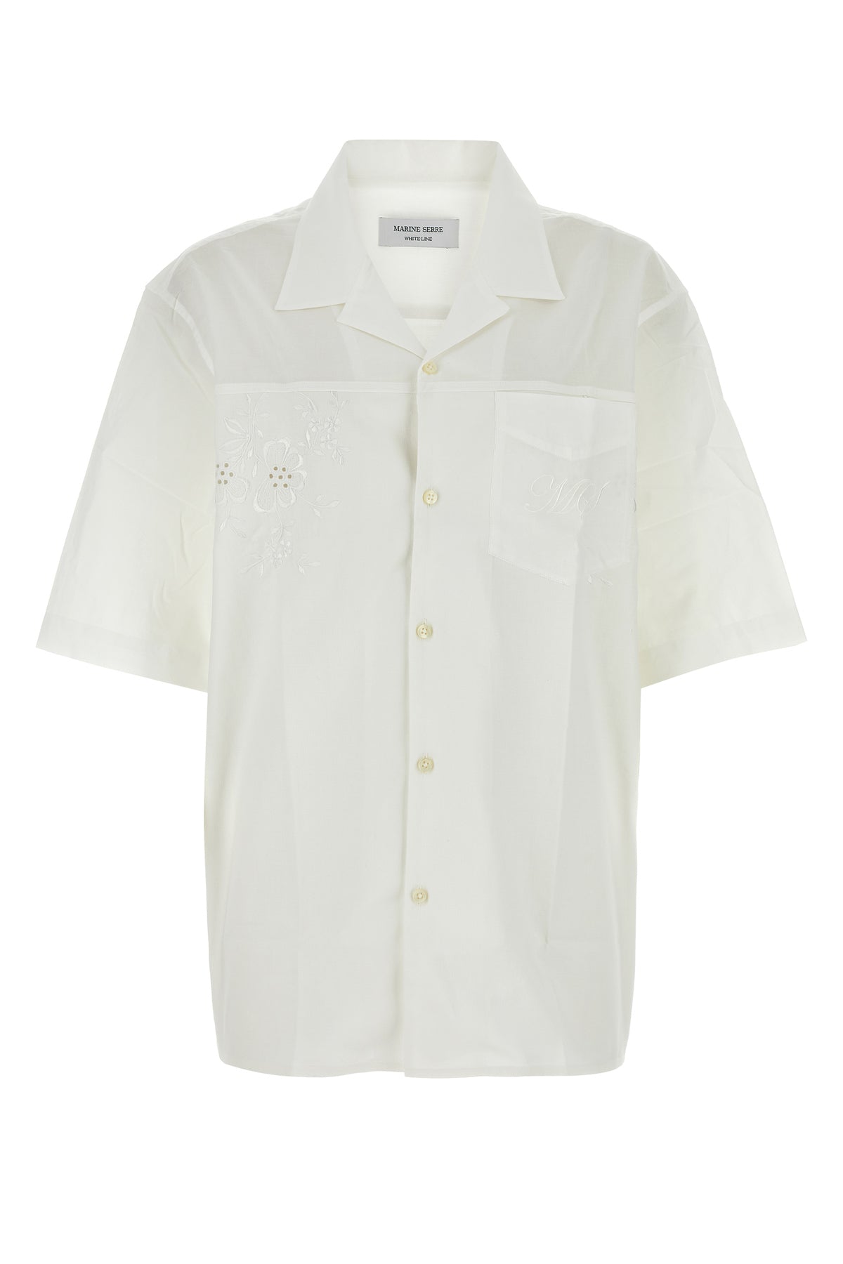 Short-sleeves shirt realized in pure cotton characterized by tonal logoed embroidery on the chest and tonal floral embroidery at the front and at the back.