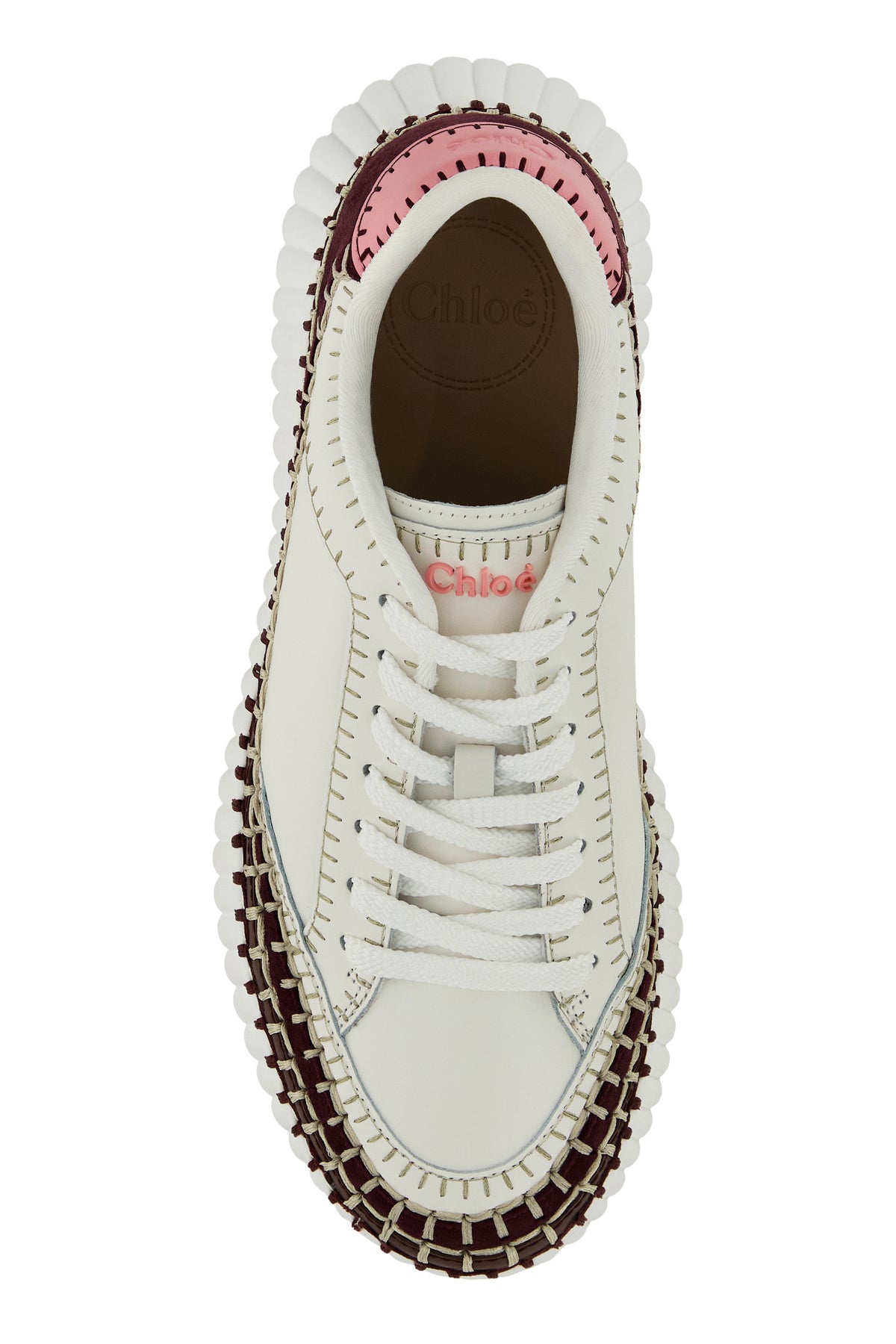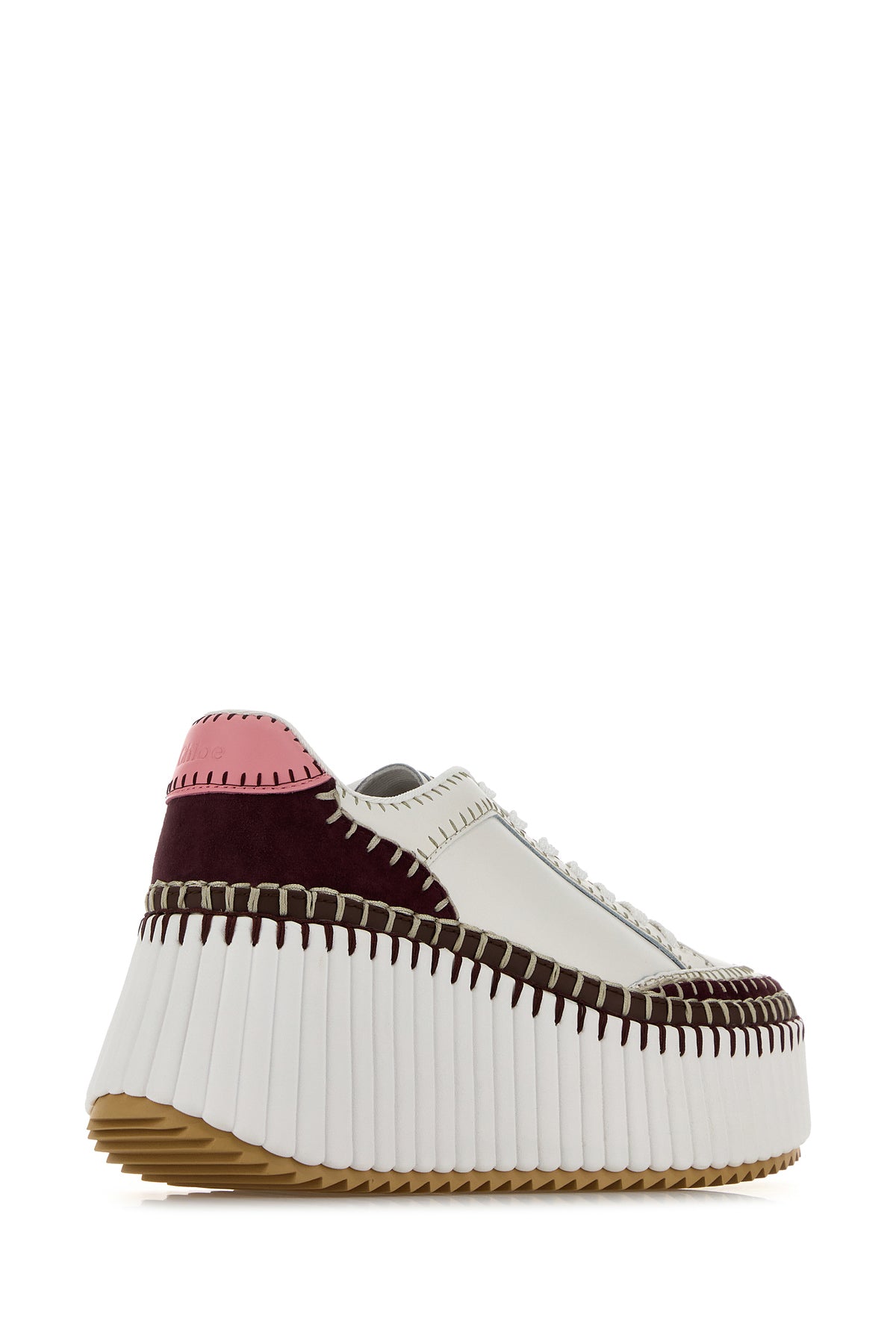 Sneakers realized in smooth bovine leather with contrasting suede inserts characterized by embossed logo on the contrasting heel.
