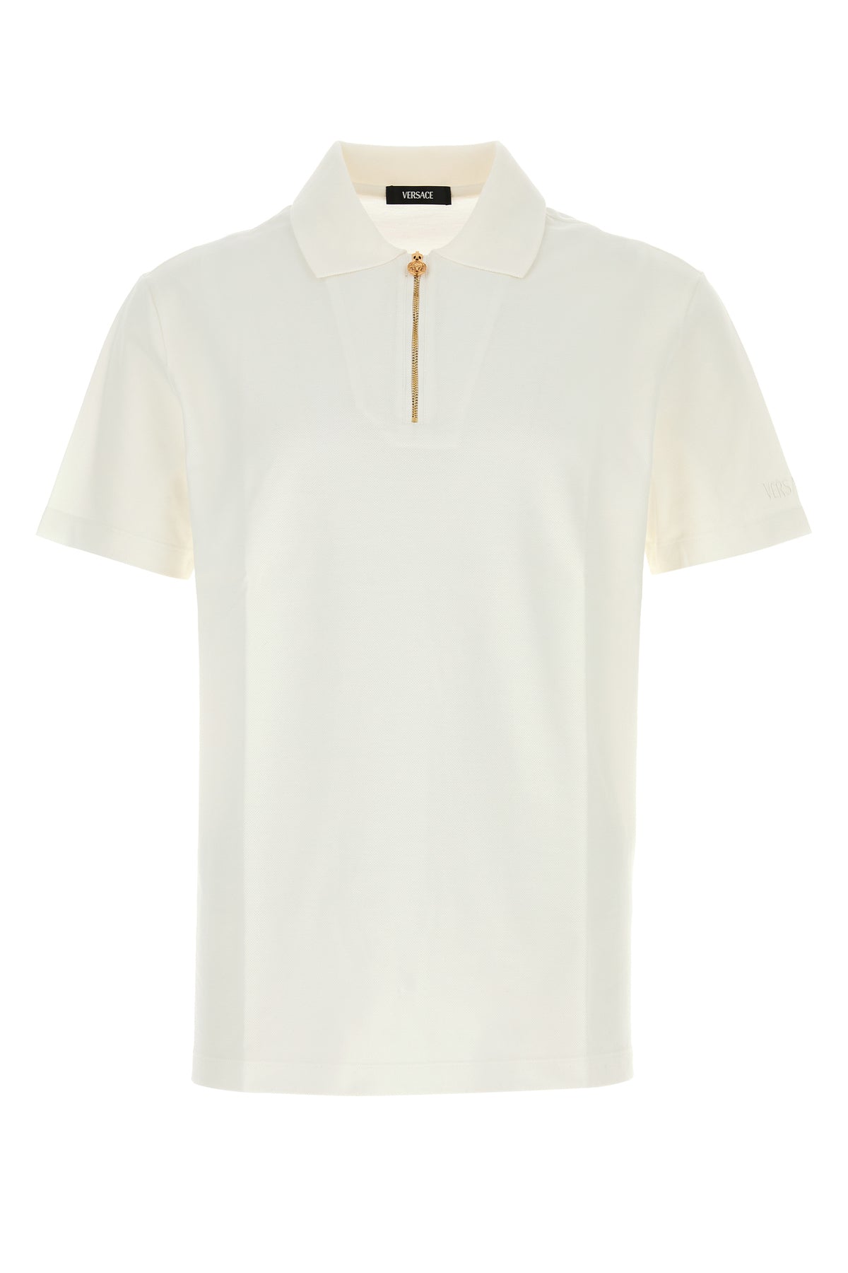 Polo shirt realized in pure cotton piquet characterized by tonal embroidered logo on the sleeve.