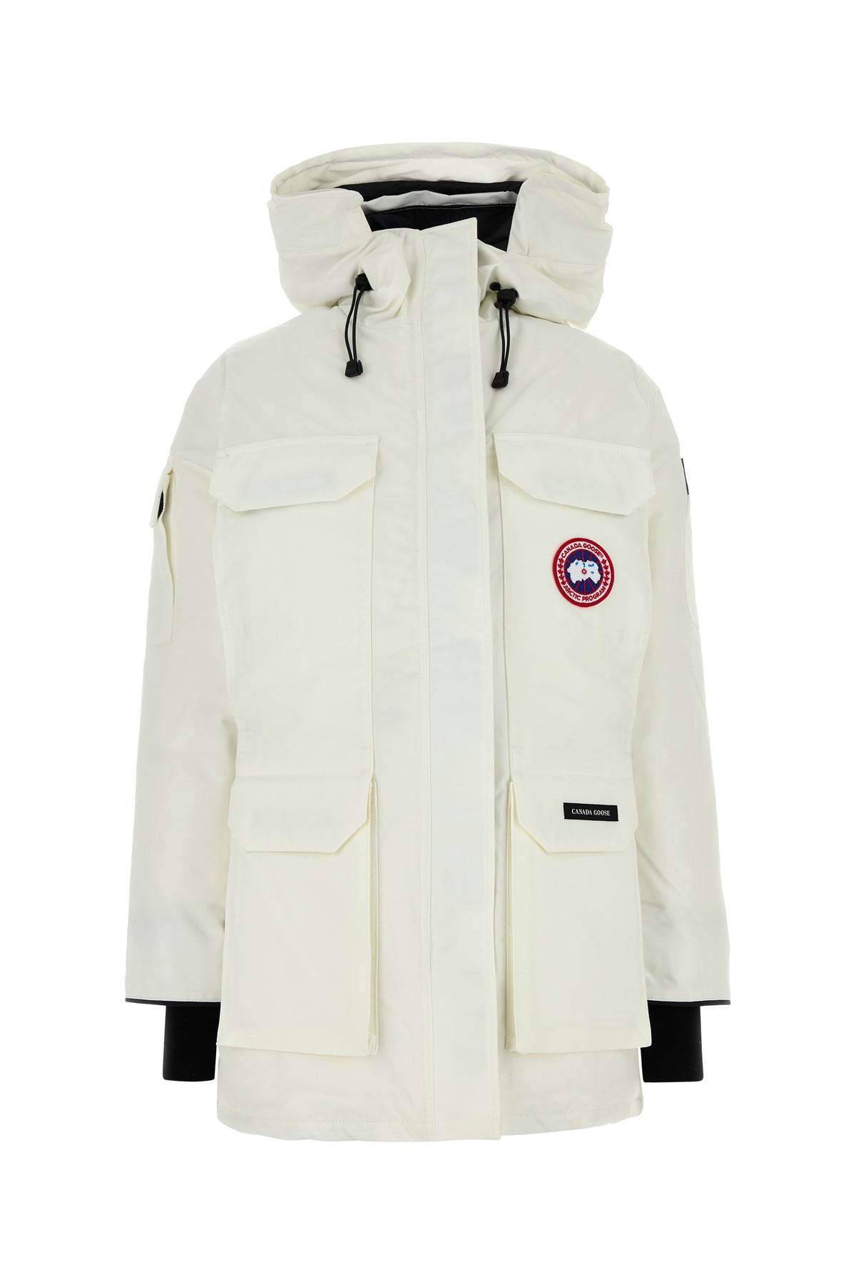 - Four patch pockets and two zip pockets at the front and a patch pocket on the sleeve