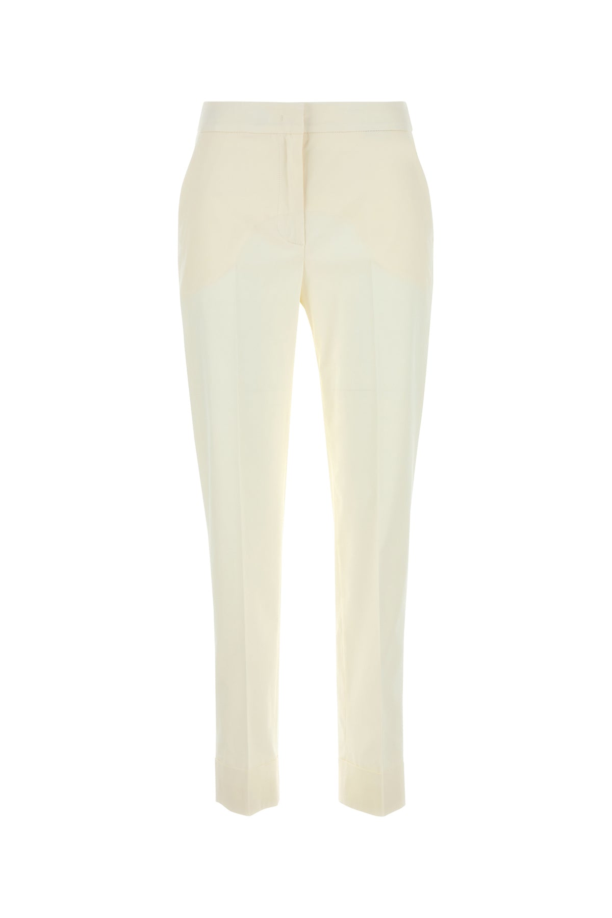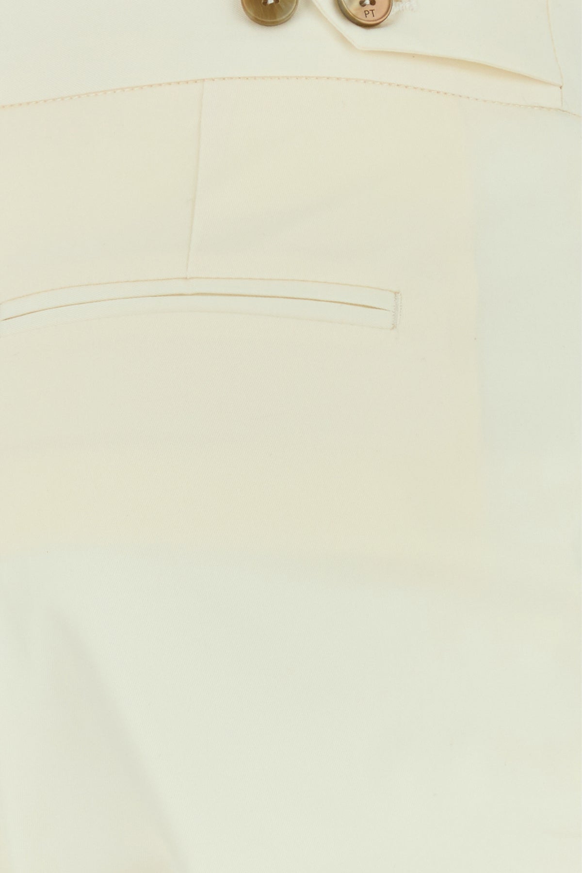 Pant realized in stretch cotton blend characterized by central ironed pleats.