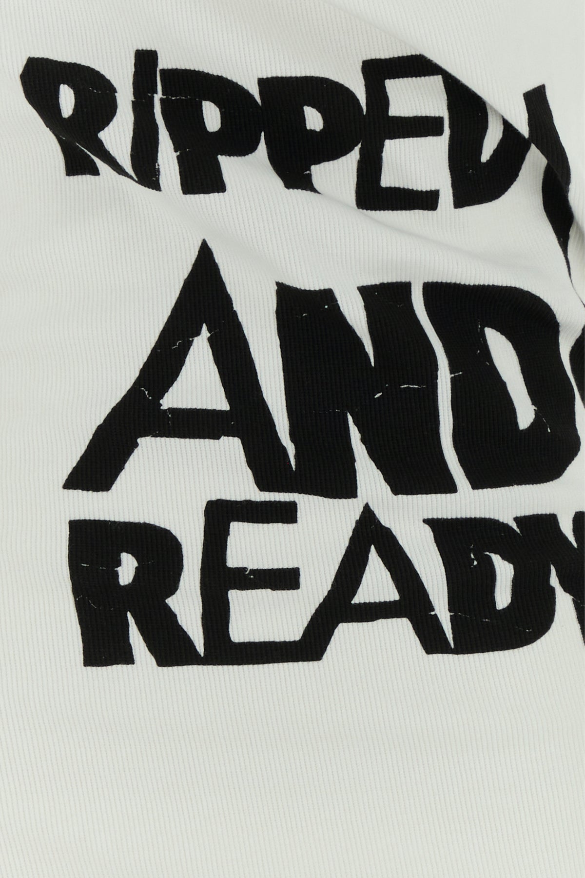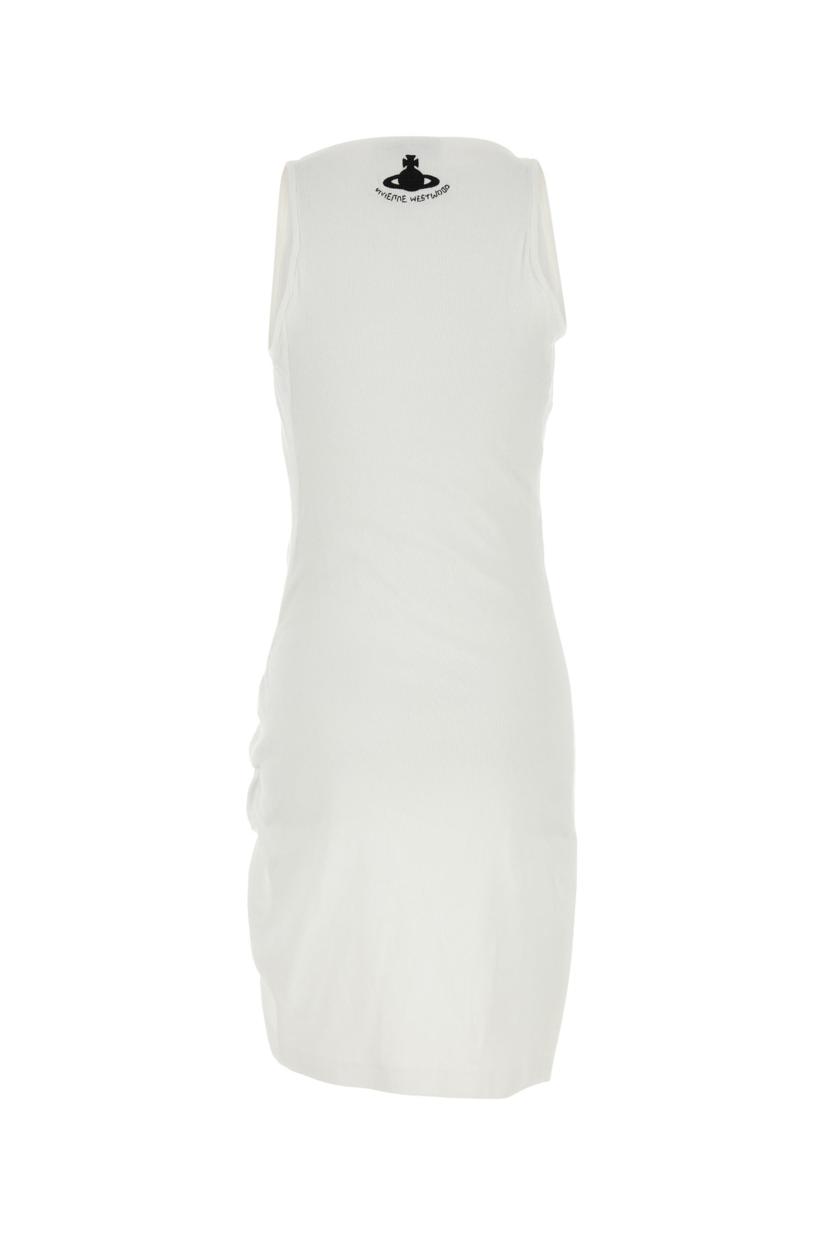 Fitted dress realized in ribbed stretch cotton characterized by peculiar contrasting printed at the front and contrasting Orb embroidery at the back.