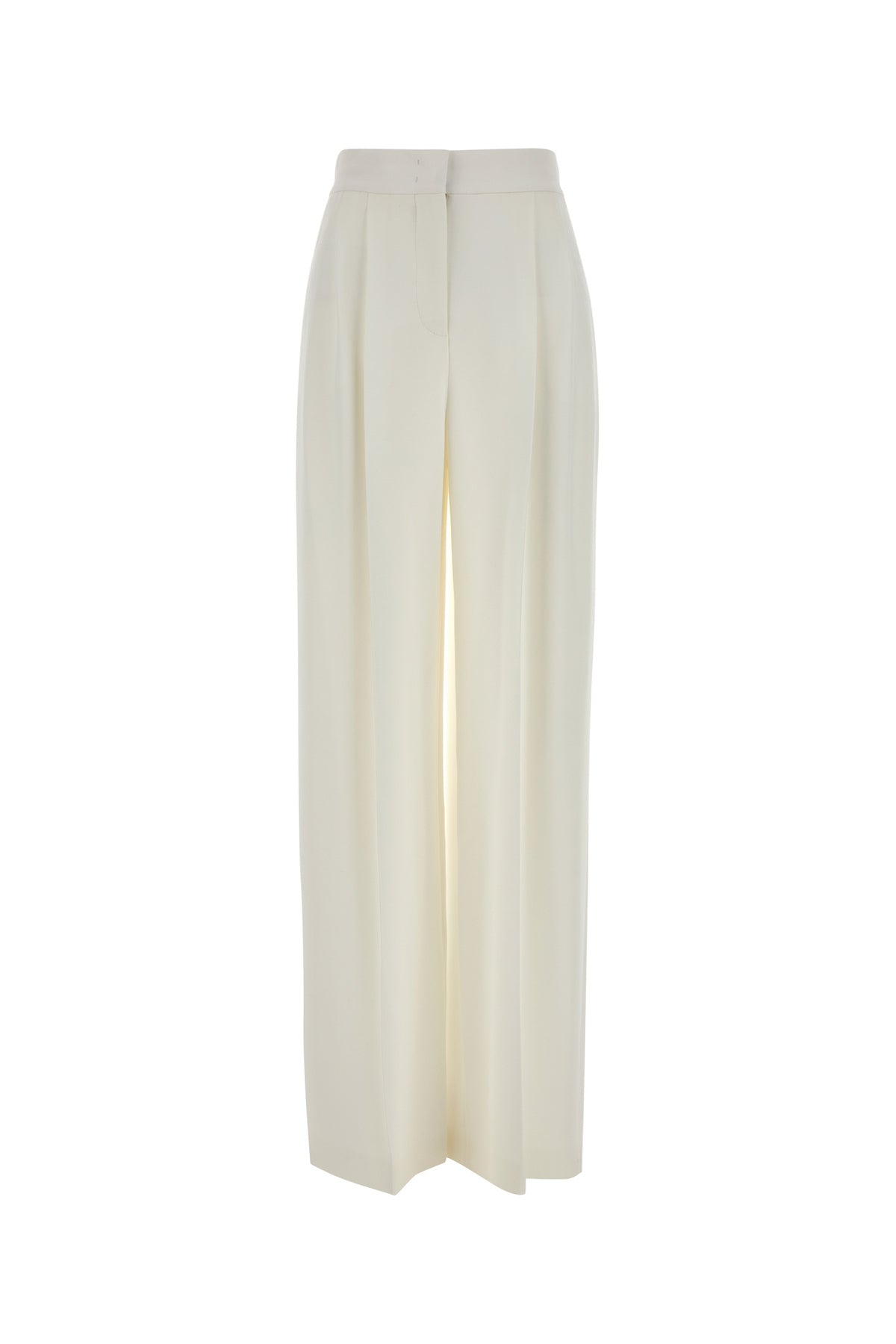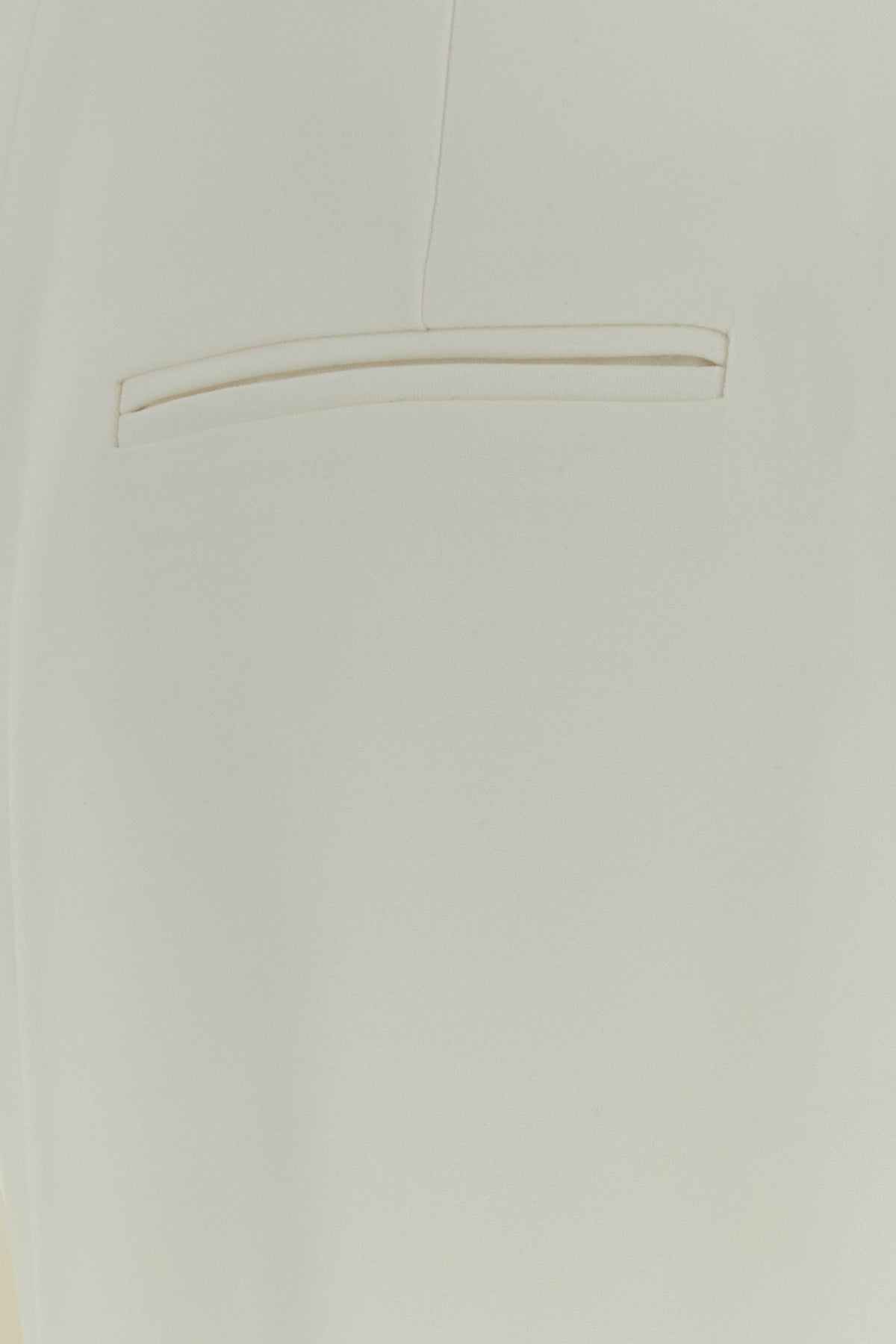 Wide-leg pant realized in stretch crepe characterized by inverted pleats.