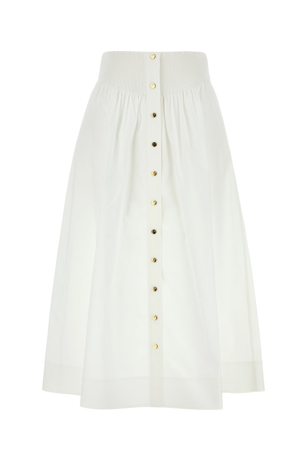 Flared skirt realized in stretch cotton poplin characterized by elastic waist.