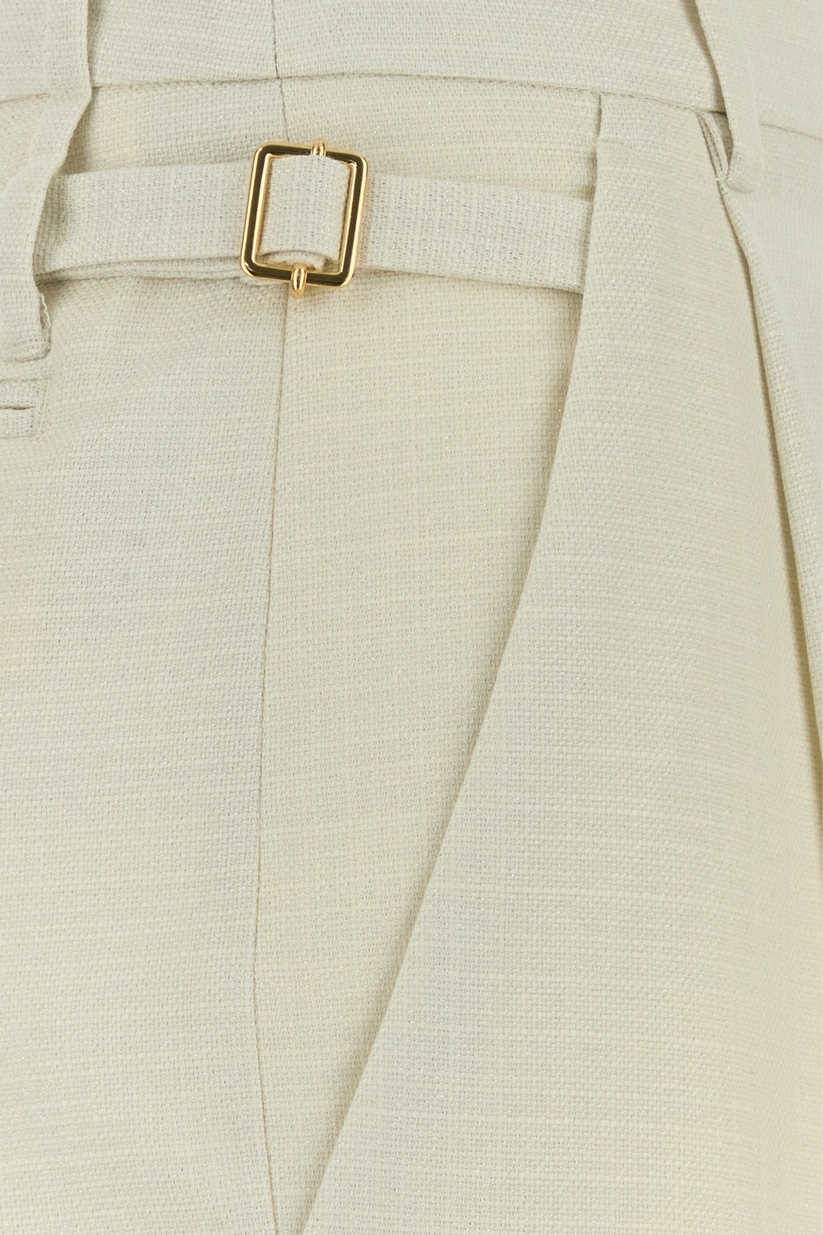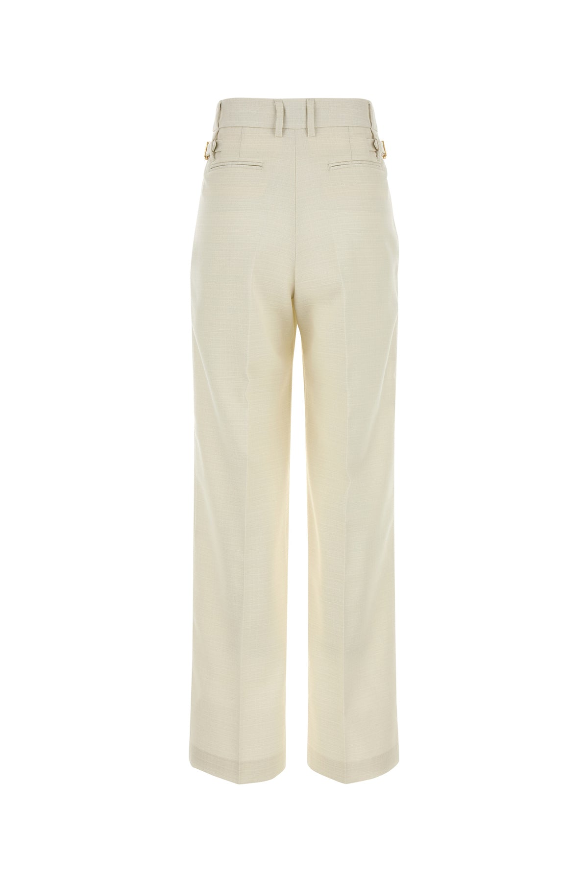Pant realized in wool blend with lurex threads characterized by inverted pleats.