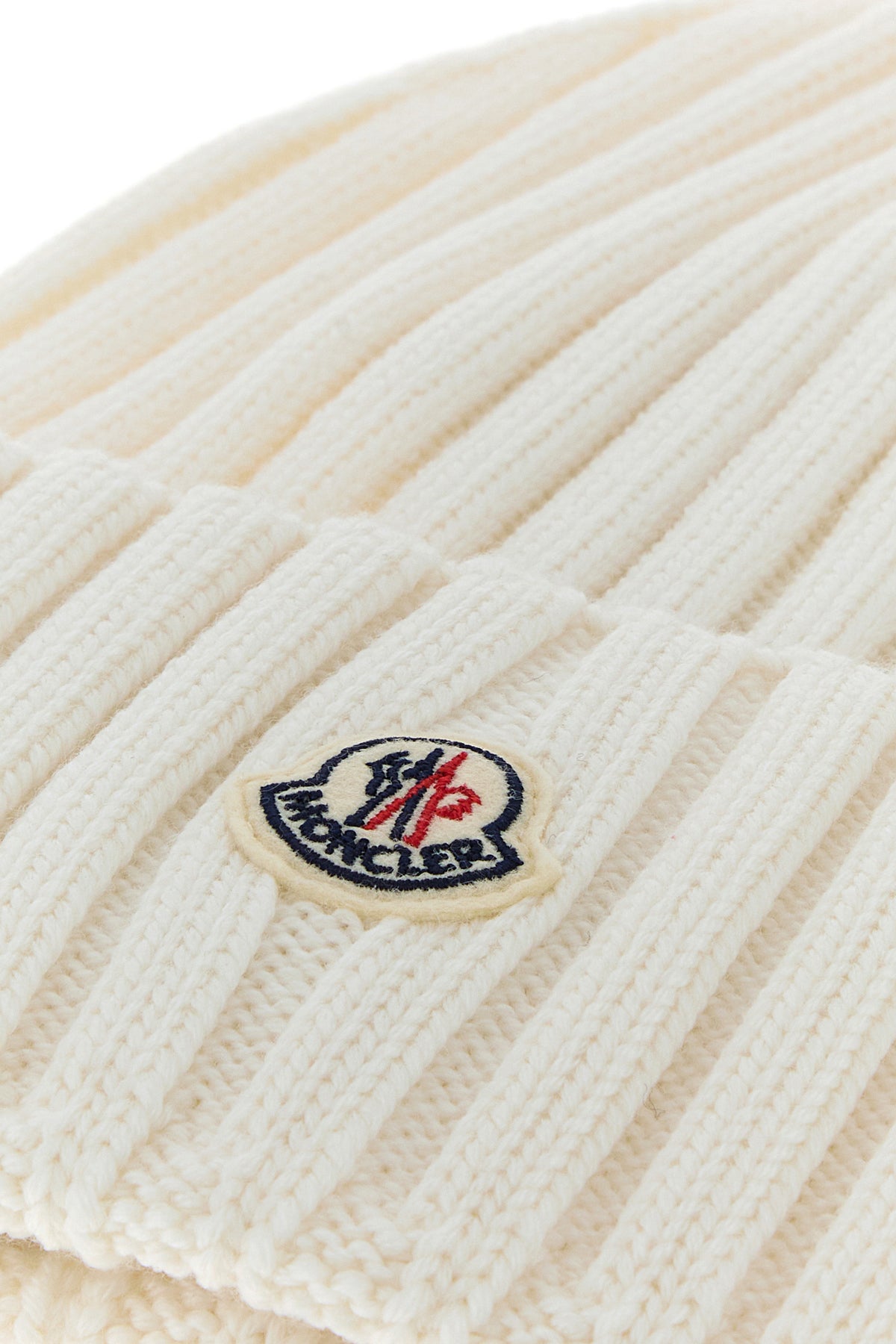 Beanie hat realized in pure virgin wool enriched by contrasting logoed patch at the front.