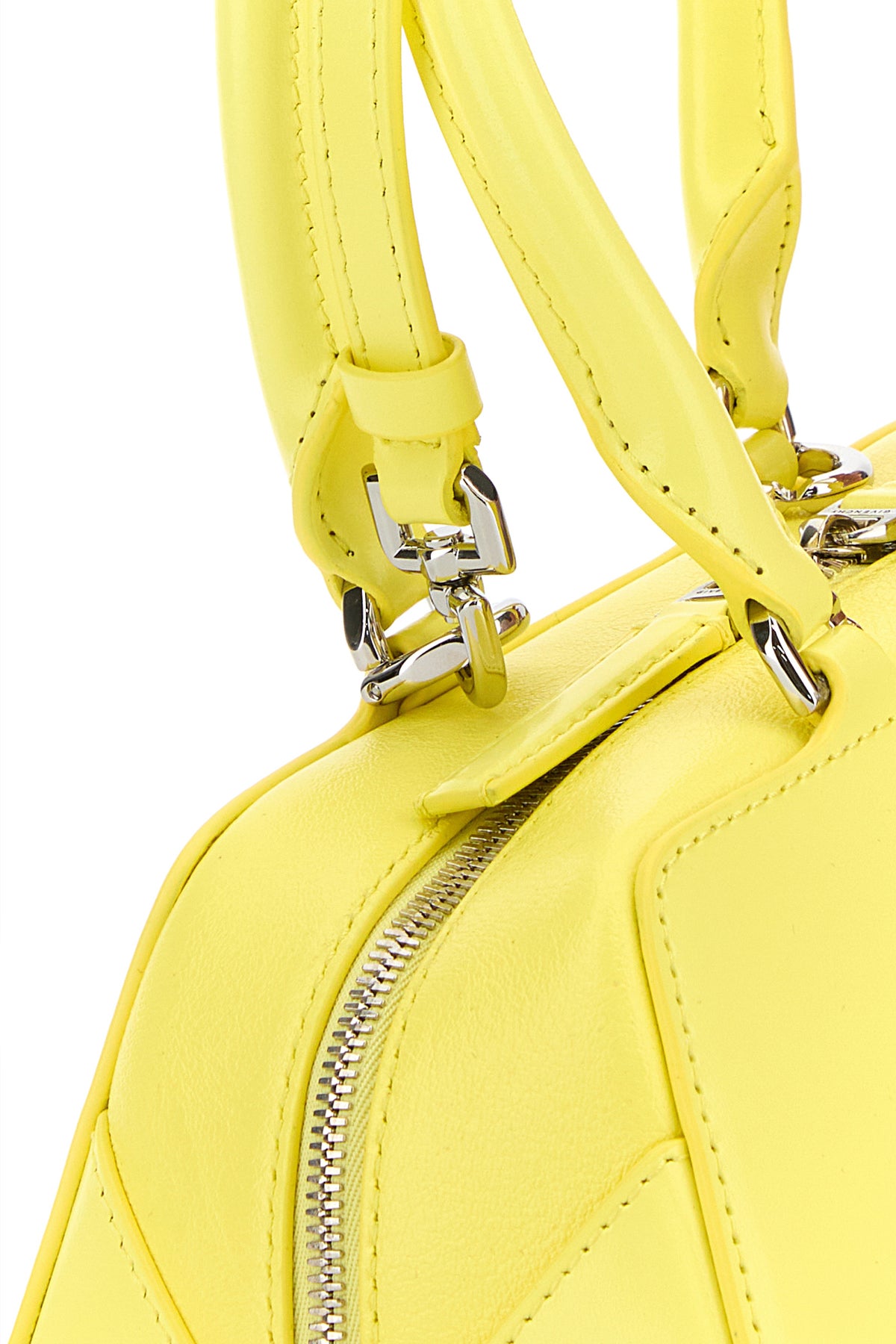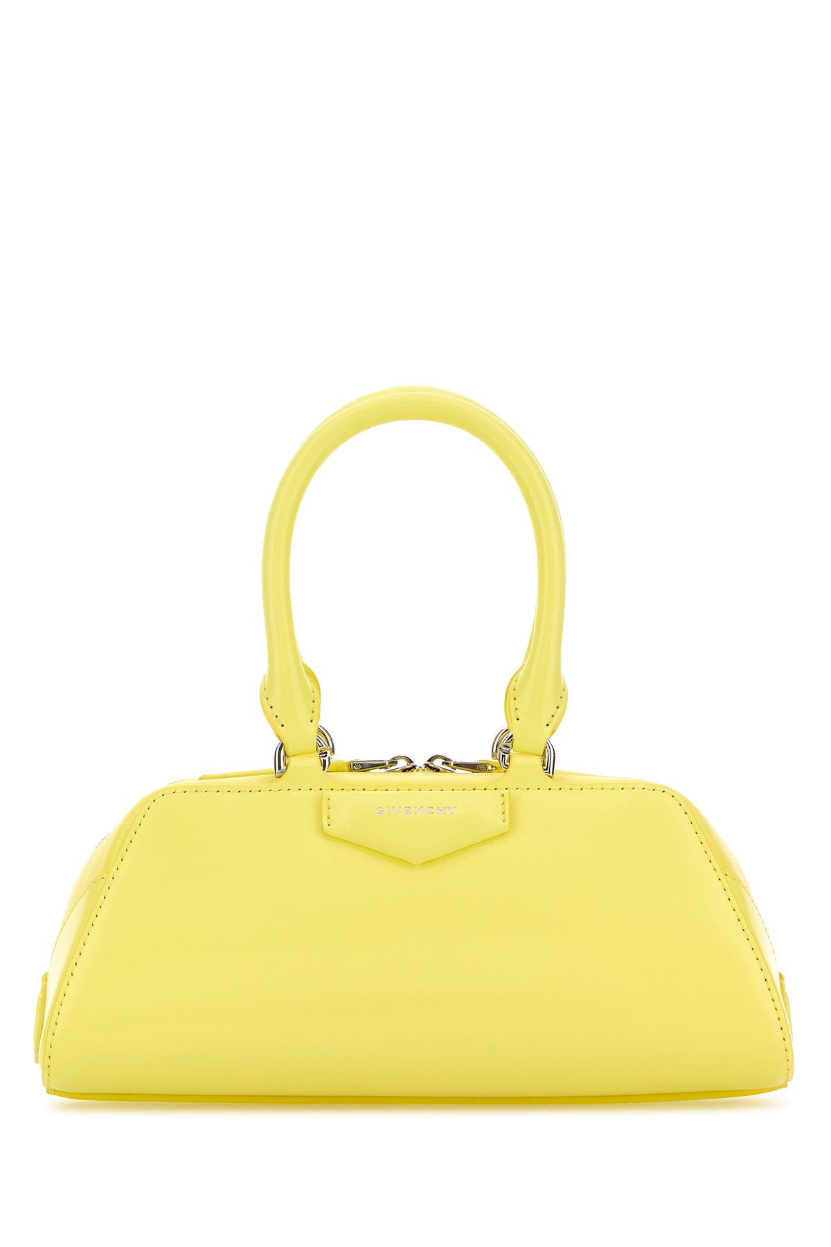 Handbag realized in polished-finish calf leather characterized by laminated printed logo at the front.