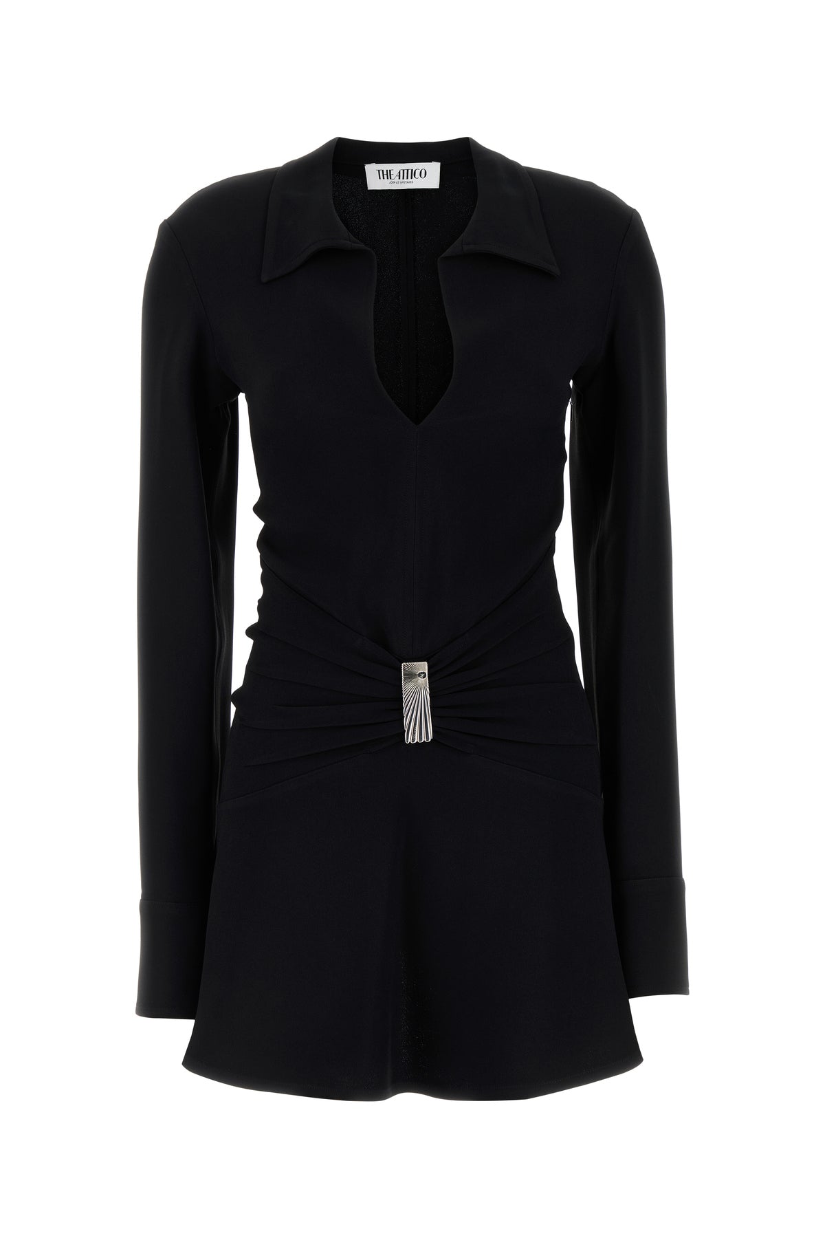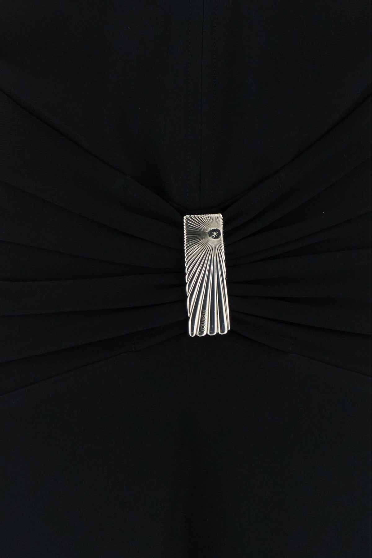 Mini dress realized in cady characterized by drape with metal logoed detail at the front.