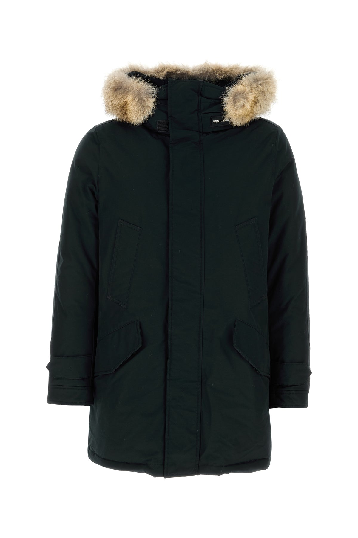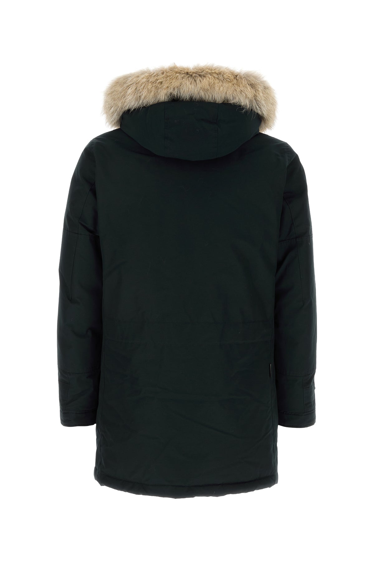 Down jacket realized in cotton blend enriched by logoed patch on the neck.