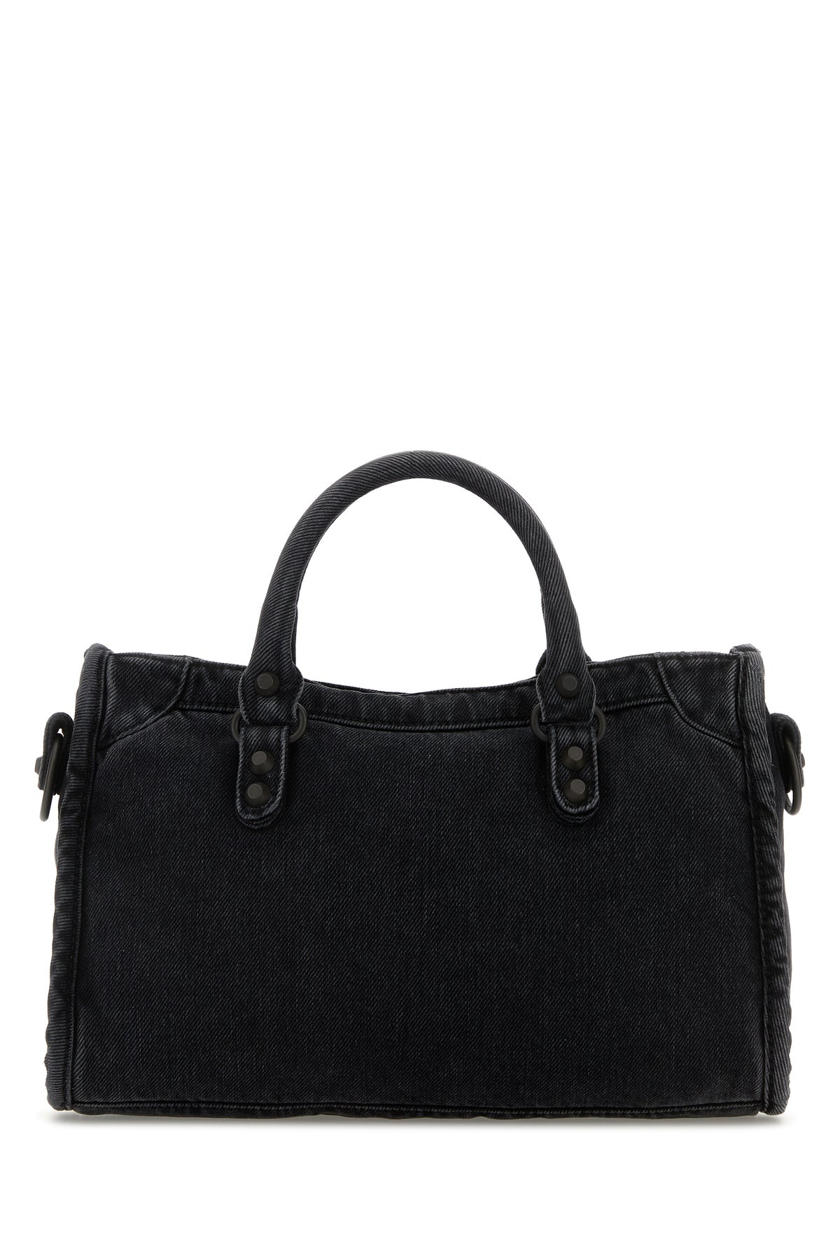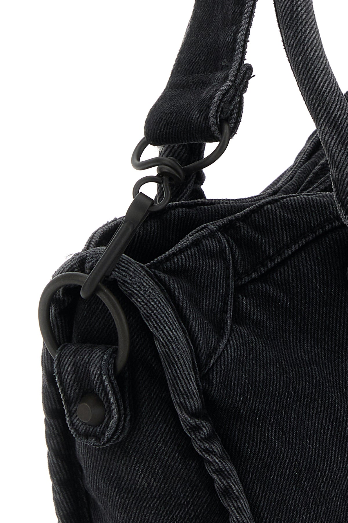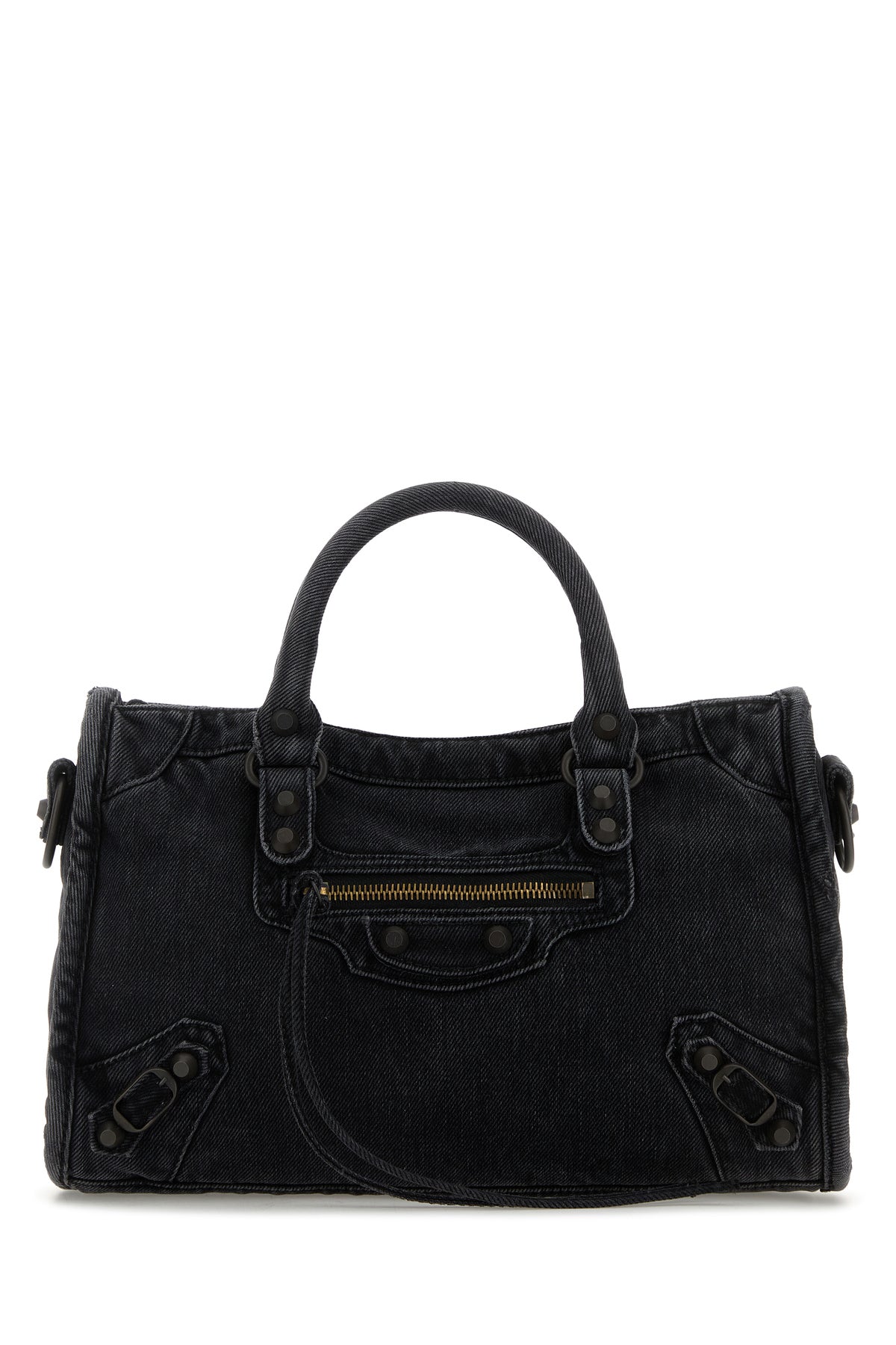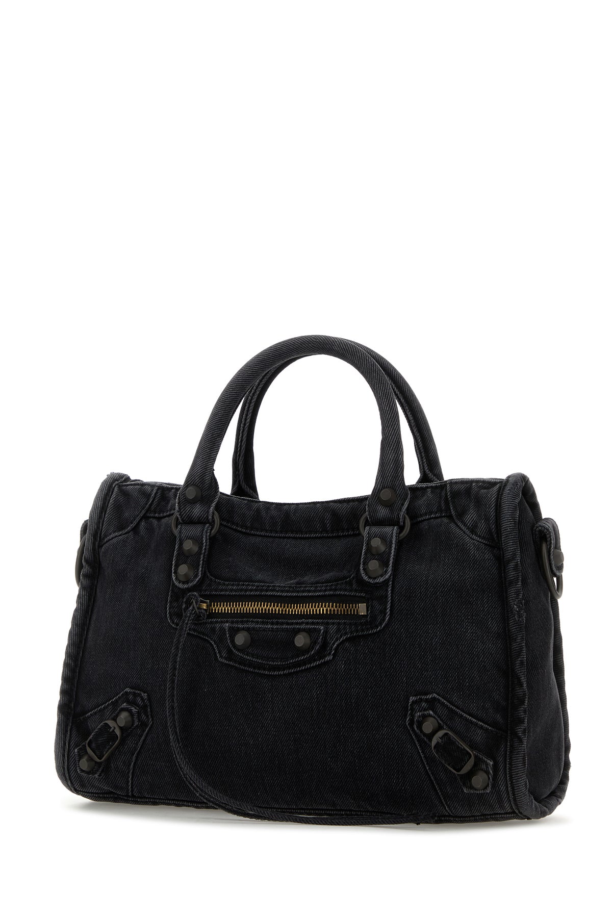 Handbag realized in denim enriched by decorative strap and studs at the front.