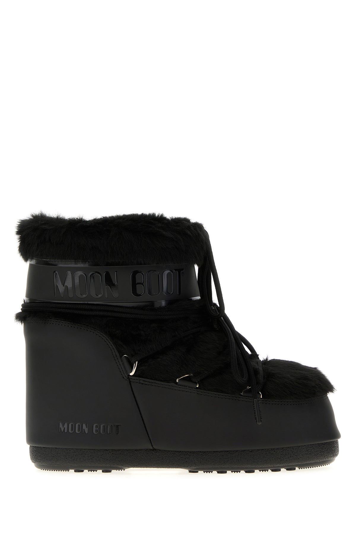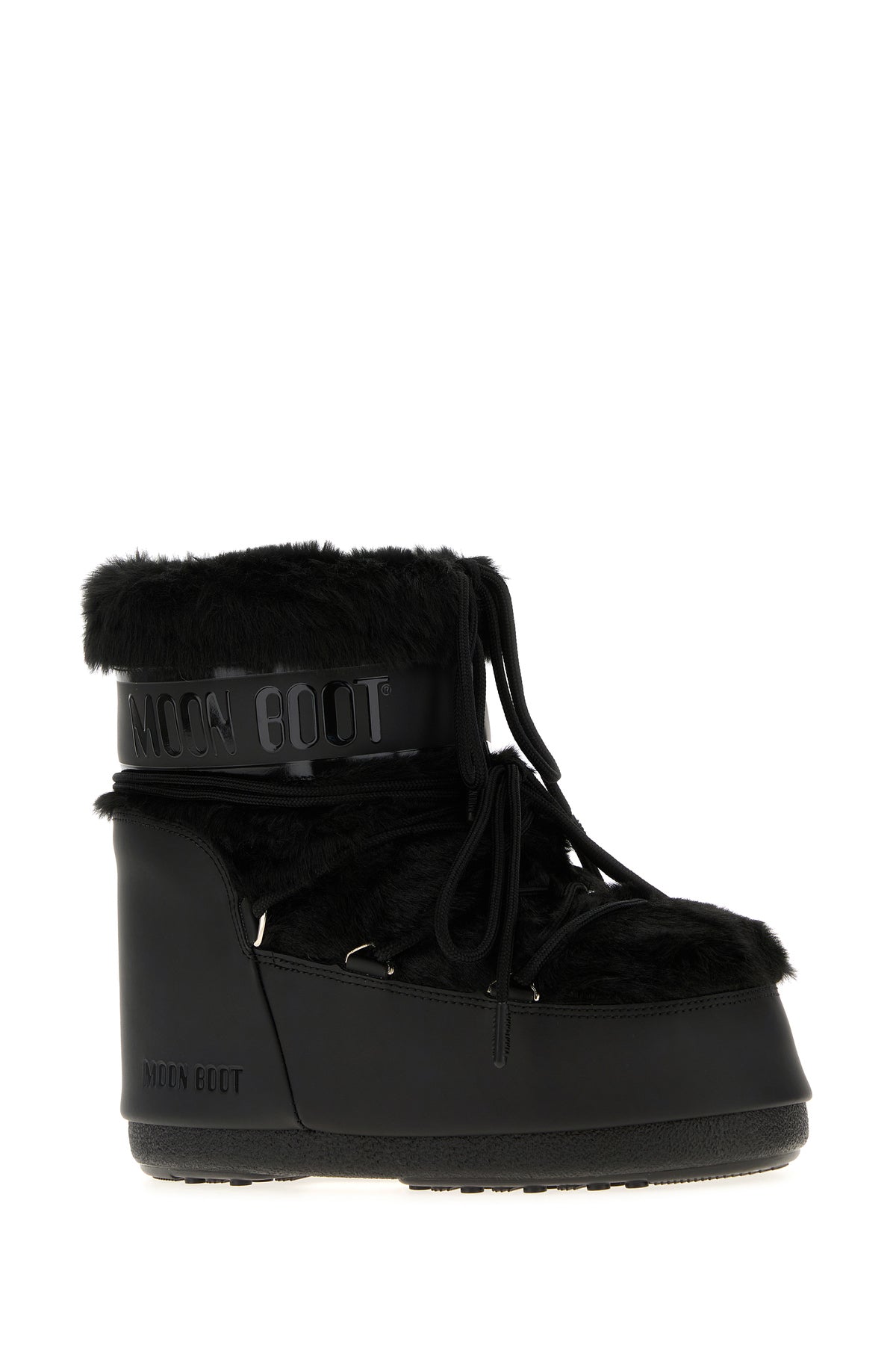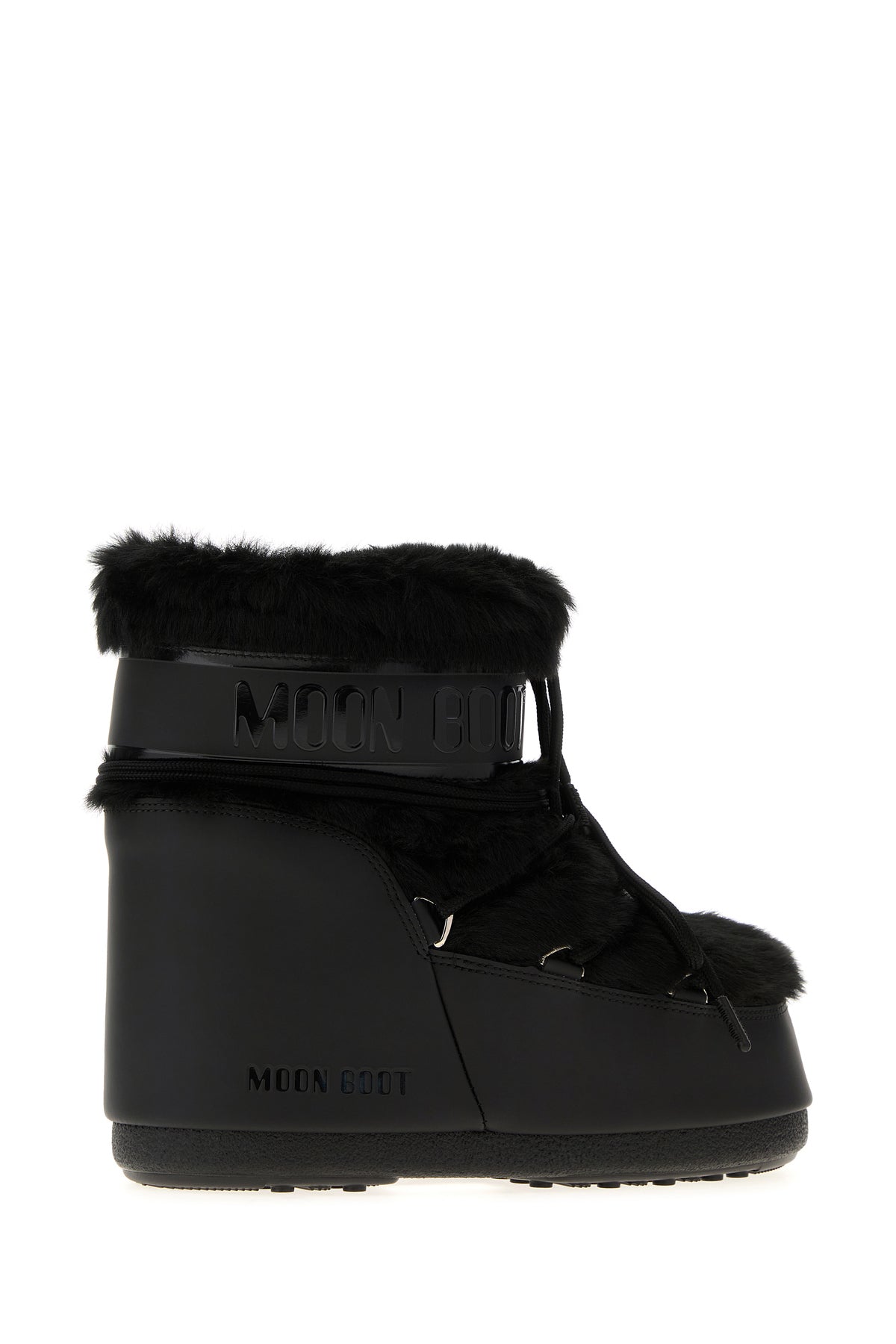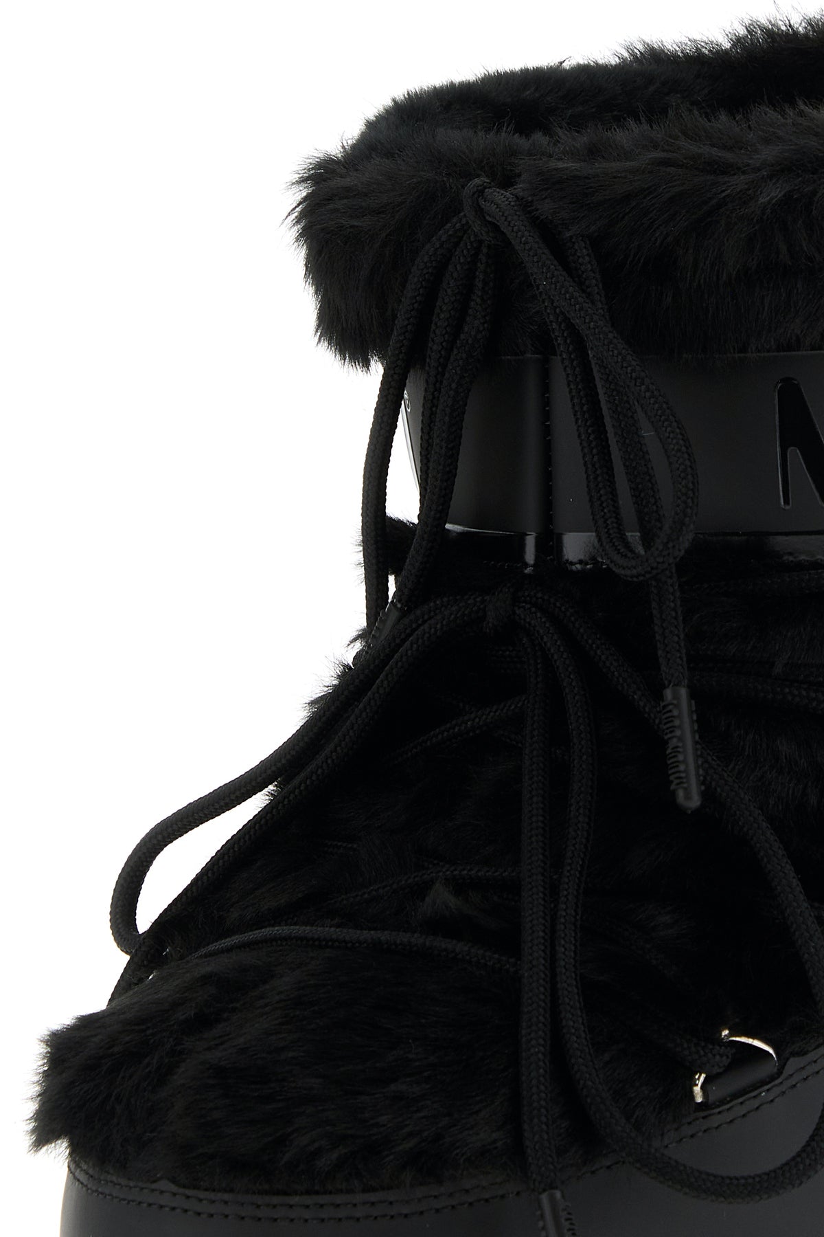 Ankle boots realized in eco fur and synthetic leather characterized by embossed logo and on the sides enriched by logoed bands at the top.