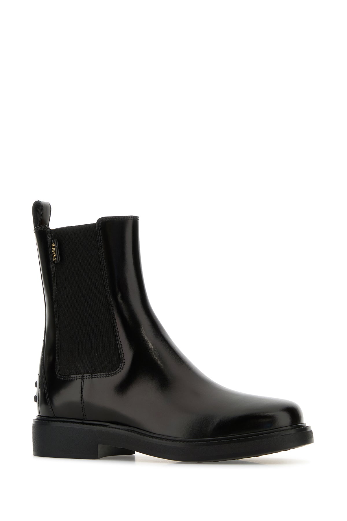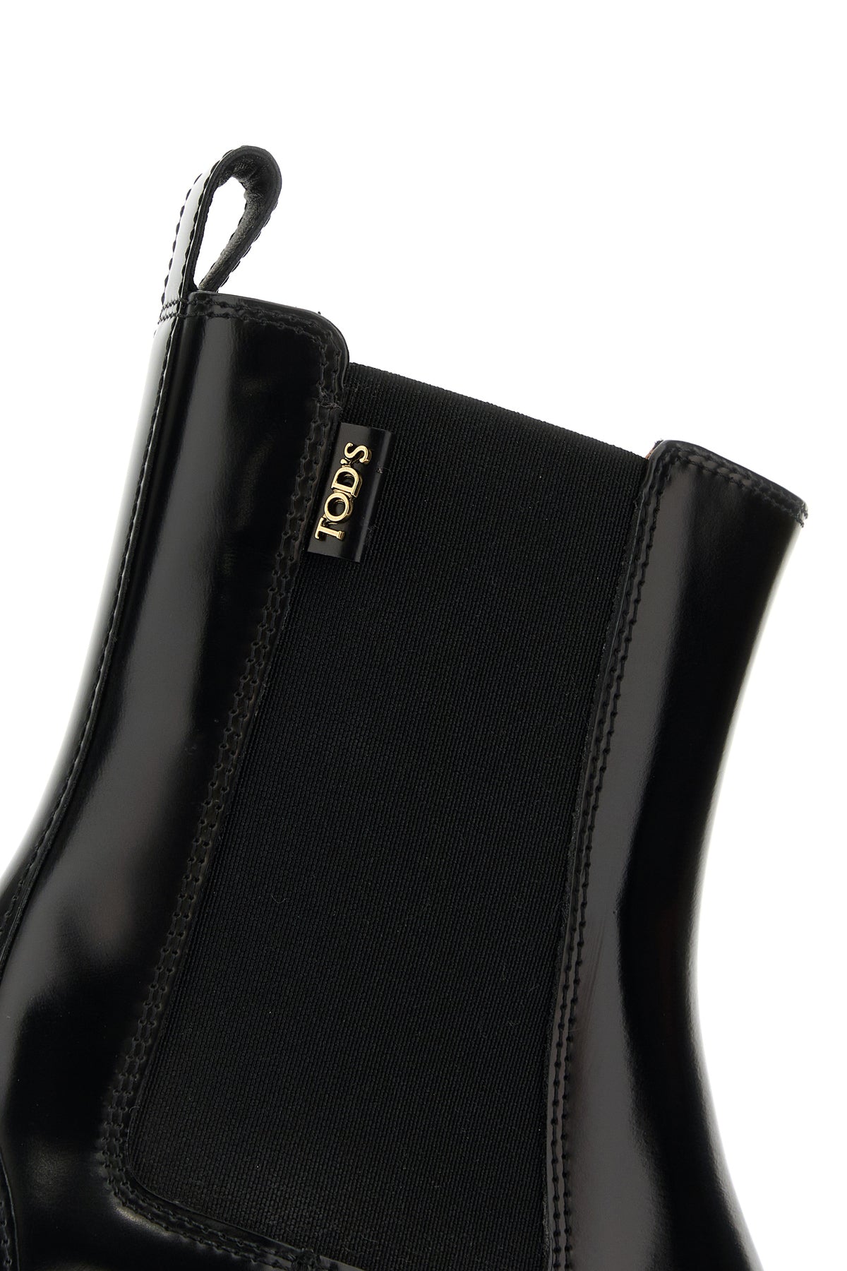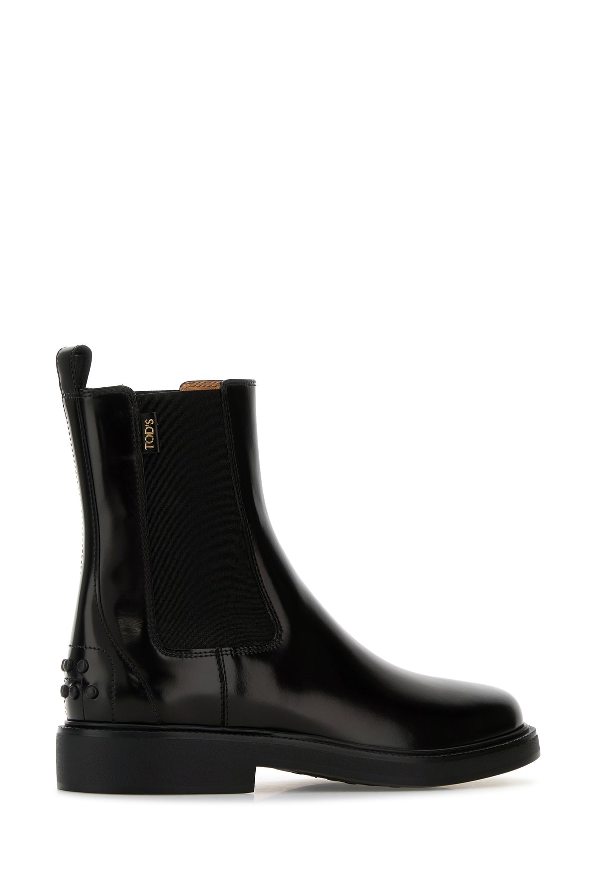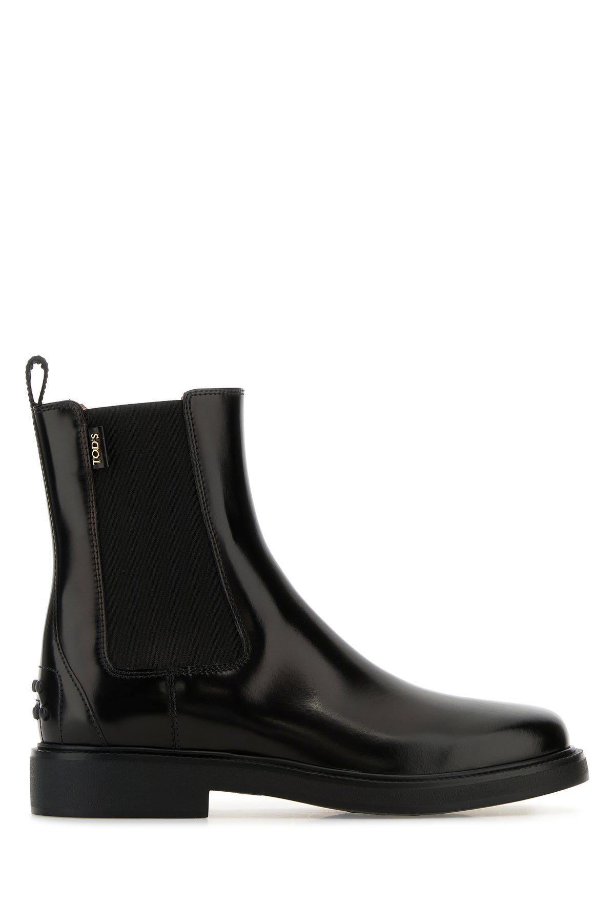 Ankle boots realized in polished finish leather characterized by lateral elastic insert.