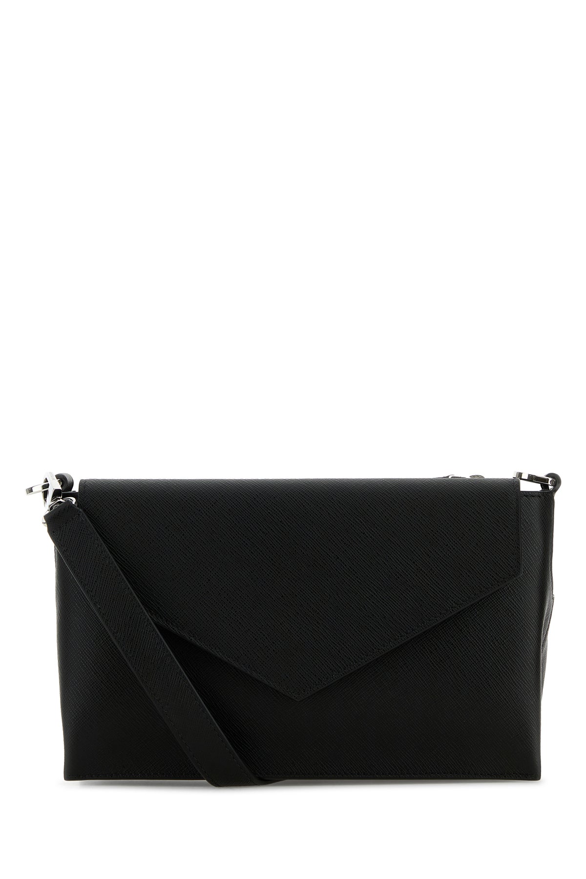 Crossbody bag realized in grained leather enriched by iconic enameled logo at the front.