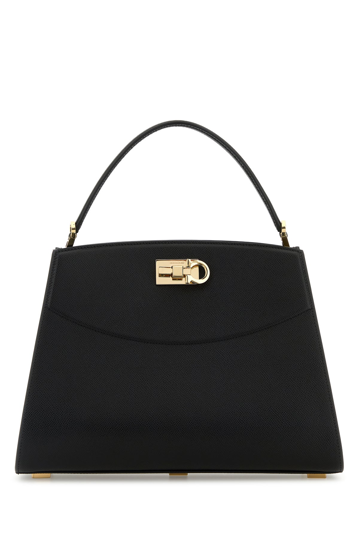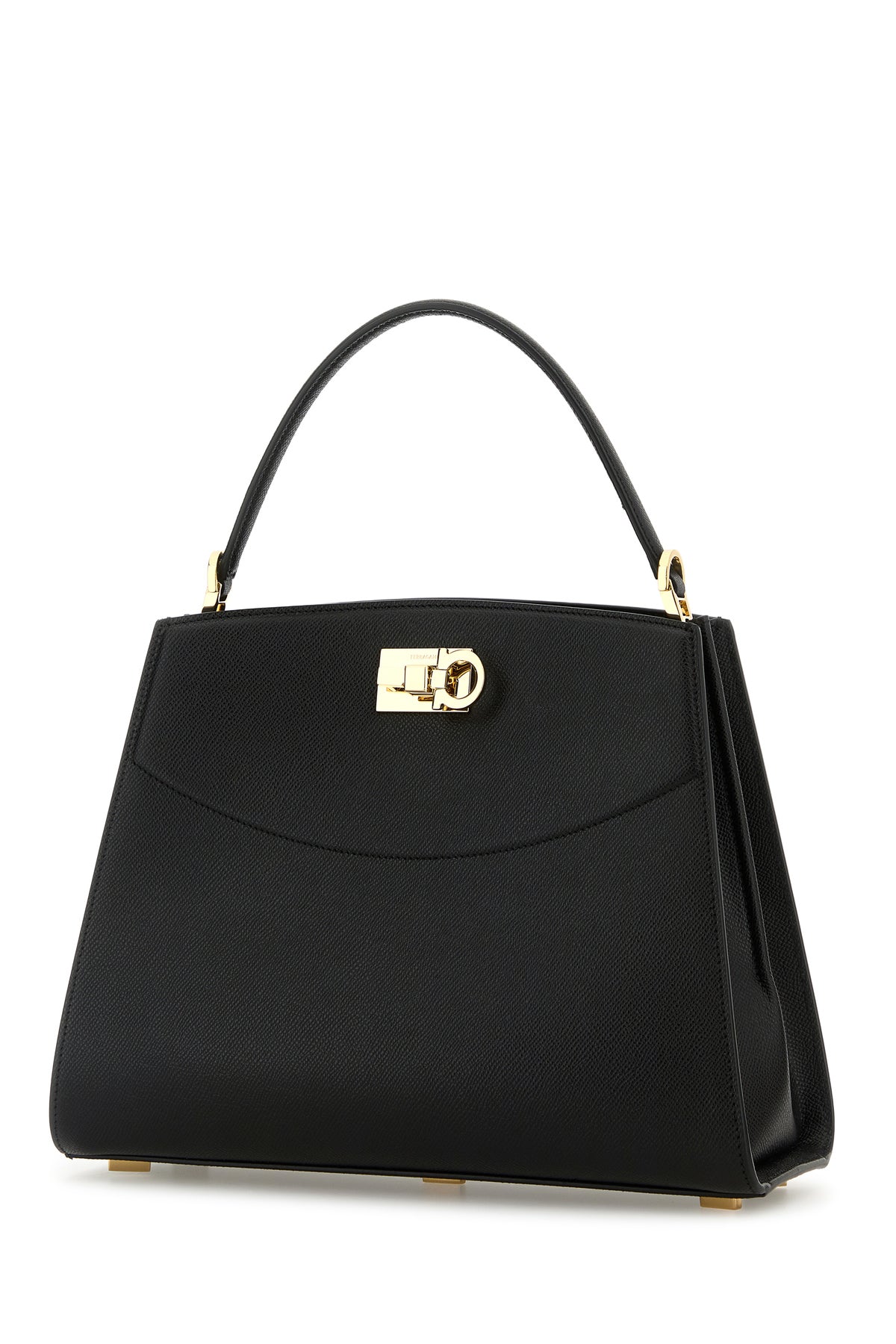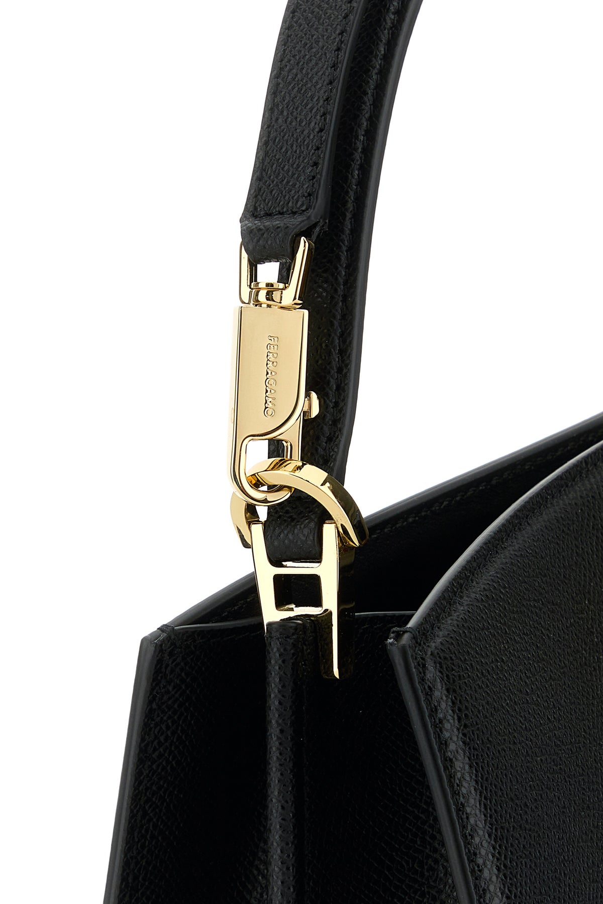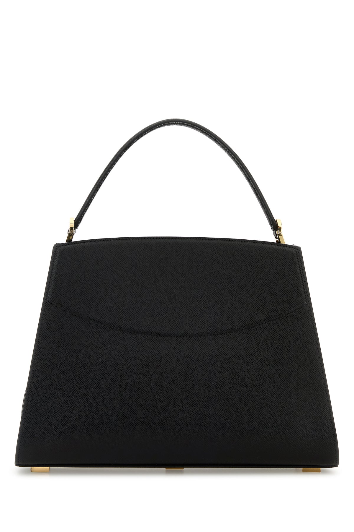 Handbag realized in grained calf leather characterized by embossed logo on the snap-fit closure.
