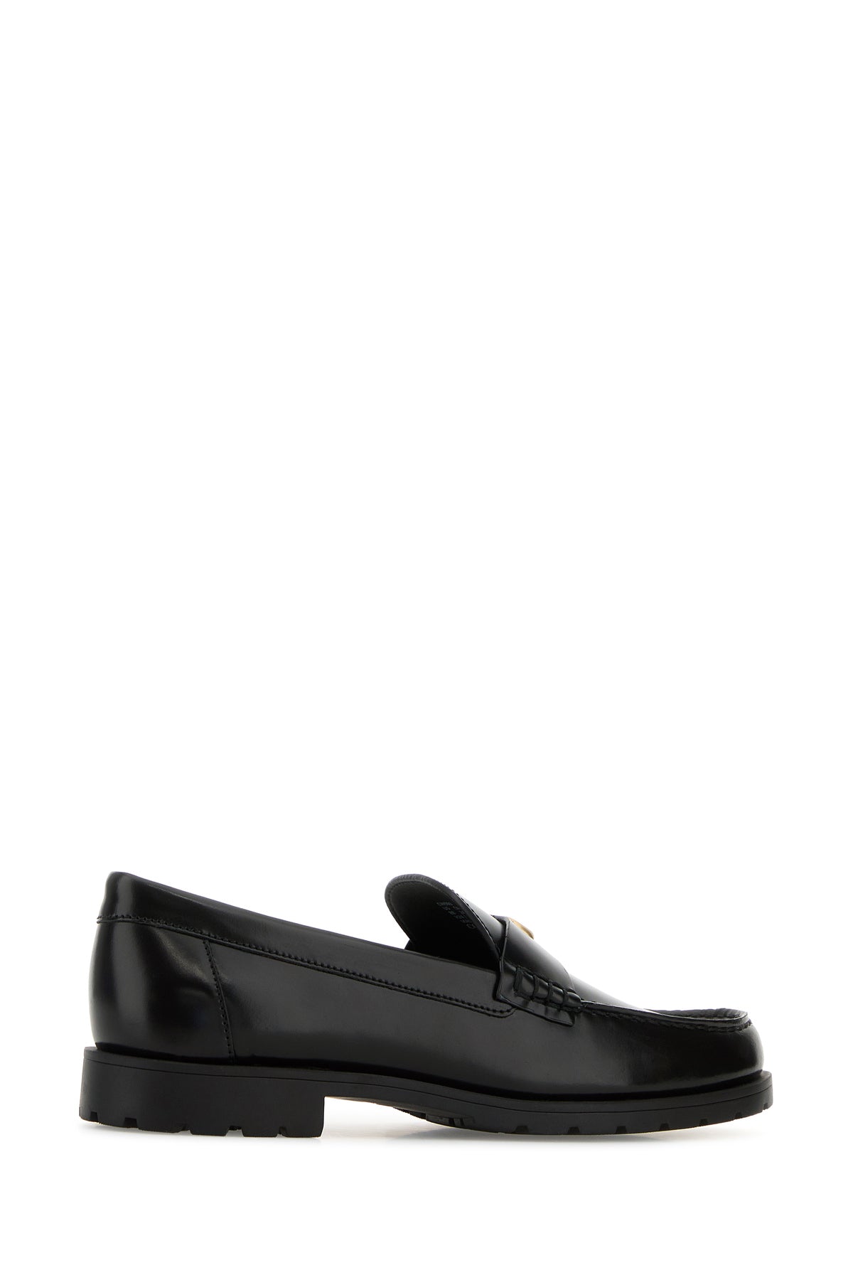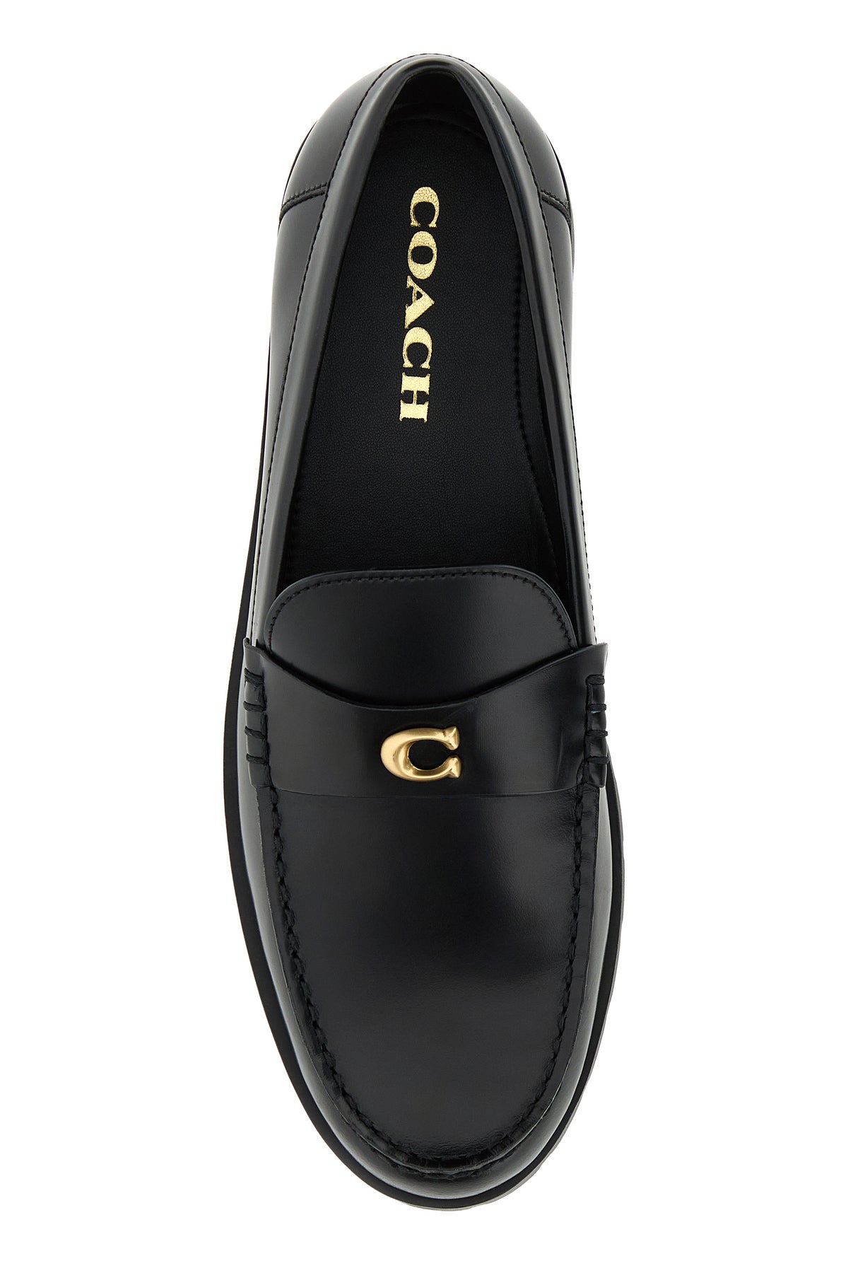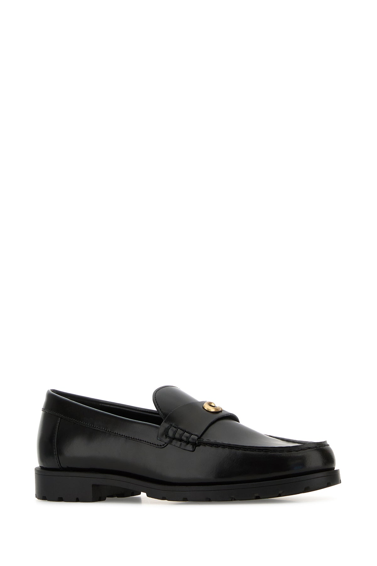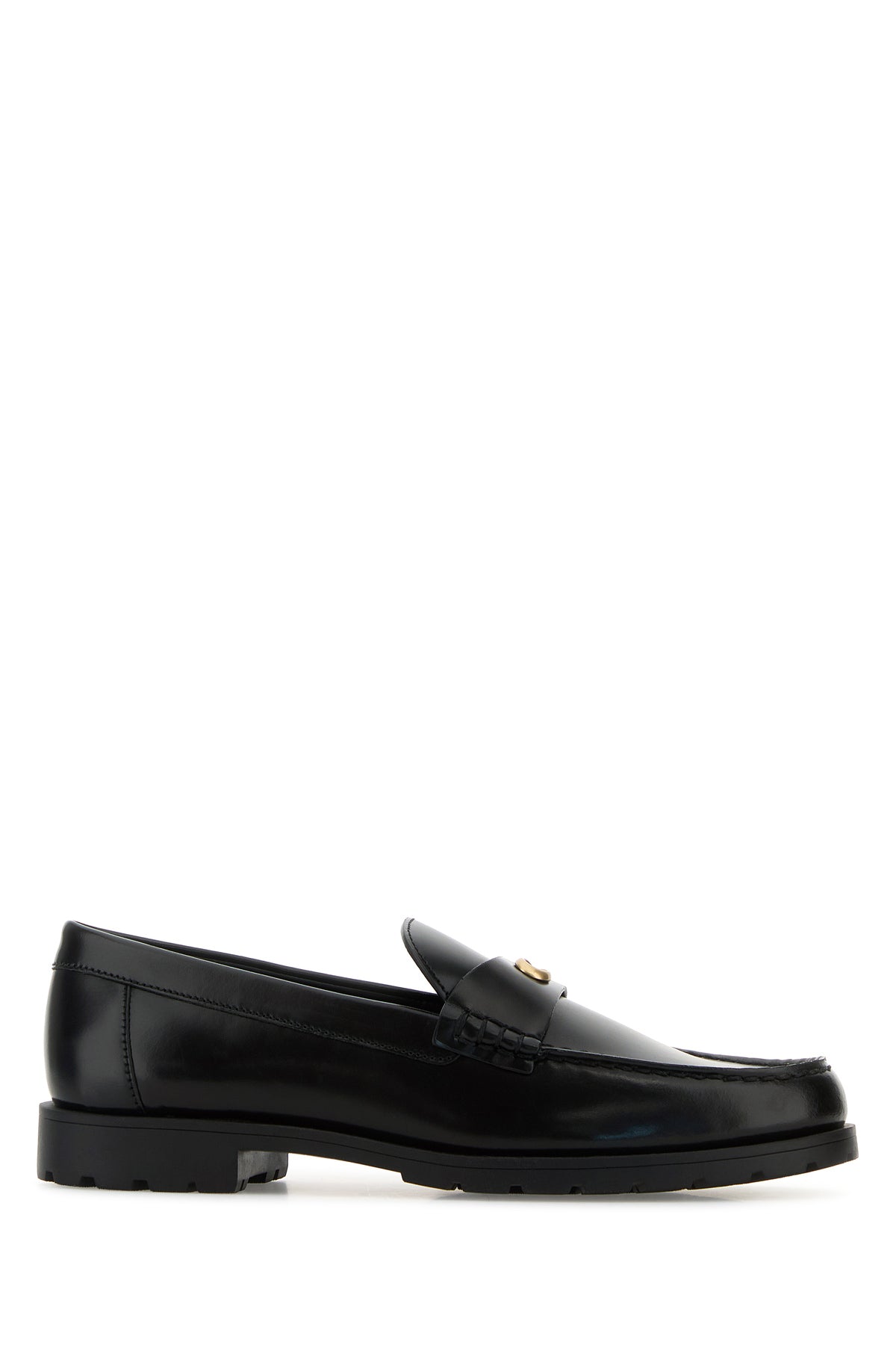 Loafers realized in polished-finish leather enriched by metal C detail on the vamp.