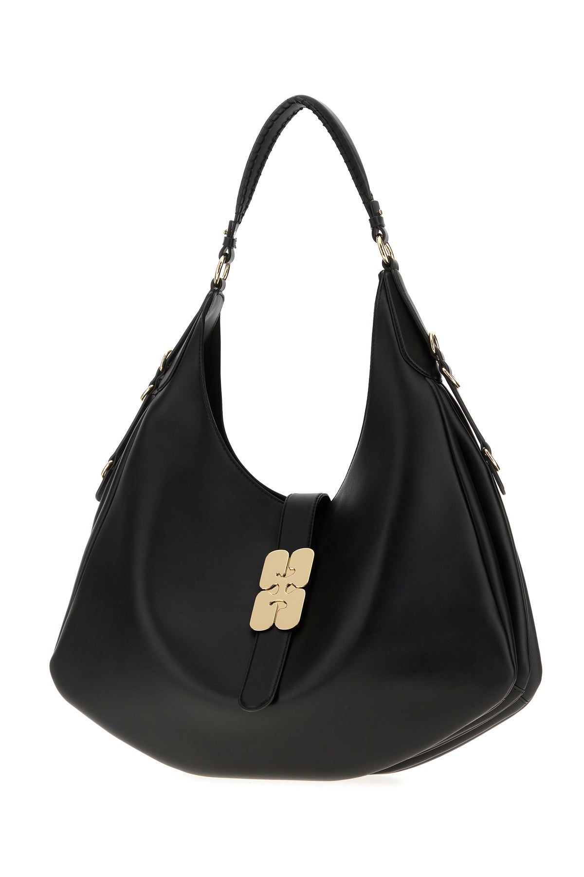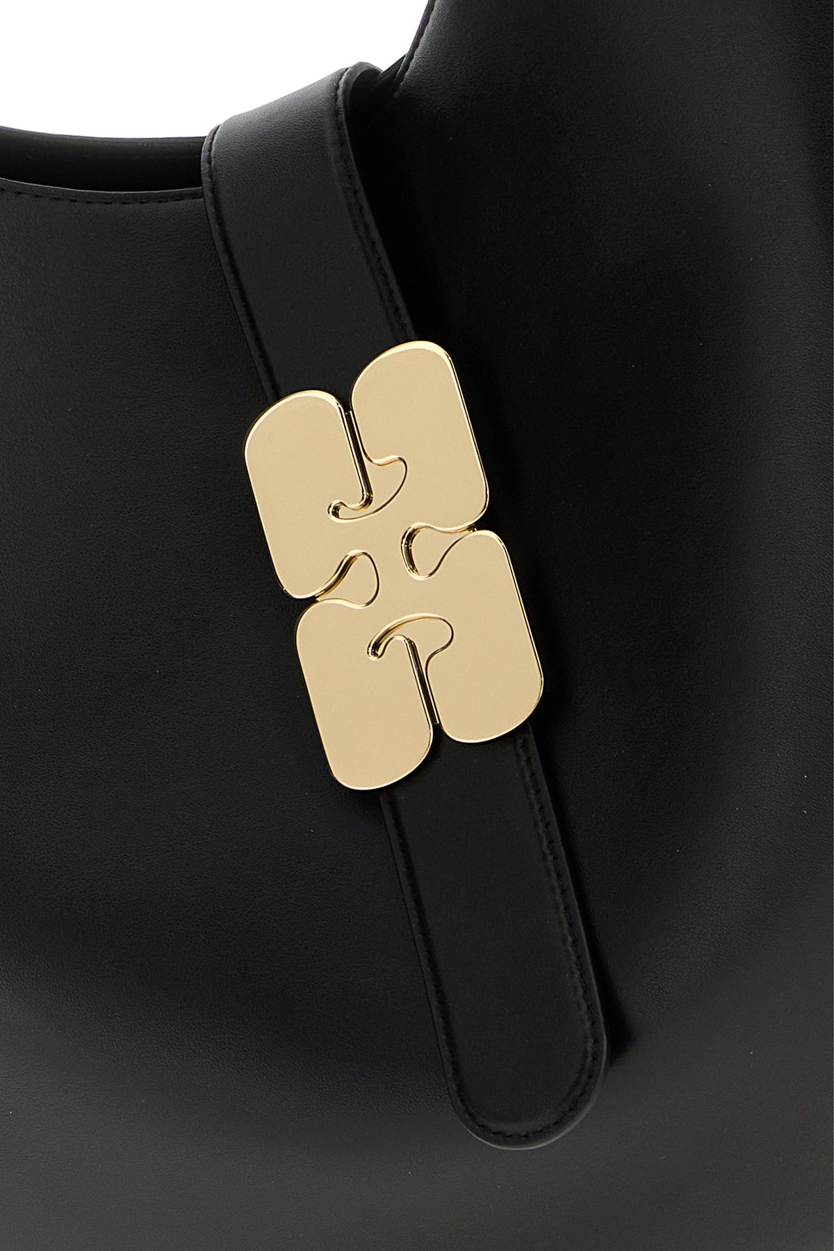 Shoulder bag realized in smooth leather enriched by logoed metal detail at the front.