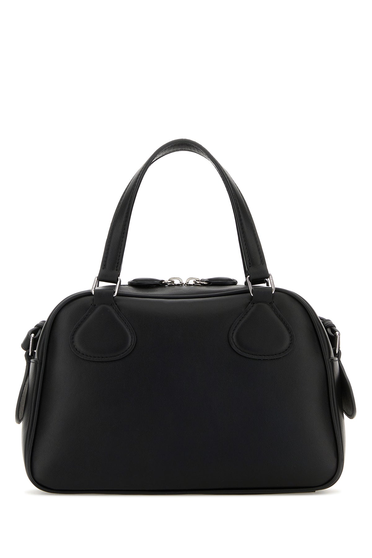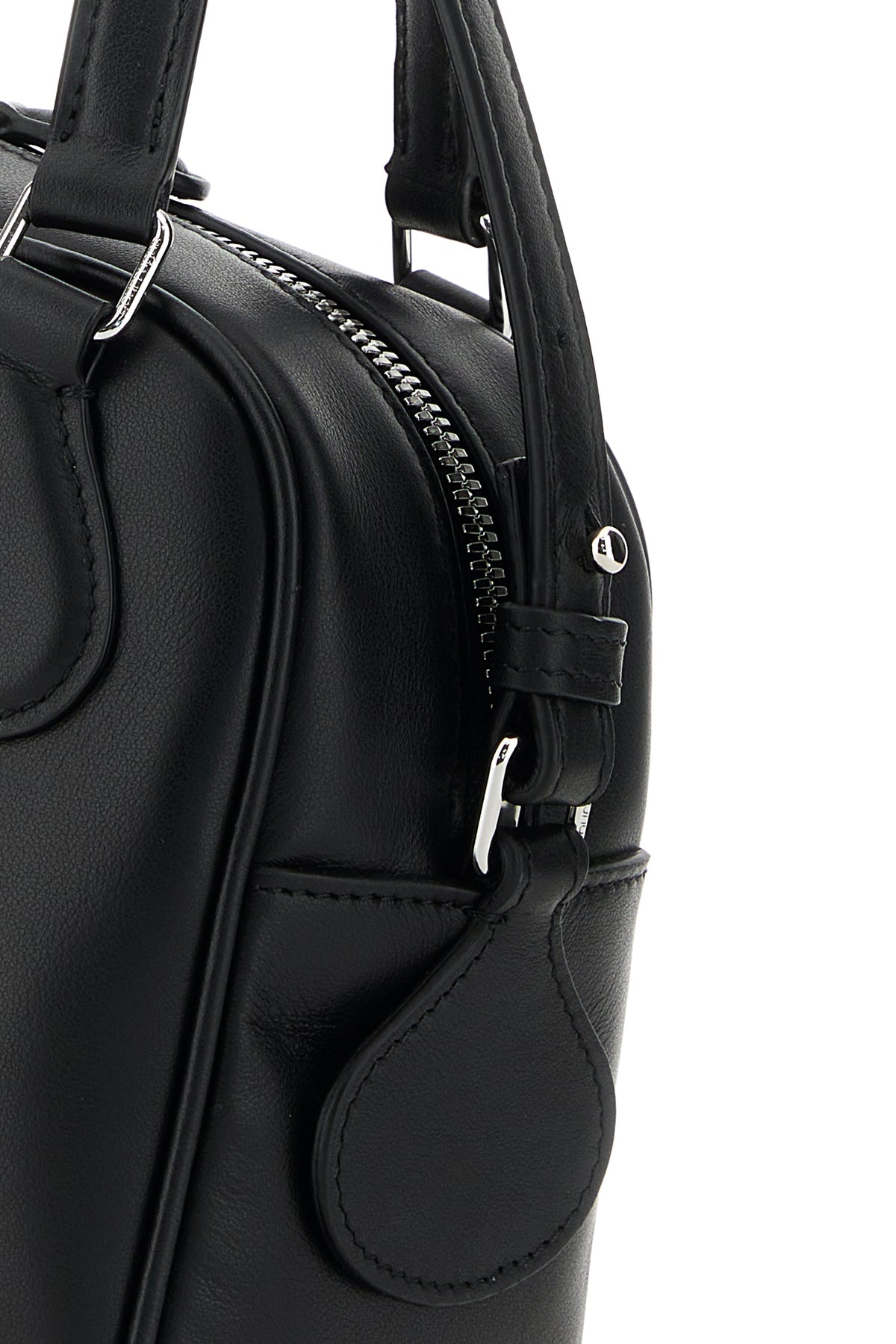 Handbag realized in calf leather enriched by logoed patch at the front.