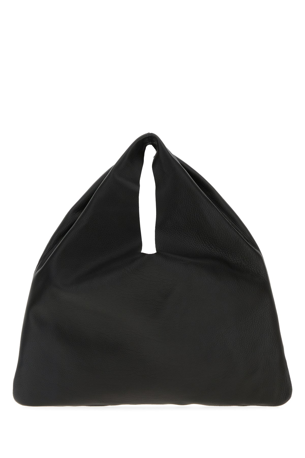 Handbag realized in calf leather characterized by embossed logo on the hemline.