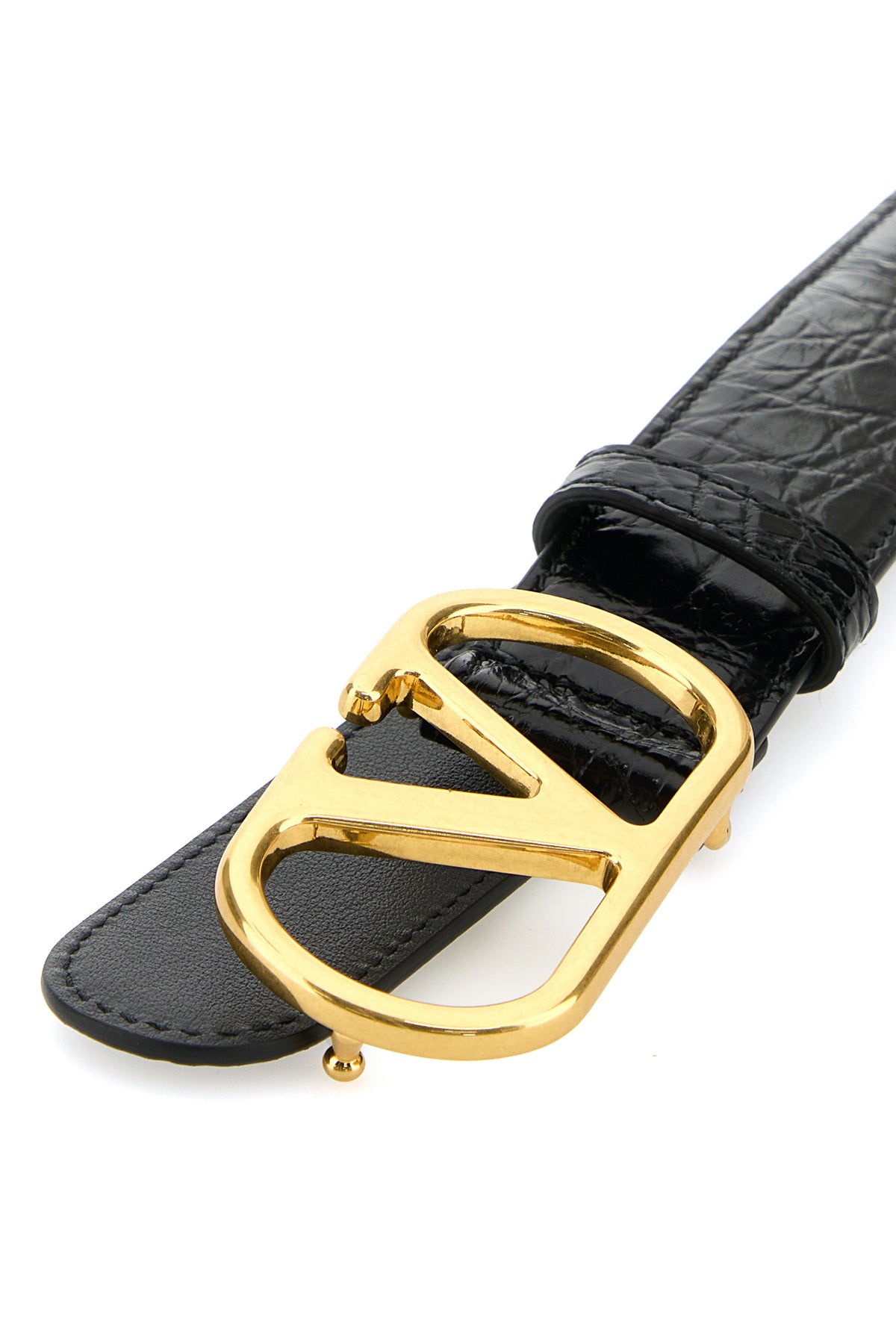 Belt realized in alligator leather enriched by VLogo Signature metal buckle.