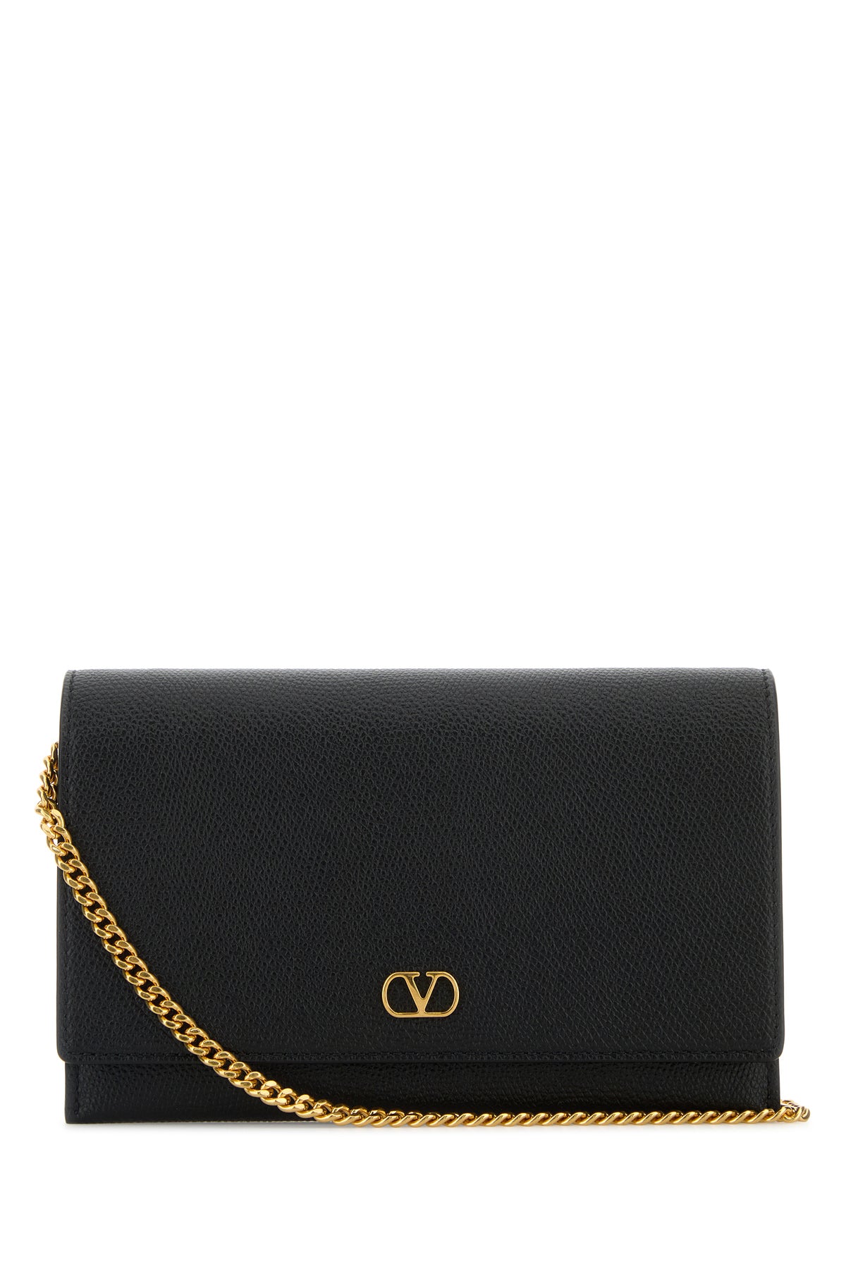 Clutch realized in pebble leather enriched by VLogo Signature metal detail at the front.