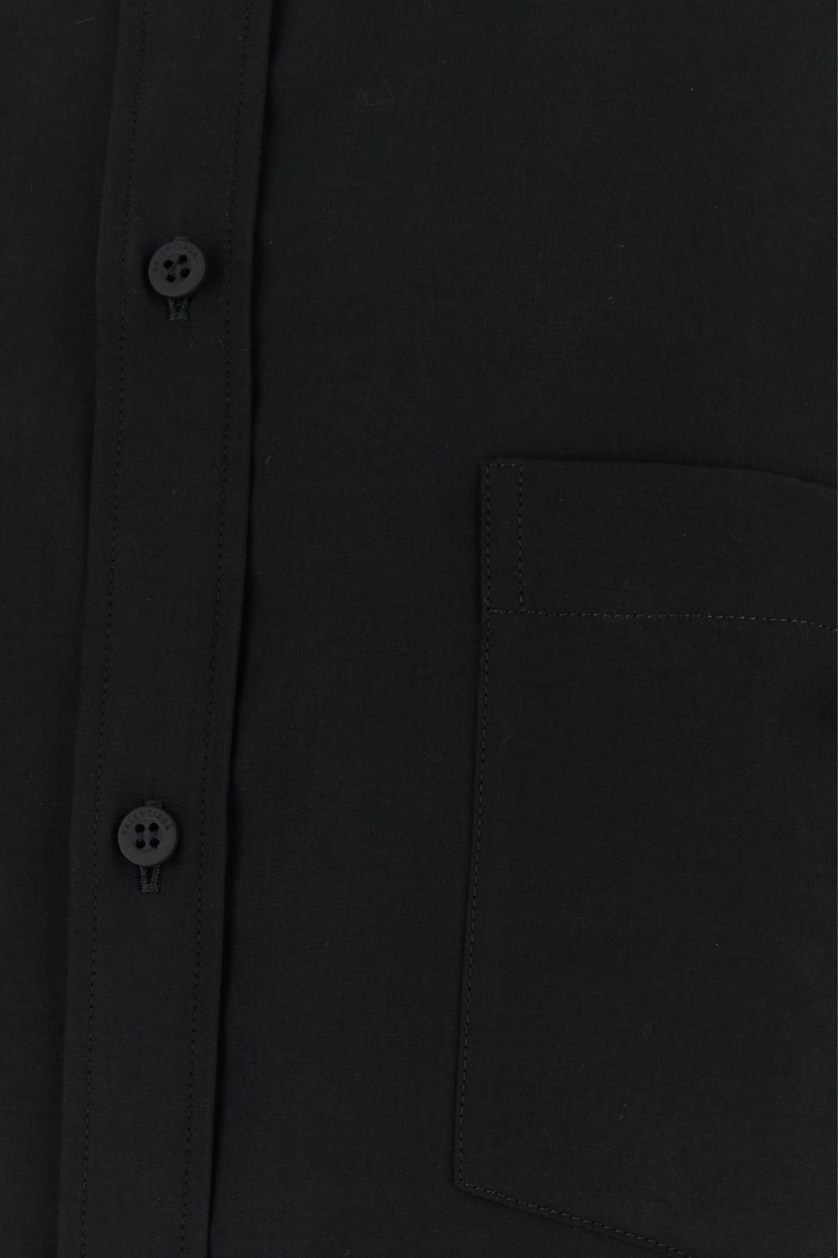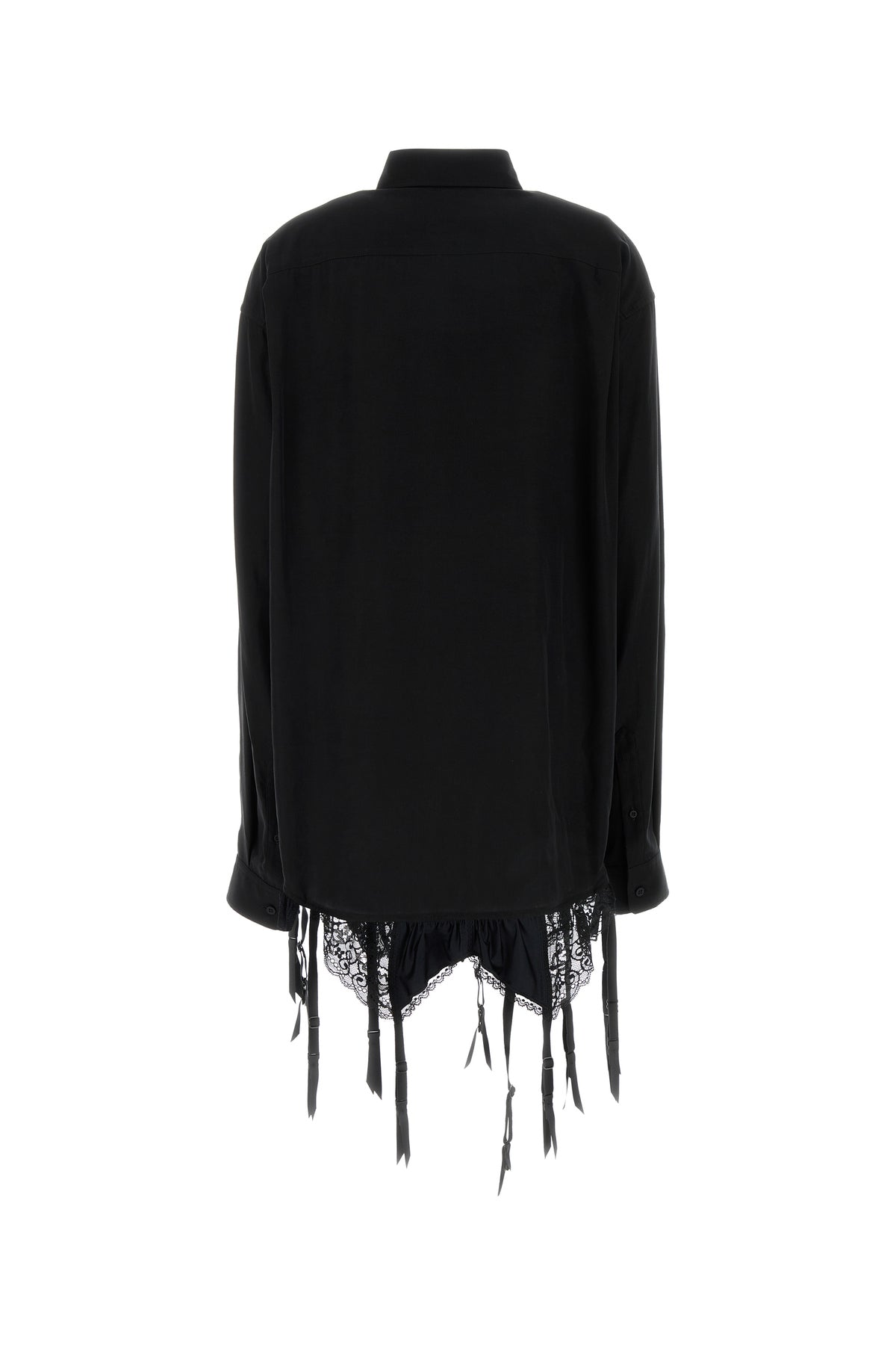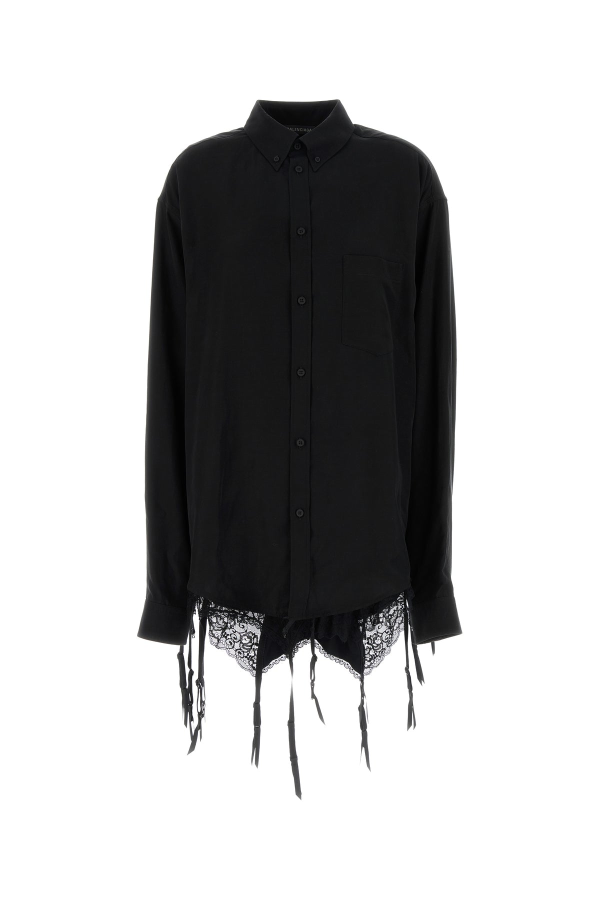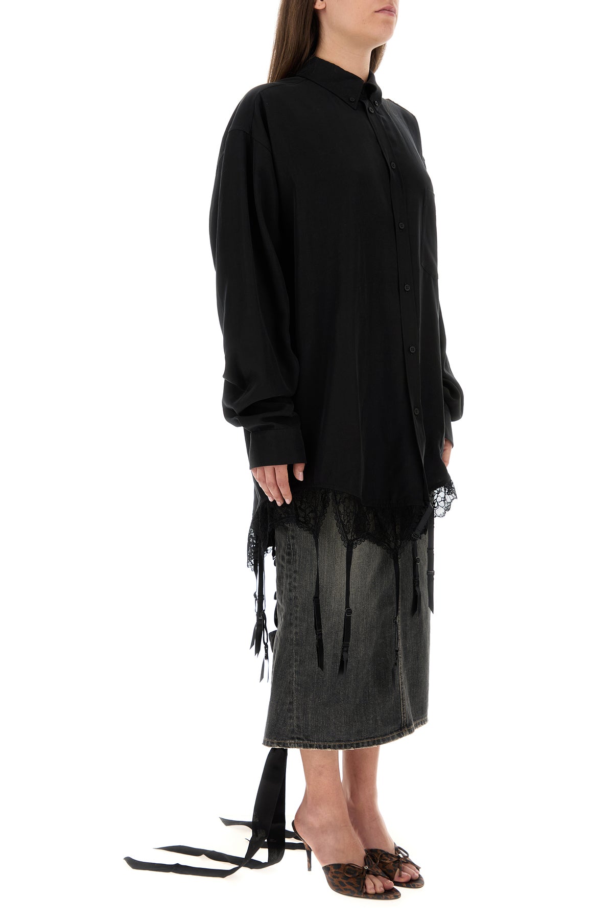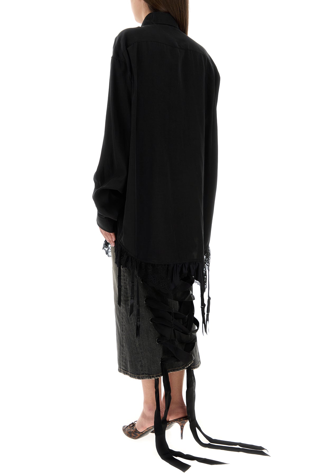 Oversize shirt realized in nylon cell with lace insert on the hemline characterized by short-pointed collar.