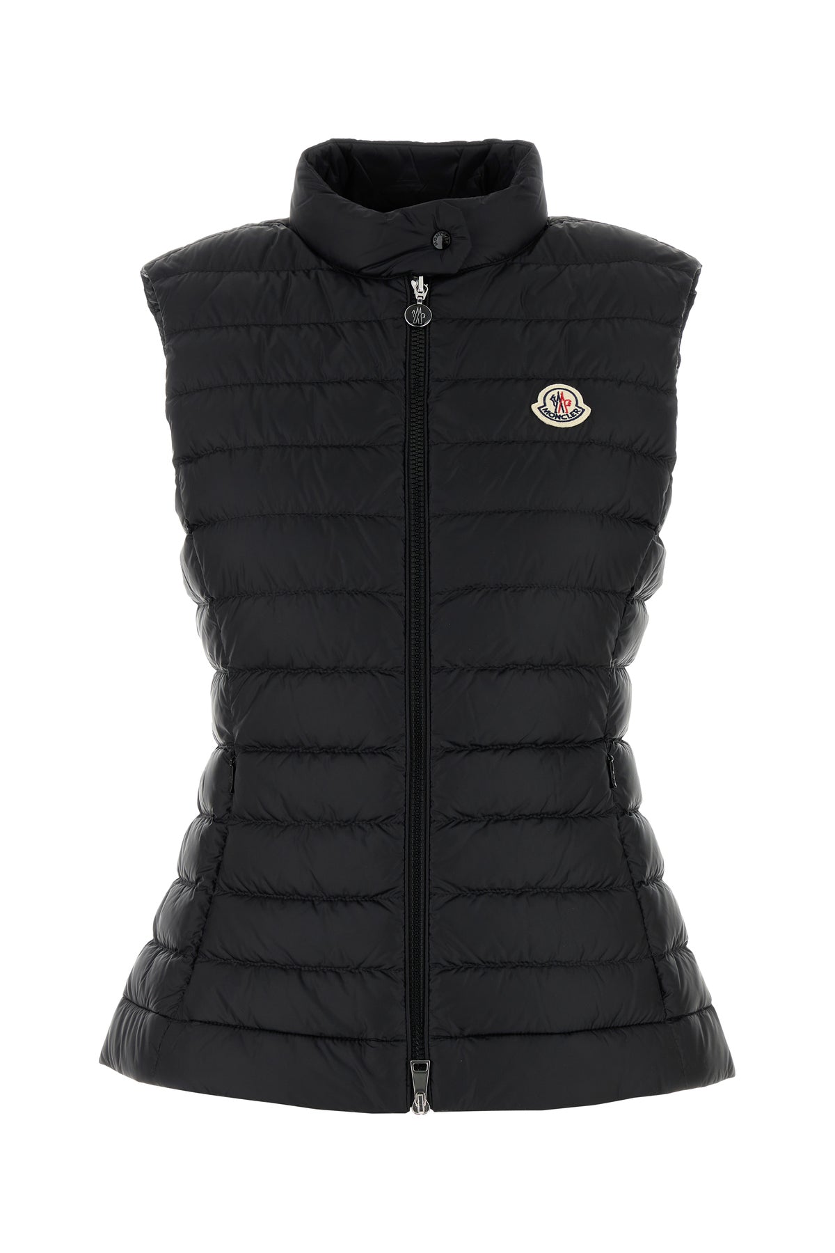 Sleeveless down jacket realized in quilted nylon enriched by contrasting logoed patch on the chest.
