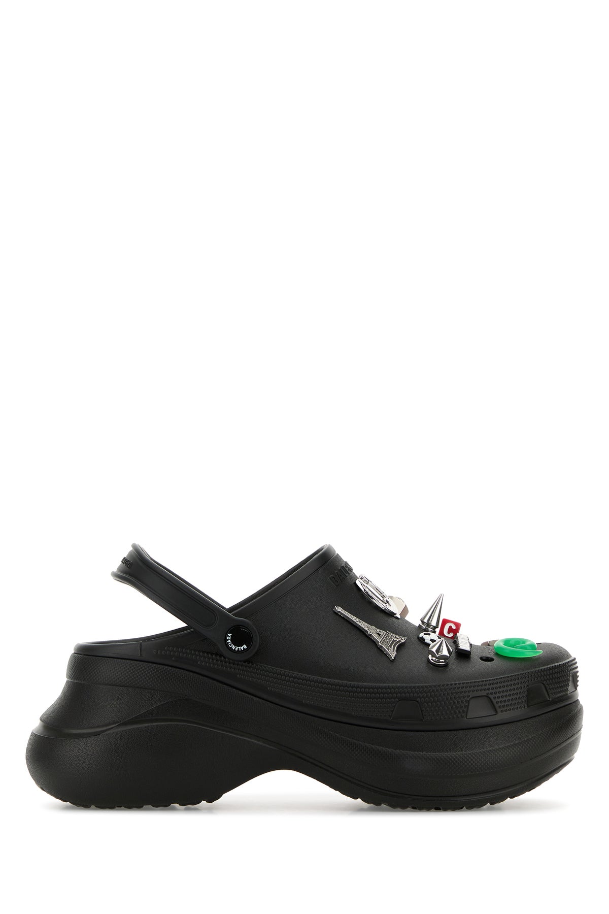 Mules created in collaboration with Crocs™ realized in rubber enriched by peculiar patches on the instep.
