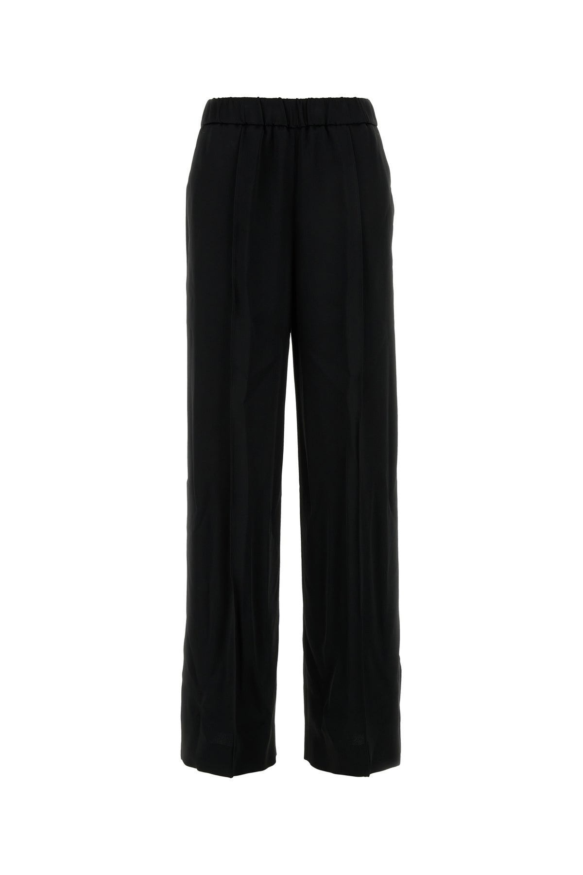 Wide-leg pant realized in satin characterized by central seamed pleats.