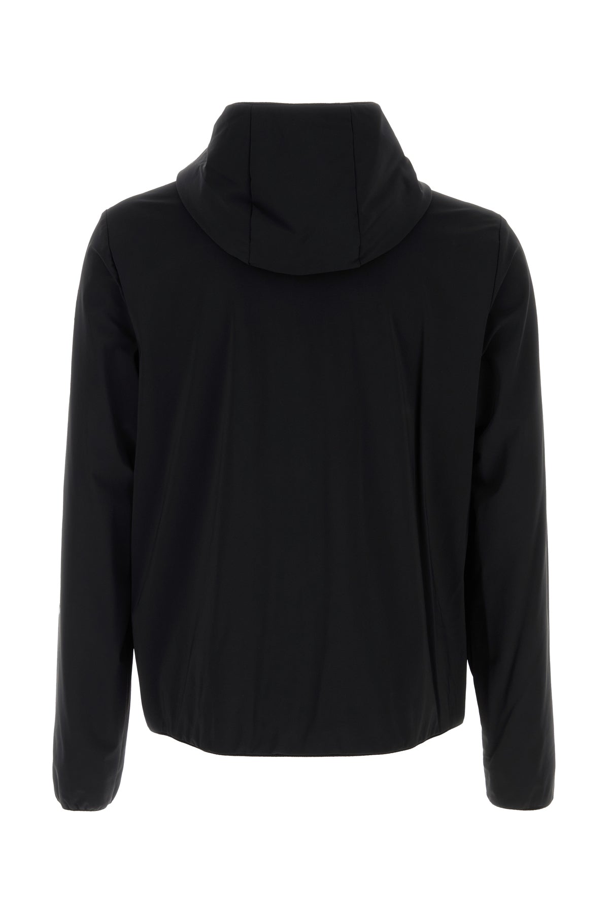 Windbreaker realized in stretch nylon with quilted insert enriched by contrasting logoed patch on the chest.