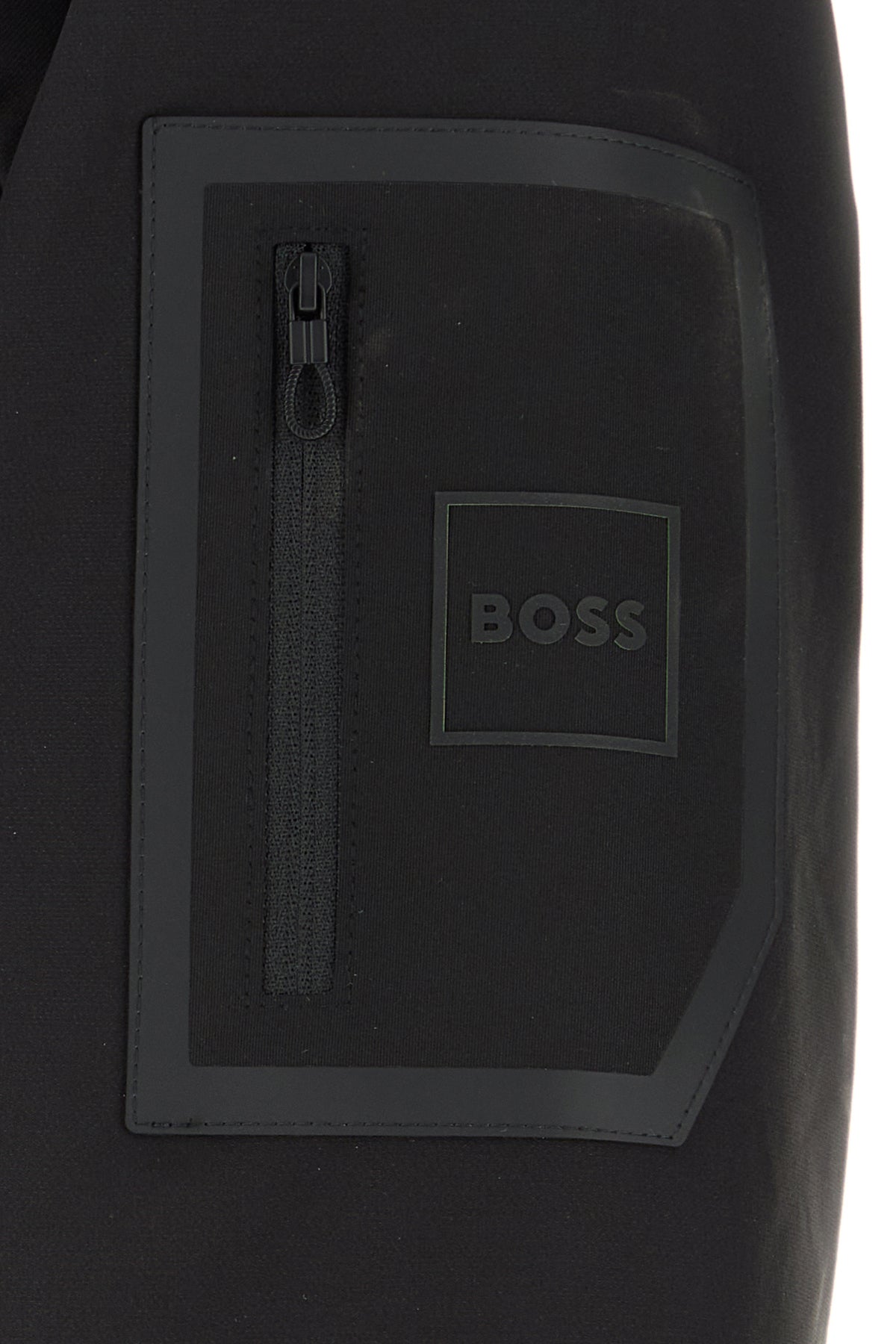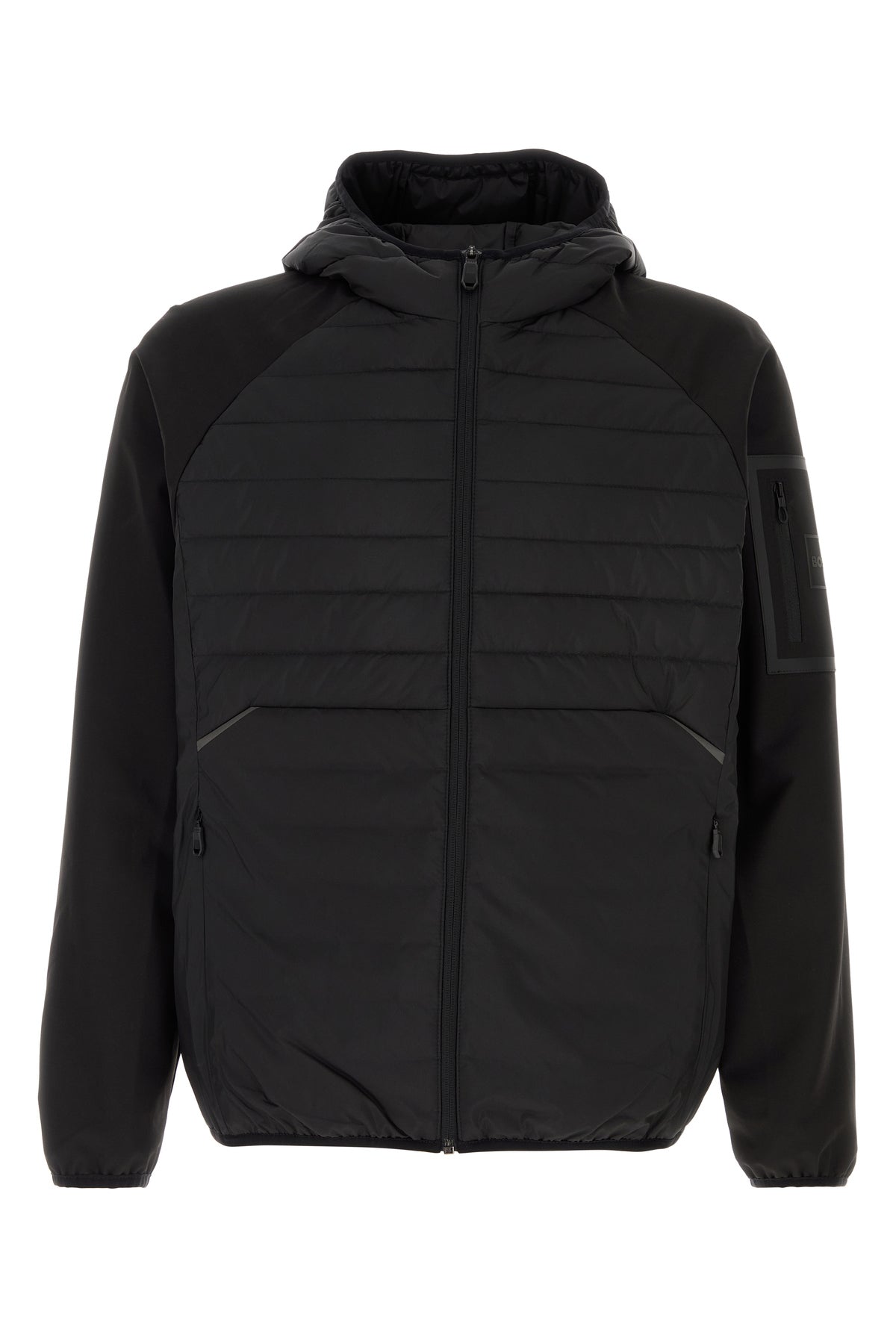 Jacket realized in stretch polyester with quilted insert at the front characterized by logoed print on the sleeve.