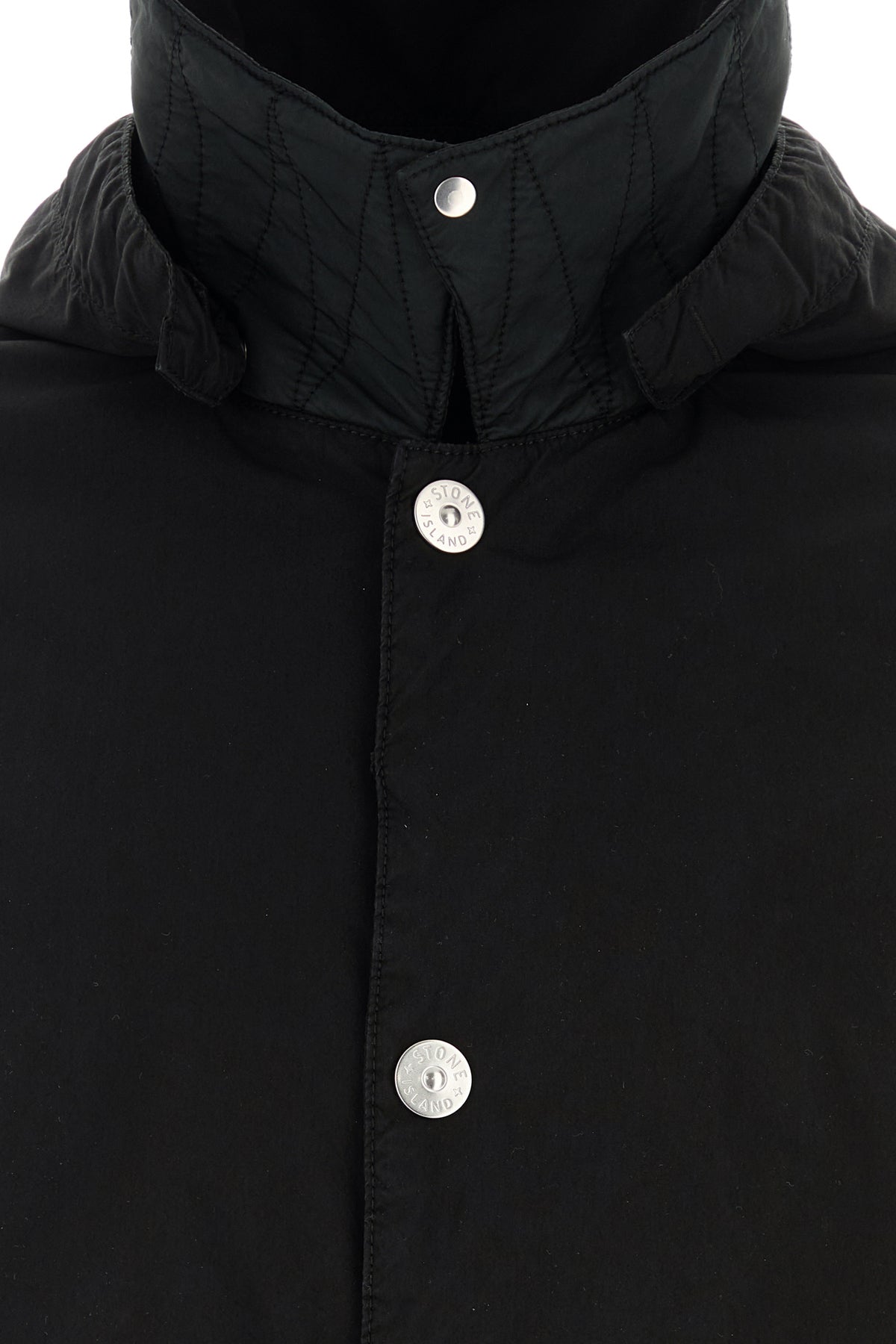Jacket realized in stretch polyester enriched by detachable logoed label on the sleeve.