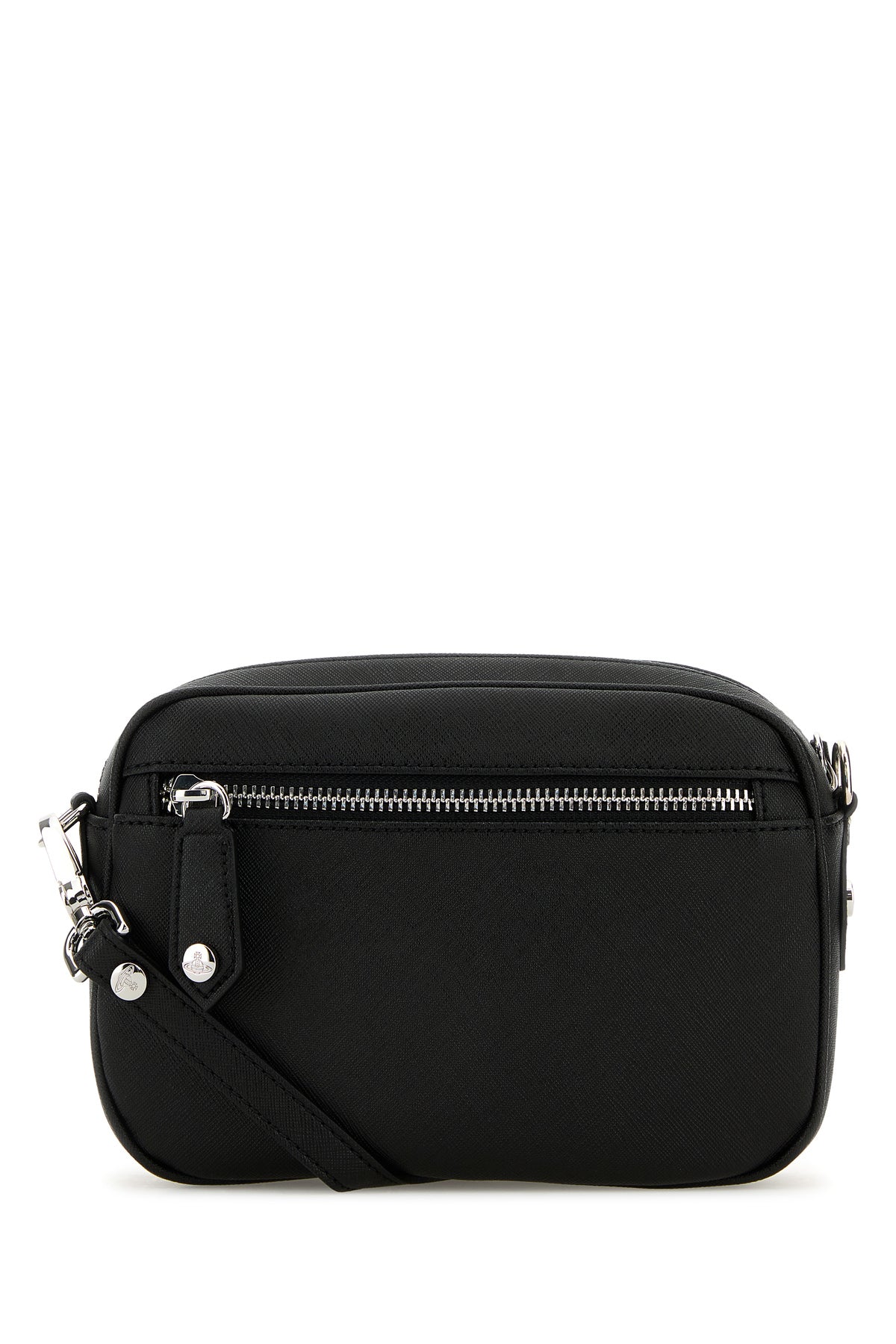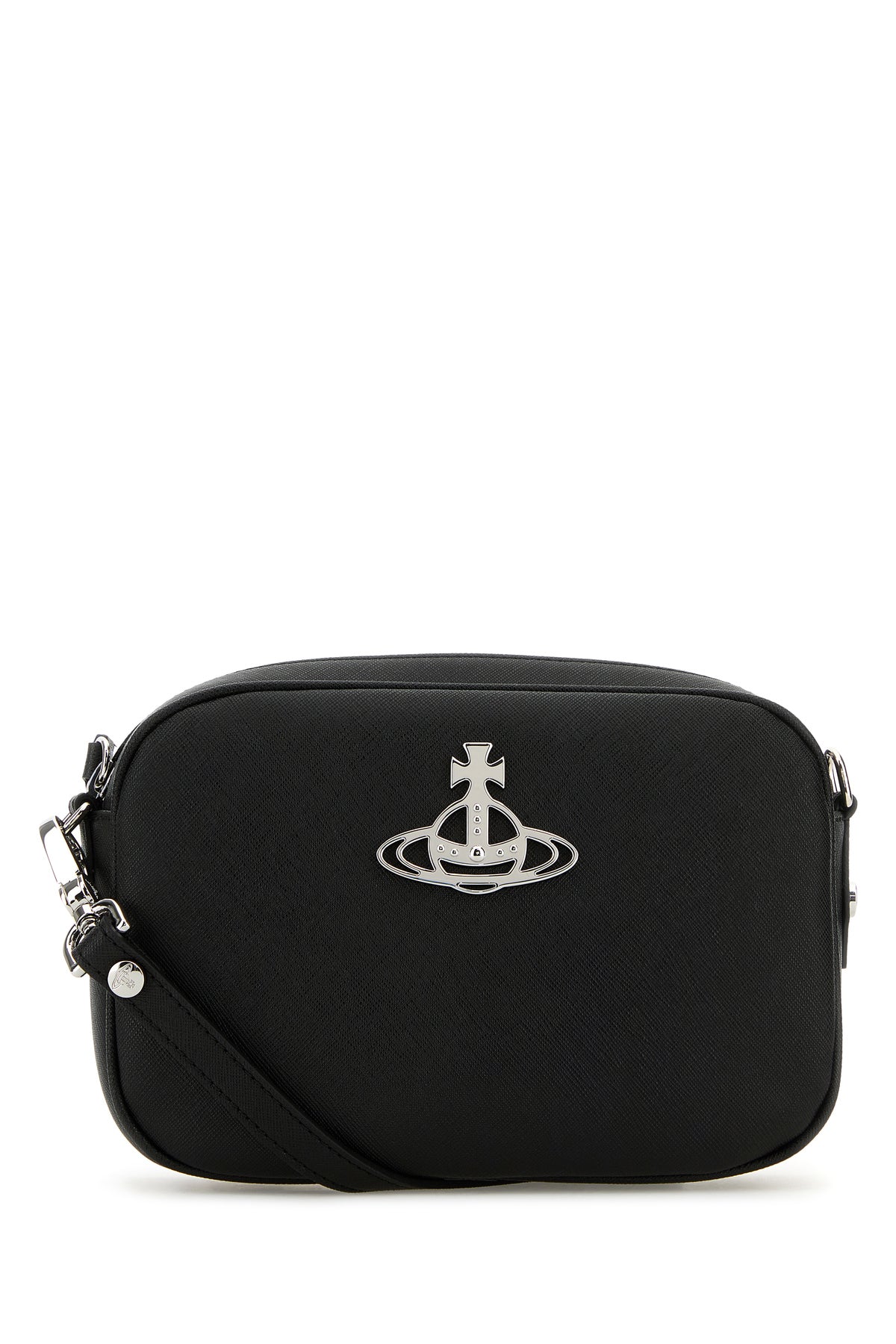 Crossbody bag realized in grained synthetic leather enriched by metal Orb detail at the front.